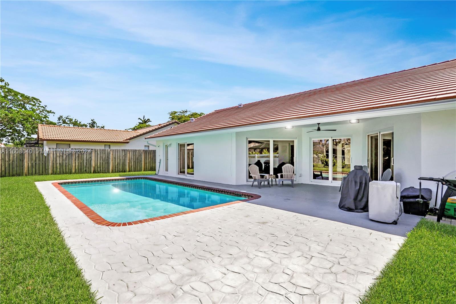 If your heart longs for a gorgeously remodeled move-in ready home, your search ends here. The soaring vaulted ceiling delights in the entryway bringing in natural light in abundance while the Brand New Roof (2023), upgraded electric panel (2023), new water heater (2024) and impact windows & doors (2019) provide energy efficiency. Designer touches throughout create an enchanting ambiance, starting in the generously sized upgraded kitchen featuring a new induction range (2024), kitchen island & skylight to the tastefully remodeled baths. As you step outside, to your fully fenced sanctuary the true magic of this property unfolds and provides the serenity and space you've always envisioned while the pool w/new salt generator (2023) invites you to unwind.