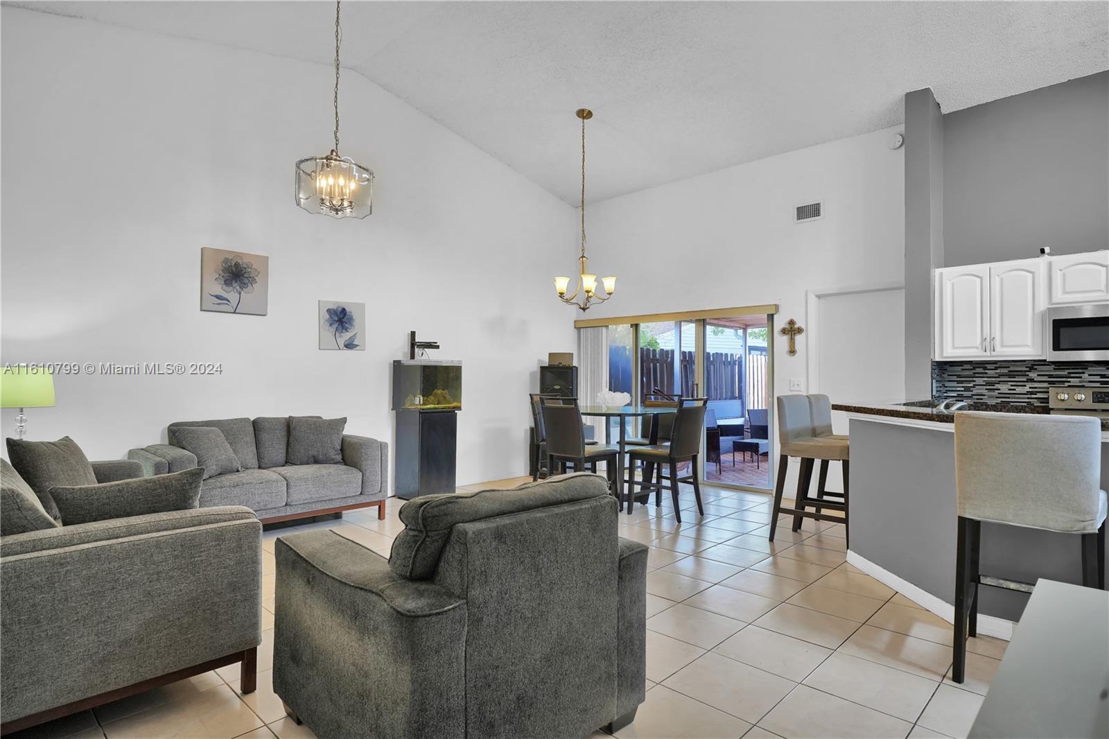 Check out this fantastic opportunity to own a spacious 4-bedroom, 2-bathroom single-family home in the sought-after Hampton Lakes neighborhood! This home features a brand new roof (Nov 2023), recently remodeled guest bathroom (May 2024), and an updated kitchen boasting white cabinets, granite countertops, and stainless steel appliances. You'll love the designer glass impact front door, tile floors throughout, and a practical split-bedroom floor plan. The large master suite includes a walk-in closet and an updated master bathroom. Additional highlights include a new water heater, accordion shutters, a roofed screened-in patio, and a fenced yard. Hampton Lakes offers a prime location near shopping centers, restaurants, Markham Park, and major highways.