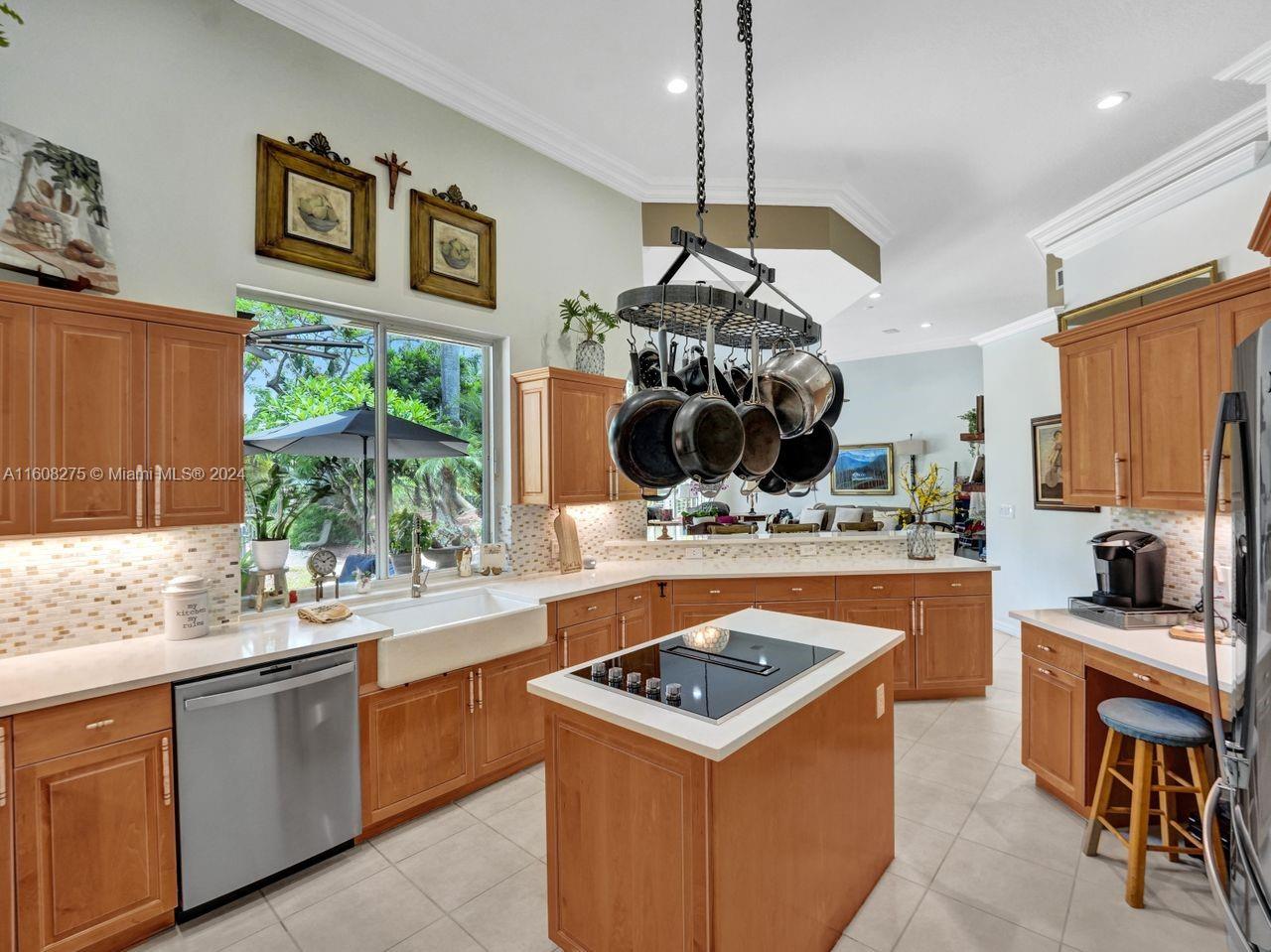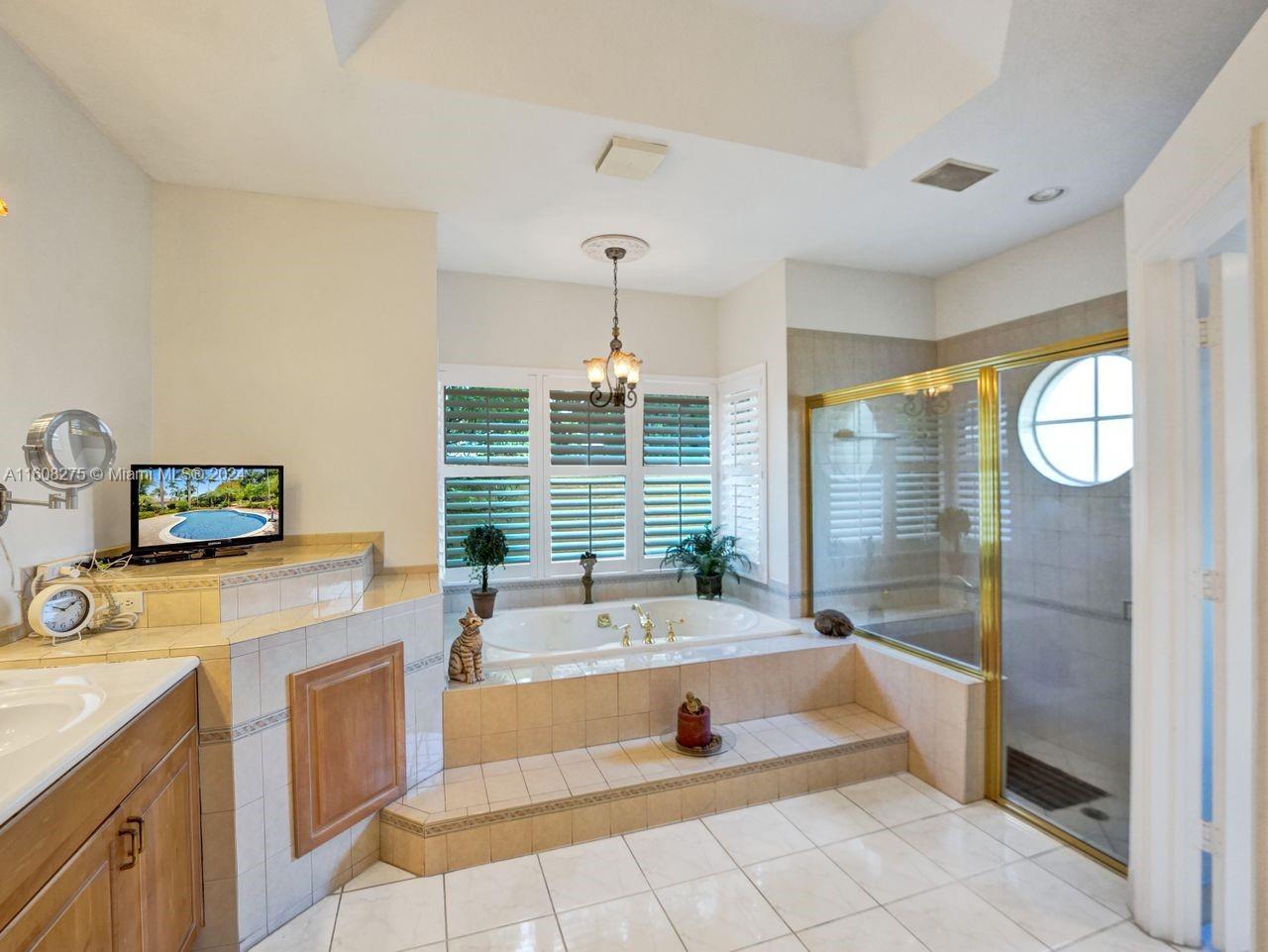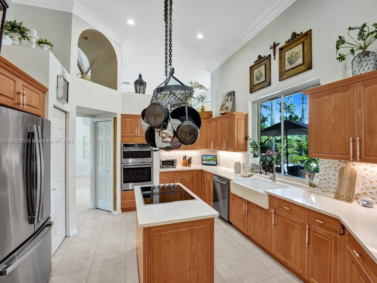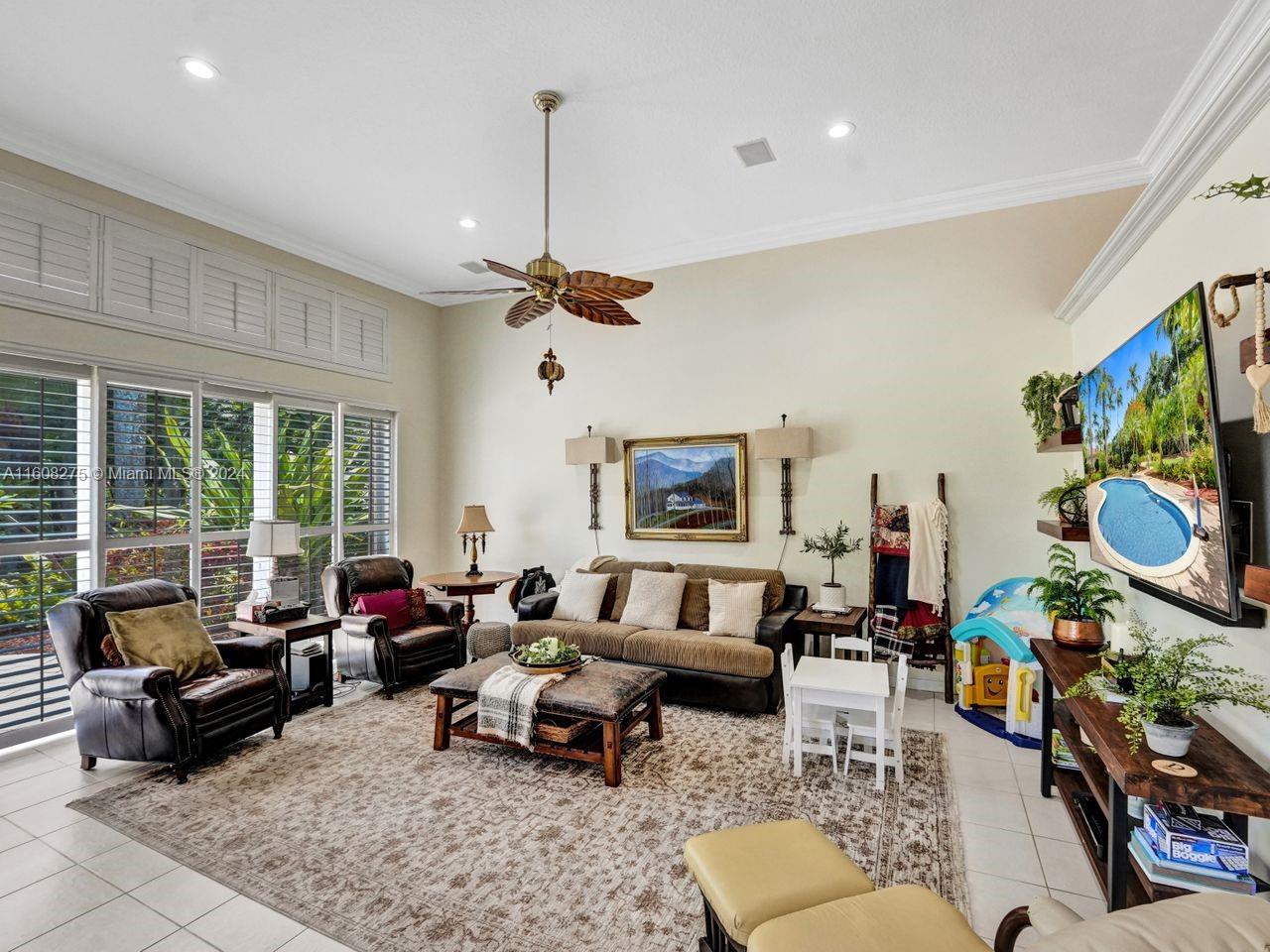 Private oasis in Davie's exclusive gated community of Westridge. Stunning ranch-style, pool home, 3,571SF 5BR/4BA, 3-car garage estate home. Nestled on builder's acre lush w/queen palms, fruit trees, creates serene, picturesque feel. Open kitchen w/baker's rack over center cooking island, many pantries, GE Profile appliances, a farmhouse sink, wood cabinets & white quartz counters. Perfect backyard for entertaining & relaxation. Freeform pool, covered patio, 1/2 court basketball (convert to tennis or pickleball) & lots of green space. Retreat to primary BR-opens to patio, walk-in closets, vanity area, step-up jacuzzi, twin sinks, water closet w/toilet & bidet. Generator & accordion shutters. 5th BR used as den. Only 98 homes. This Davie dream home ensures a tranquil & exclusive lifestyle.