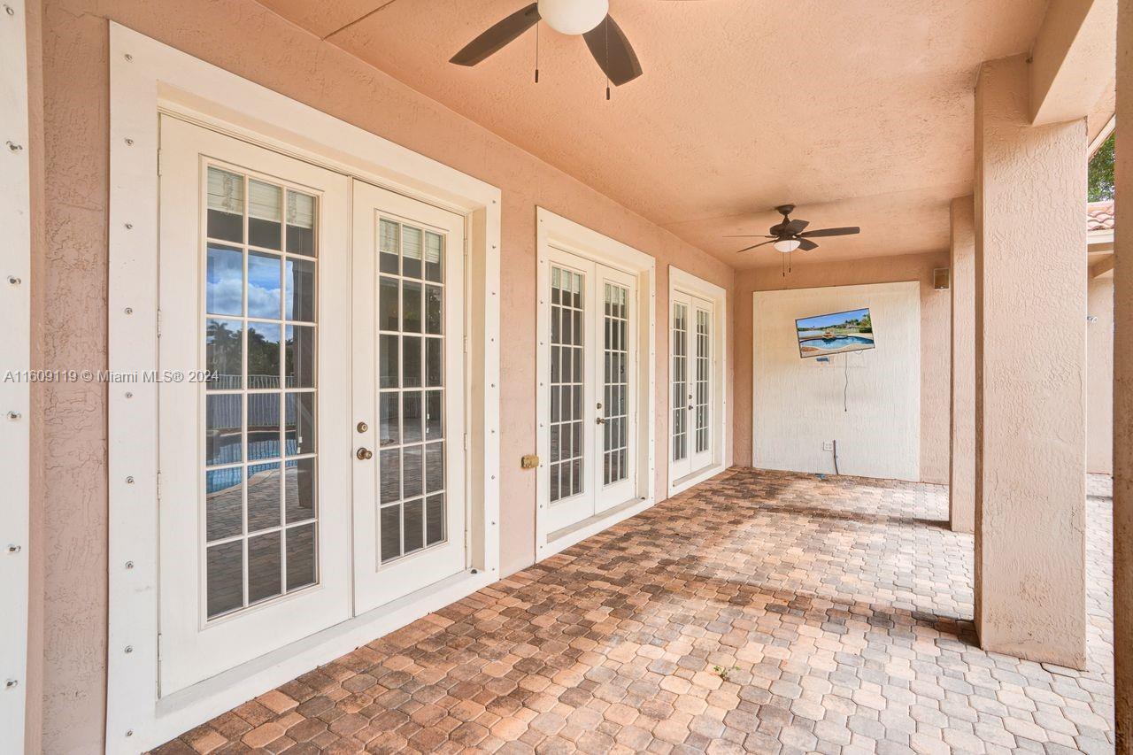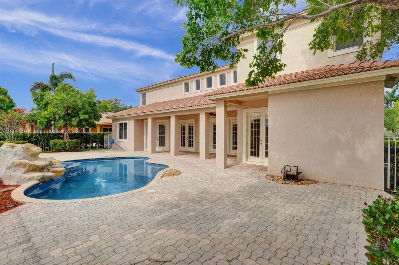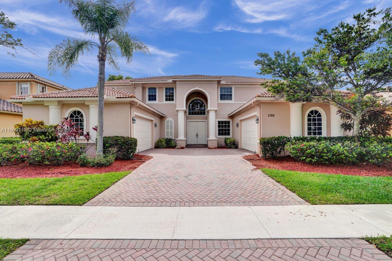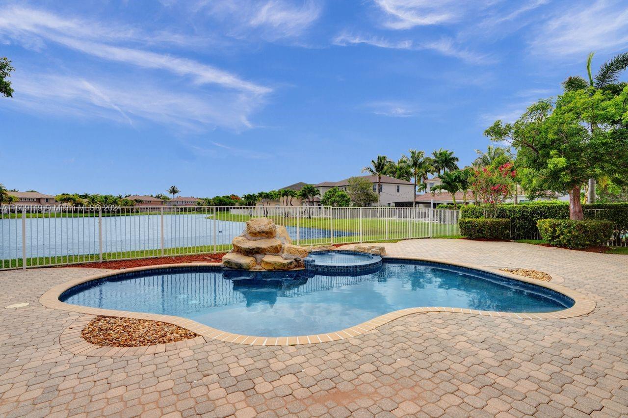 Stunning 4 car garage Montego model in Isles at Weston with over 5200 sf living area. Largest model in community with 6 bedrooms plus office and large upstairs rec room and 5.5 bathrooms. Beautiful marble flooring in main areas and wood flooring upstairs and all bedrooms. Large kitchen with wood cabinnets, granite, stainless steel appliances and walk in pantry.. Gorgeous custom stainless steel railings and french doors. Large master suite with sitting area and huge walk in closets downstairs and second master upstairs. Enjoy the outdoors with big covered patio and tranquil pool and lake views. Great community with remodeled club house, pool and gym. All interior freshly painted and exterior in process to be painted. Won't last!