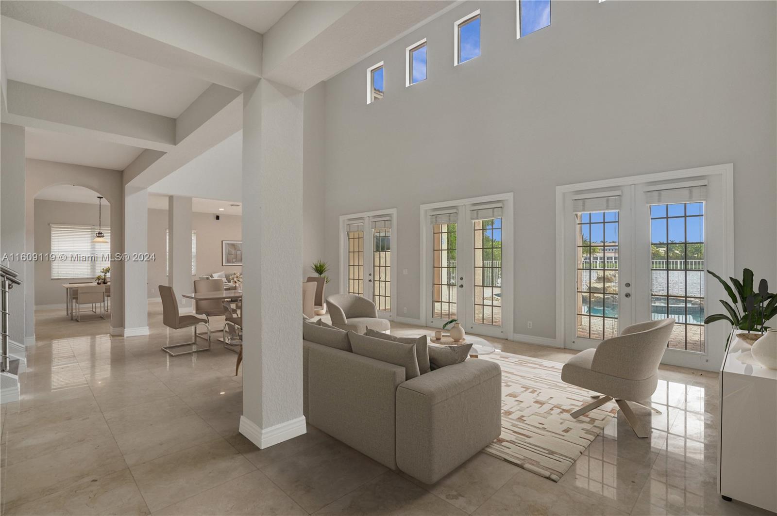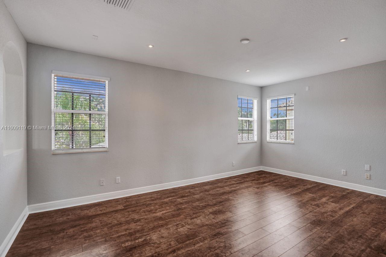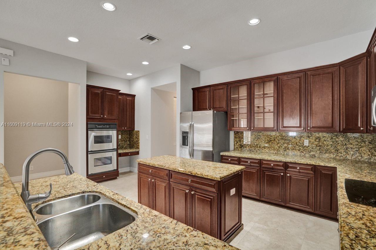 Stunning 4 car garage Montego model in Isles at Weston with over 5200 sf living area. Largest model in community with 6 bedrooms plus office and large upstairs rec room and 5.5 bathrooms. Beautiful marble flooring in main areas and wood flooring upstairs and all bedrooms. Large kitchen with wood cabinnets, granite, stainless steel appliances and walk in pantry.. Gorgeous custom stainless steel railings and french doors. Large master suite with sitting area and huge walk in closets downstairs and second master upstairs. Enjoy the outdoors with big covered patio and tranquil pool and lake views. Great community with remodeled club house, pool and gym. All interior freshly painted and exterior in process to be painted. Won't last!