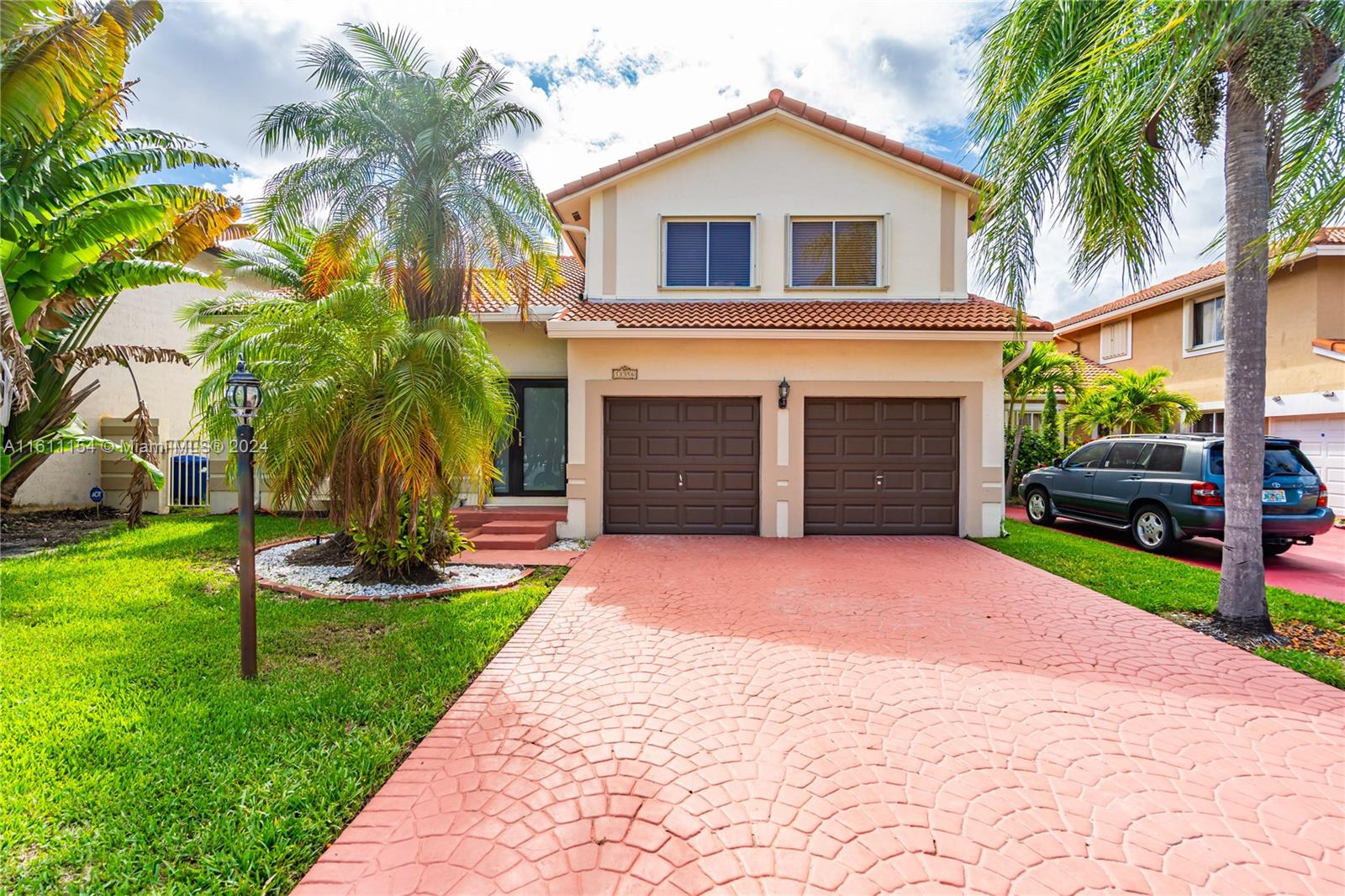 Looking for the perfect place to call home? Look no further! Located in the sought-after Moors community and nestled on a quiet street, this beautifully upgraded home features a brand new roof, volume ceilings, tile flooring throughout the common areas, accordion shutters throughout, a beautifully remodeled kitchen, and covered terrace. Spacious bedrooms, and ample closet space. Large driveway is lined with brick pavers that lead up to a two car garage. Low association fee $262 monthly includes cable, lawn mowing service, 24 hour security with front guard, club house with pool, gym, tennis court, basketball court and playground. Situated within a short distance to major highways, dining, shopping, schools, and places of worship.