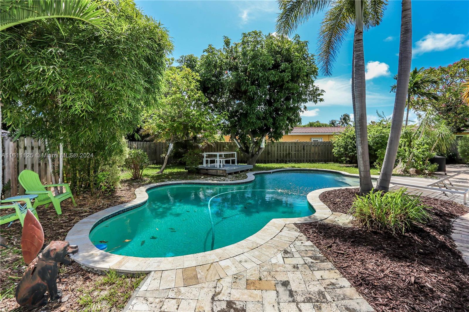 This charming 2/2.5 home offers the perfect blend of comfort, style, and convenience. Enjoy the open-concept living, family, and dining rooms, complete with large windows that flood the space with natural light. The updated kitchen features quartz countertops, stainless steel appliances, and ample cabinet space. Luxurious Primary Suite: Relax in your private suite with a spacious closet and an updated en-suite bathroom. Outdoor Oasis: Step outside to your private backyard retreat, complete with a beautiful pool, spacious pavered patio, lush landscaping, and a fenced yard perfect for entertaining. Enjoy the convenience of a one-car garage with laundry. Located in a sought-after community just 3/4 of a mile to intracoastal, 1 mile to beach, Jefferson Park, shopping, dining, and more.