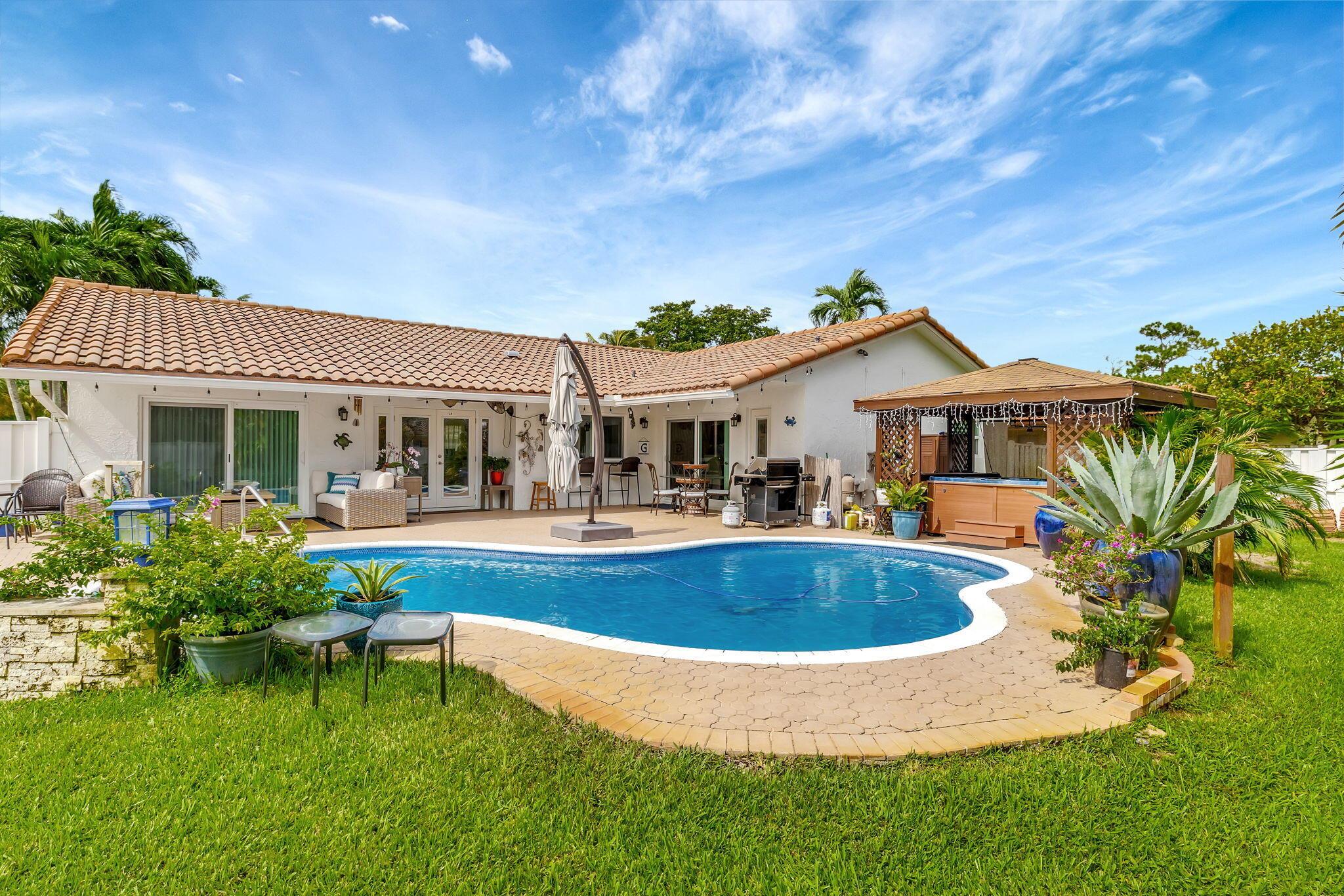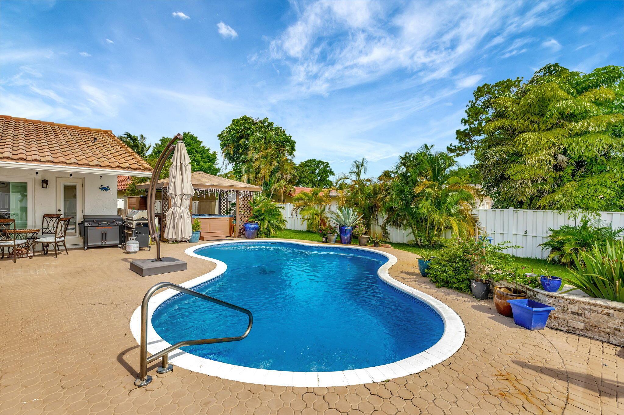 This stunning property features a spacious layout and includes a refreshing pool and a hot tub.The interior of the home has been thoughtfully updated with modern finishes. The open concept design allows for seamless flow between the kitchen, dining area, and living room, perfect for entertaining guests or spending quality time with family.The three bedrooms offer ample space and natural light. The master bedroom includes a private en-suite bathroom for added convenience and privacy. In addition to the two full bathrooms, there is also a convenient half-bathroom on the main floor.Step outside onto the expansive patio area, where you'll find the inviting pool and the soothing hot tub. Furthermore, this home is equipped with impact windows and doors.