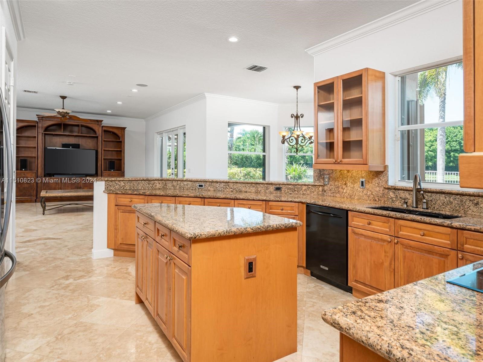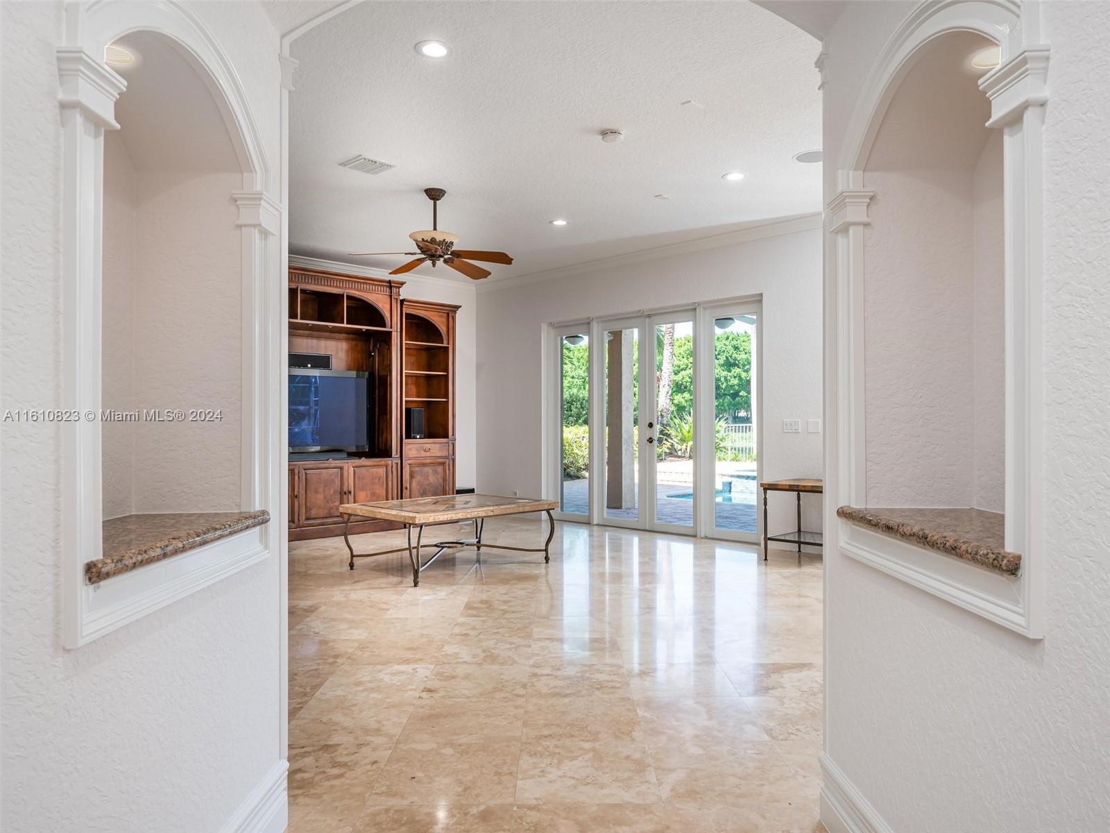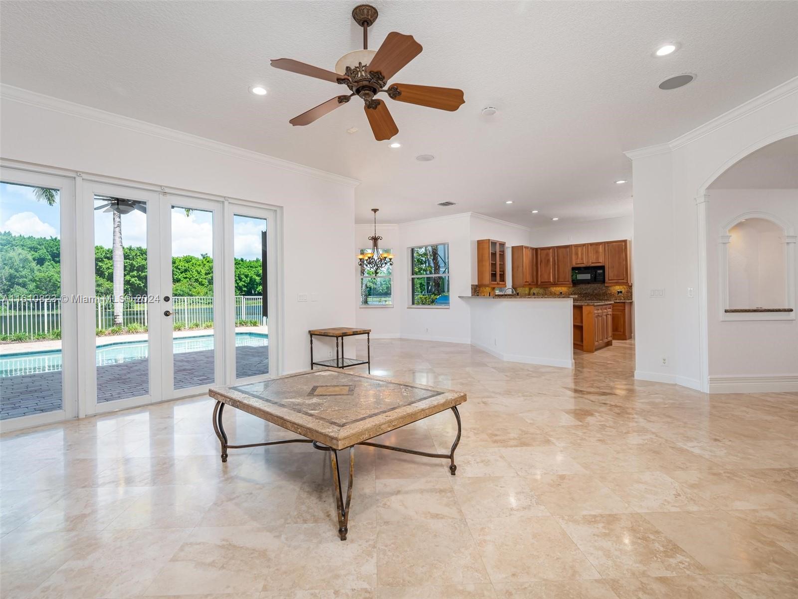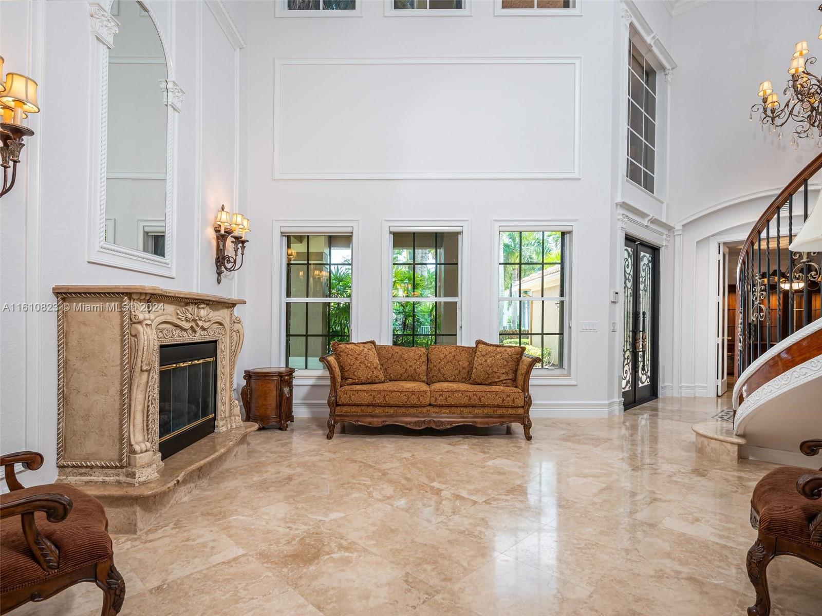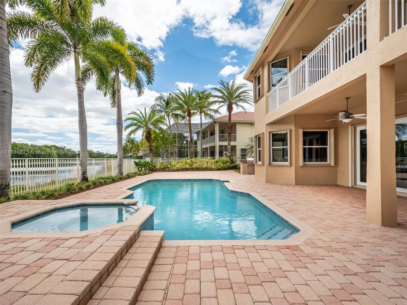 Highly sought after Sanibel model in Weston Hills Country Club. This spacious home boasts 5,365sf of living space on a 15,453sf waterfront lot. With 5 bedrooms, 5.5 bathrooms, plus an office/bonus room with wet bar/loft, this property offers ample space for comfortable living. The home features a 3-car garage, separate in-law suite with an independent entrance, and Accordian shutters for added convenience and security. The backyard is perfect for entertaining, w/ a newly renovated salt water heated pool, summer kitchen & spacious outdoor area. Inside, you'll find Saturnia marble on the 1st floor, custom moldings, & millwork throughout, adding a touch of elegance to the space. The open kitchen is equipped with granite countertops, walk-in pantry & all the top appliances.