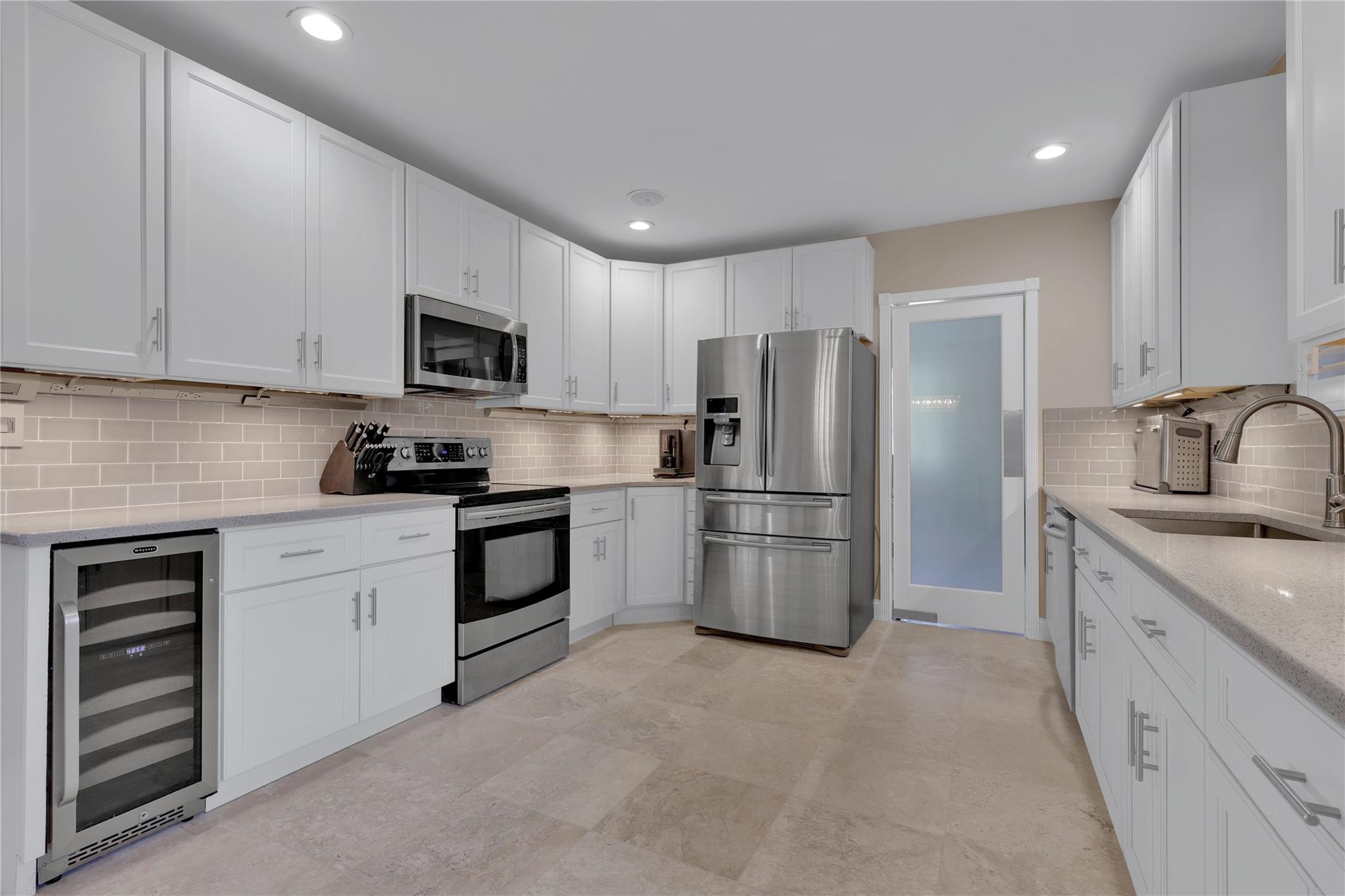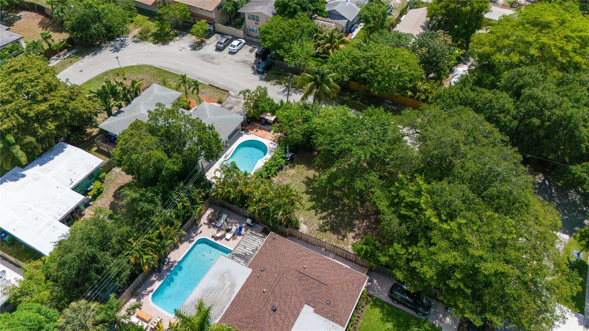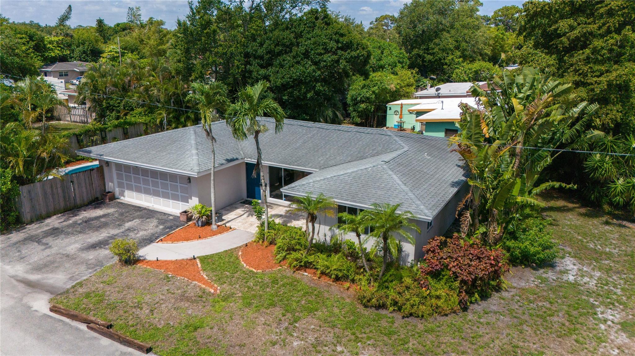 Spacious east of I-95 home. BONUS:TWO Folio #s! Build & sell another home! One lot 7700sf has 3/2 pool home. BRAND-NEW Modern luxury kitchen. Tall white cabinets, quartz counters, plantation shutters, recessed lighting, stainless steel appliances, travertine floors. Newly painted beautiful flowing living & dining room. 2017 Roof w/25-year warranty (50 on materials). 2017 3-ton Carrier & new duct system. Large Laundry room w/front loaders; tons of storage space. Corner primary bedroom w/ensuite bathroom & barn door! Second bedroom is just as large, connects to third bedroom or office. Hallway bathroom updated. Huge under-air family room (transformed from garage) has wall of closets and French doors leading to private pool and enchanting garden. Walk thru arch into 6300+ backyard (2nd lot).