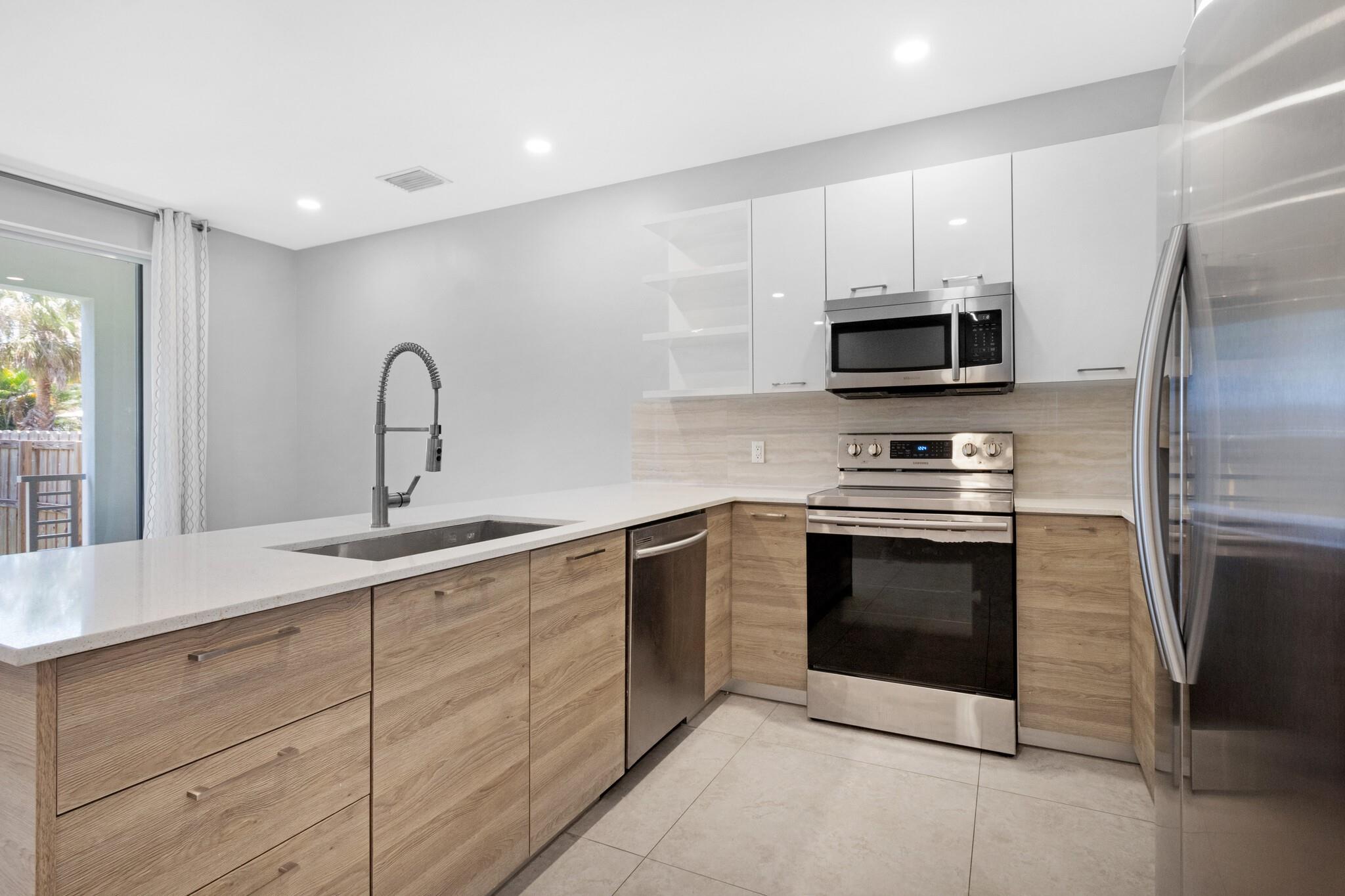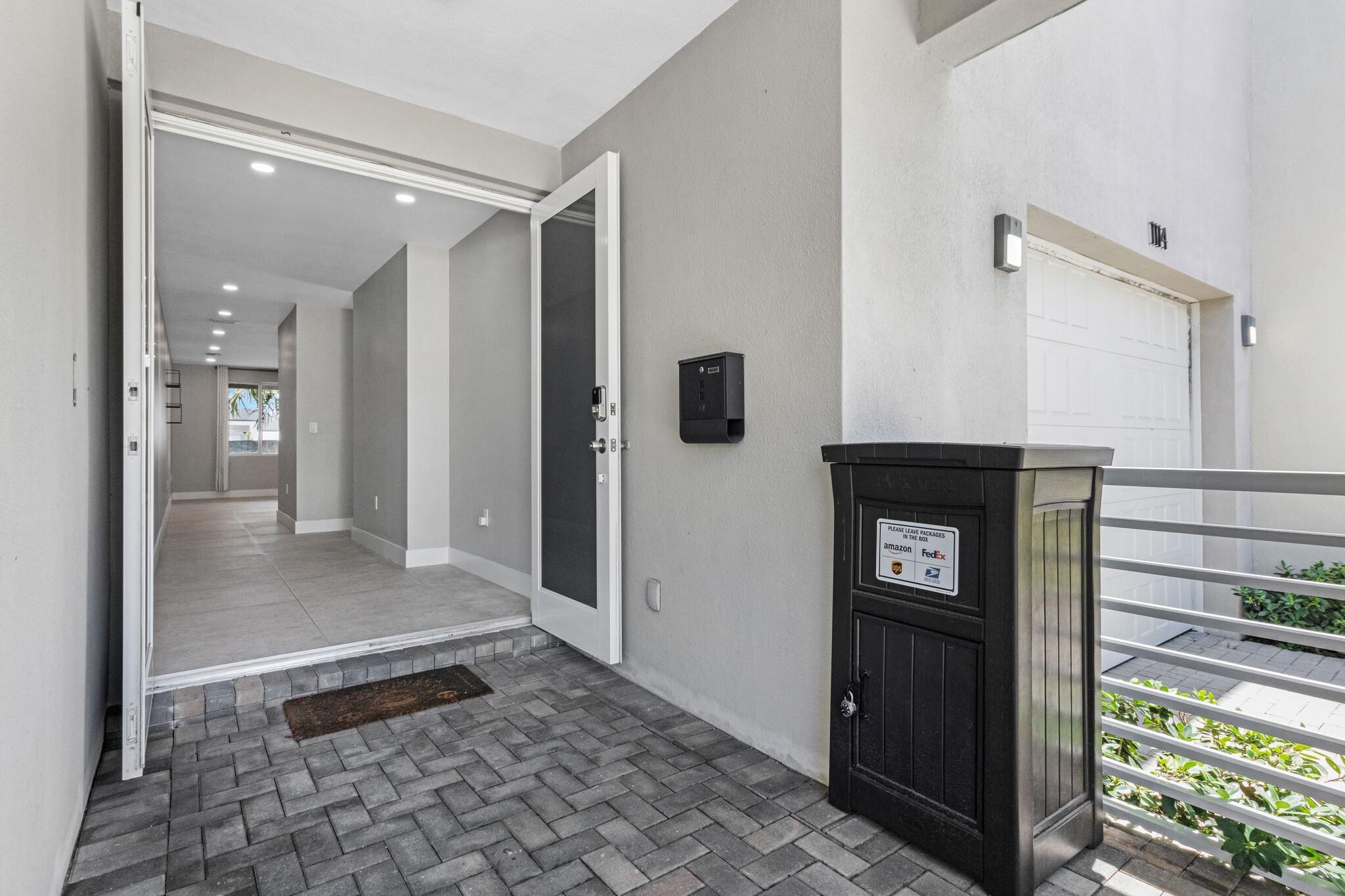 Beautiful Newer Construction Townhome in HOT Middle River. Large open layout first floor w/ large format tile, double door entry foyer, modern kitchen design w/ stainless appliances & quartz counters, pantry, half bath, covered patio, & garage with storage! The second floor features a huge primary w/ sitting area, walk in closet, luxurious bath, & private balcony. Upstairs you’ll also find 2 more spacious bedrooms, a second balcony, side by side front loading laundry w/ more storage, & another double vanity bathroom. All Impact windows/doors, drapes, roller shades, paver driveway, private low maintenance artificial turf back yard w/ new palms. Perfect location w/ easy access to Wilton Manors, 5 Points, 13th St retail, Downtown, & US1. No HOA allows for less restrictions & no condo fees!