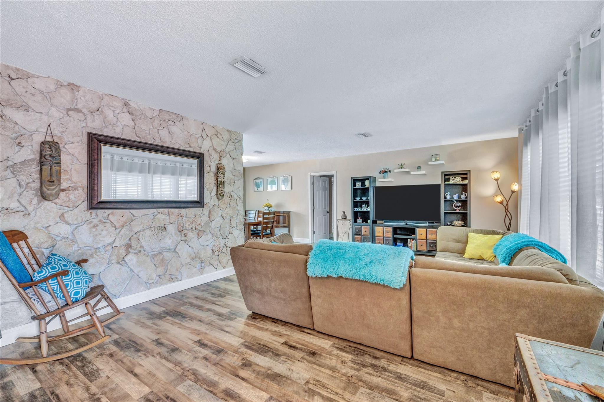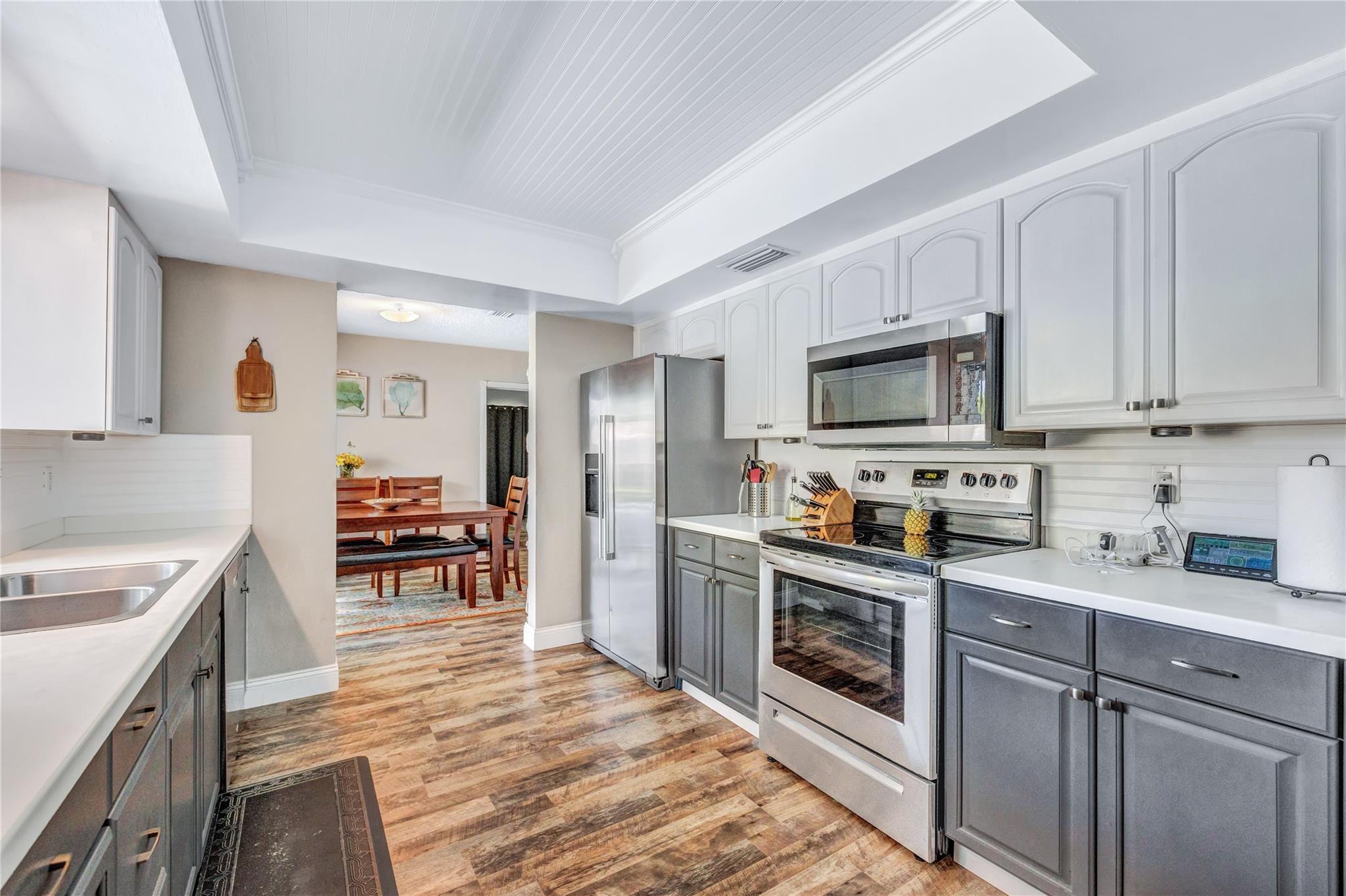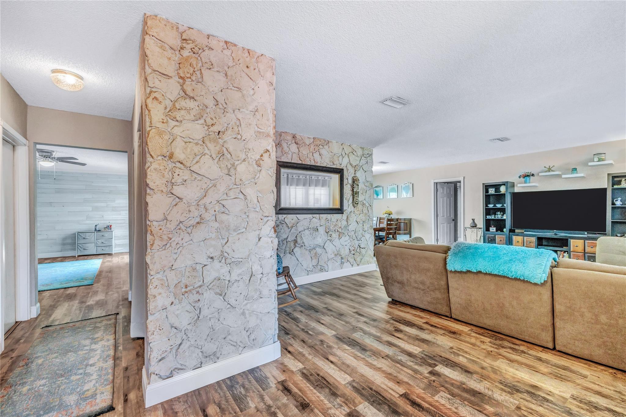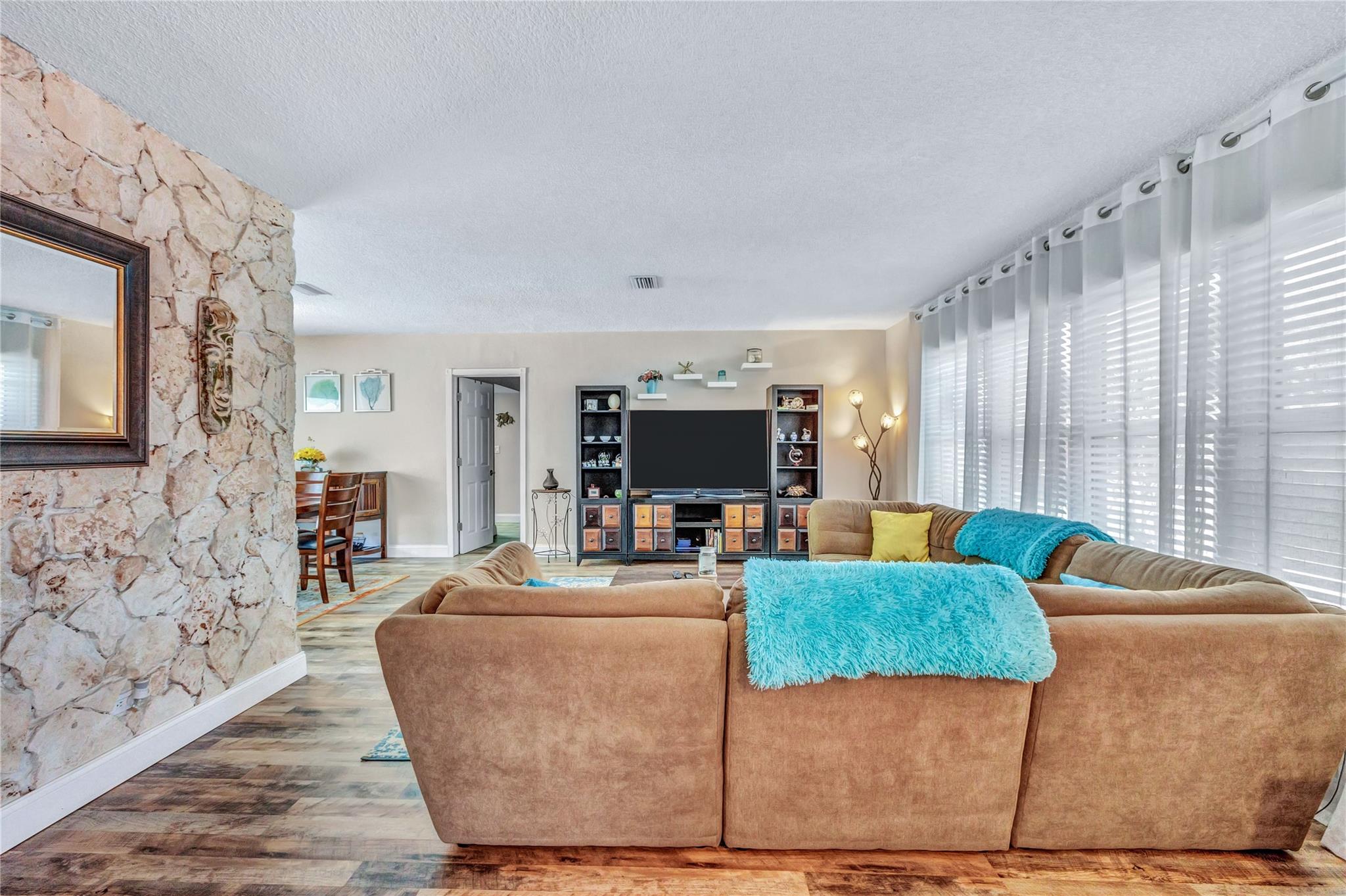 Located in a vibrant town full of opportunities, this beautiful home is just minutes from the Broward Mall and Sawgrass Mills Mall, with easy access to major highways. This sought-after Capri floor plan 4/2 in a true split layout, with the primary bedroom on the right and secondary bedrooms on the left. The kitchen features contrasting cabinets, stainless steel appliances, & a wonderful view, perfect for keeping an eye on the kids while cooking. Adjacent to the kitchen are spacious living, family, & dining rooms, providing ample space for family & guests. The covered patio and large saltwater pool—recently updated with new marcite, tiles, light, pool pump, pipes, and jets—are ideal for entertaining. A wrap-around fence ensures privacy and safety for kids and pets. Stay Friendly!