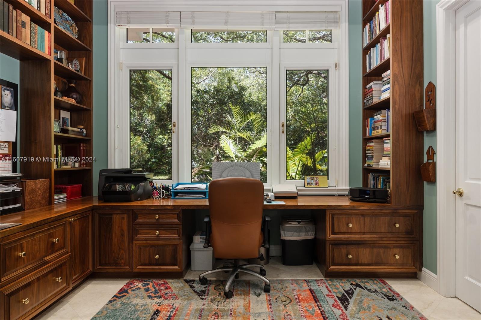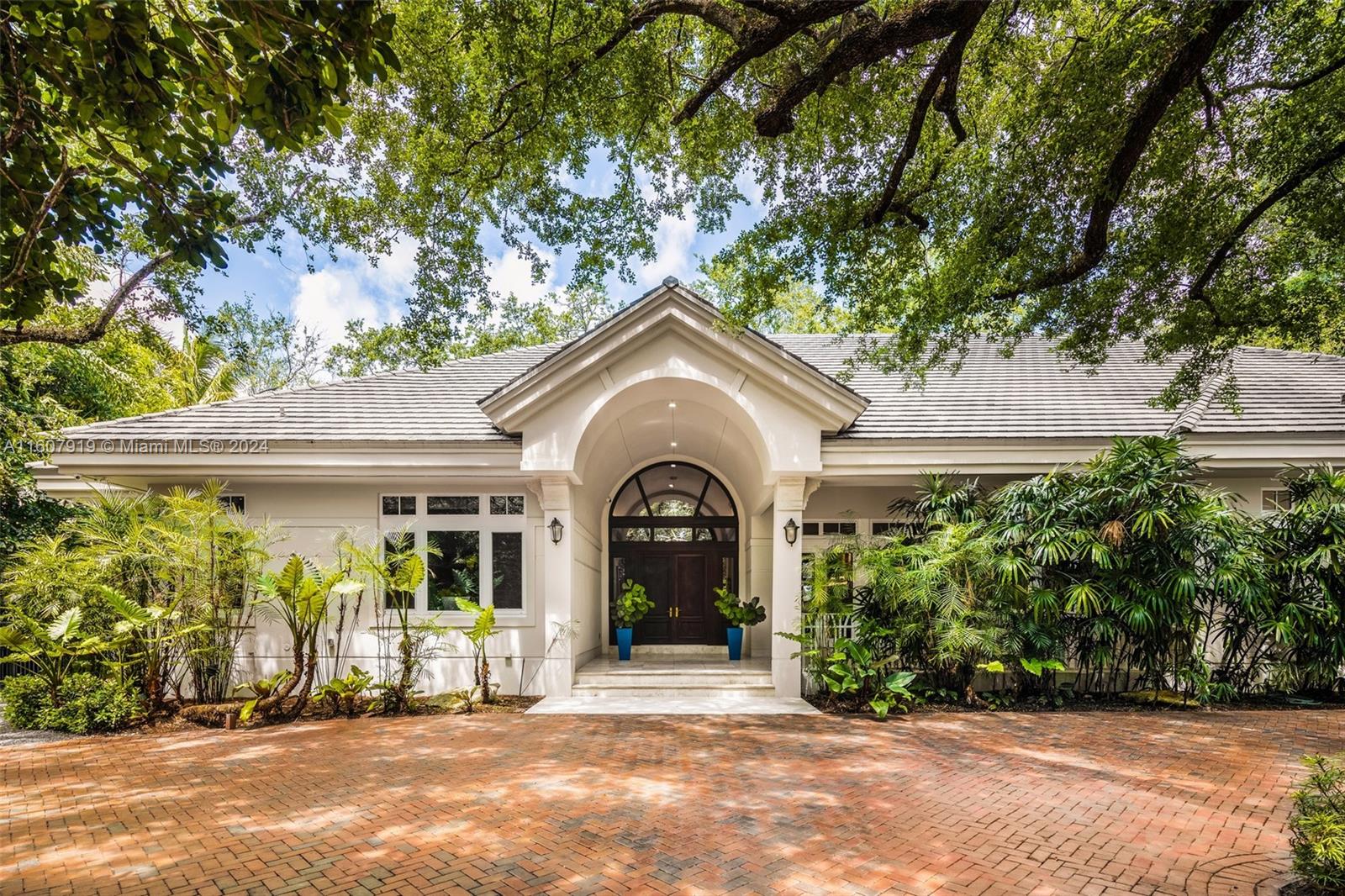 Exceptional Custom One-Story Tropical Sanctuary in Pinecrest on an acre! This 6 BD / 5.5 BA, 7,345 Total SF Estate seamlessly integrates expansive interiors w/ an outdoor oasis. Double mahogany doors open to voluminous ceilings & MQ transom windows providing views of lush landscaping from every room. Gourmet kitchen boasts a breakfast nook w/ views of the resort style pool & backyard, large island, & 146-bottle wine fridge that leads to a large vaulted-ceiling family room w/ wet bar. Entertain under the screened patio w/ fully equipped summer kitchen. Separate guest quarters w/ full bath. Primary suite w/ 2 walk-in closets, seating area, lavish bath, & screened porch. 4 addt'l bdrms w/ high ceilings & walk-in closets (2 en-suite). 3.5 Car Gar, 40 kw Generator, Pinecrest Elem. School Zone.