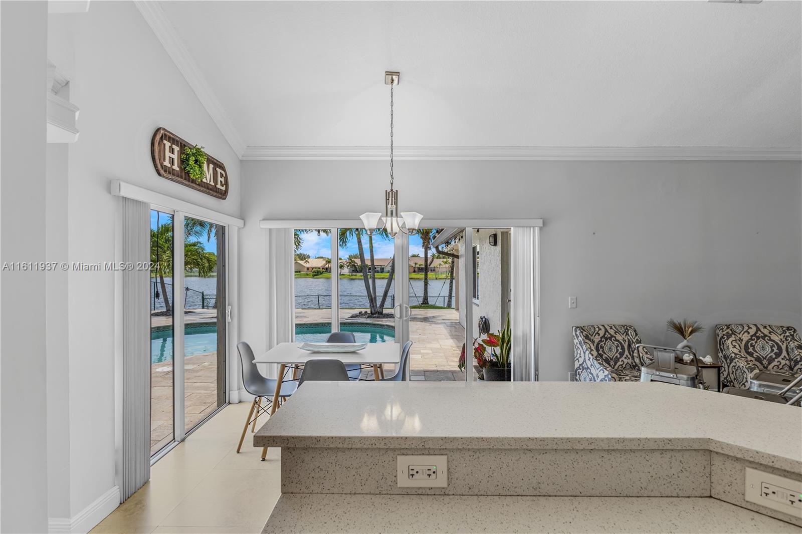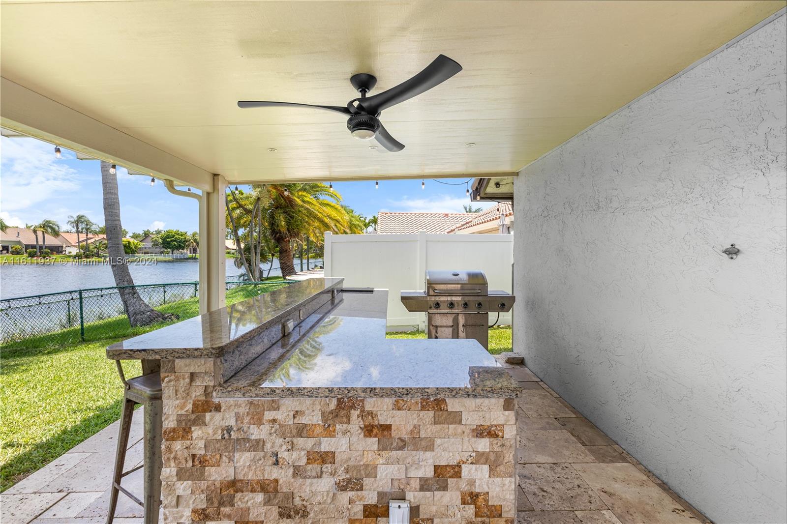 Discover your dream lakefront home in the highly sought-after Spring Valley! This exceptional 4-bedroom, 2-bathroom residence offers many upgrades, ensuring unparalleled comfort and convenience for your family. Enjoy the benefits of a newer roof and HVAC system installed in 2023, along with a beautifully upgraded kitchen featuring stainless steel appliances. The modernized bathrooms and laundry room add to the home's appeal. This private lakefront oasis, complete with a saltwater pool and a new pool pump, is perfect for leisurely swims and family fun. The outdoor kitchen is ideal for entertaining guests, while landscape lighting enhances the ambiance of the beautiful lake views. A 2-car garage, equipped with a new smart garage door opener, provides ample convenience. Turnkey, low HOA.