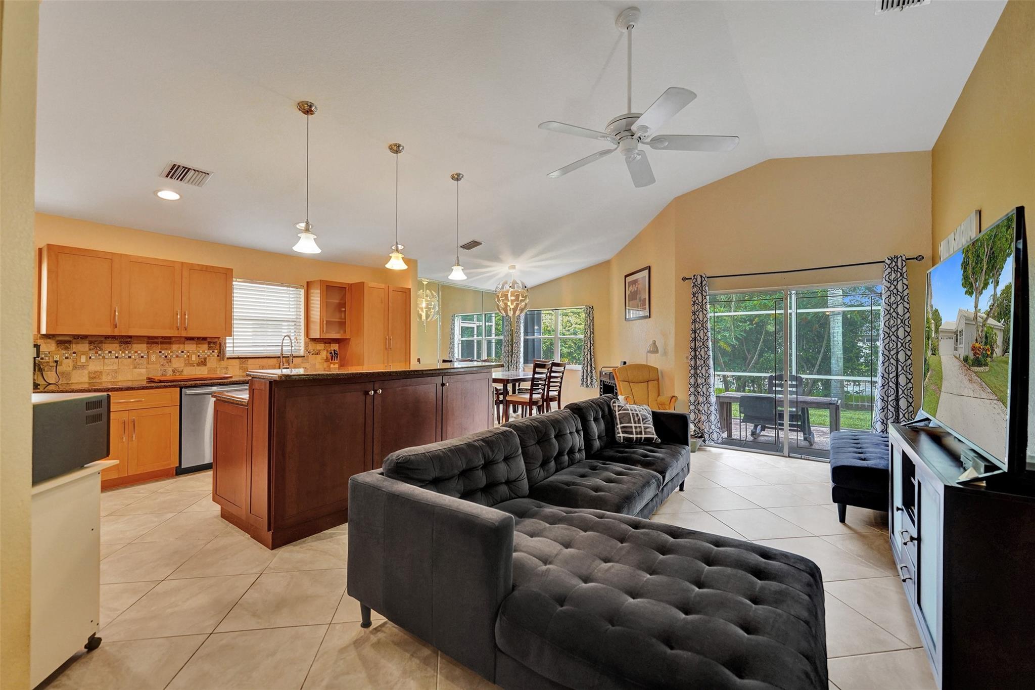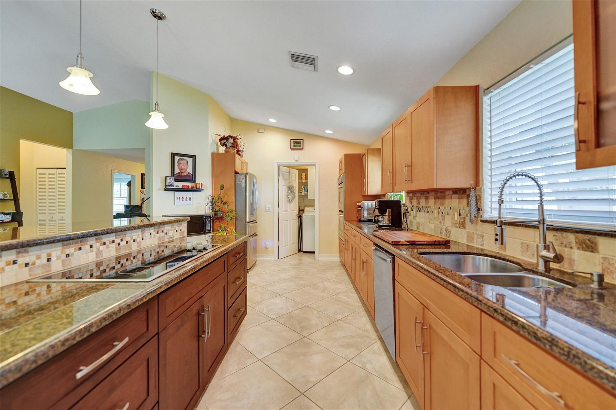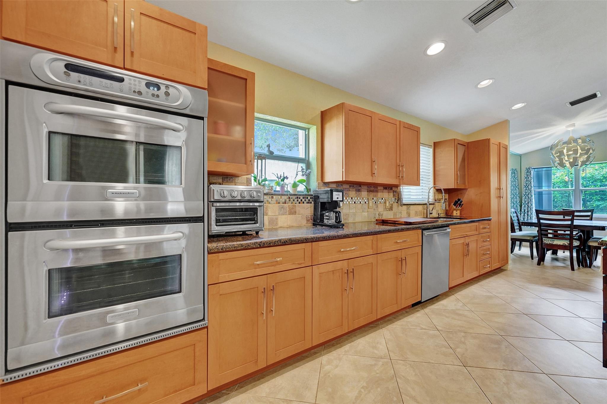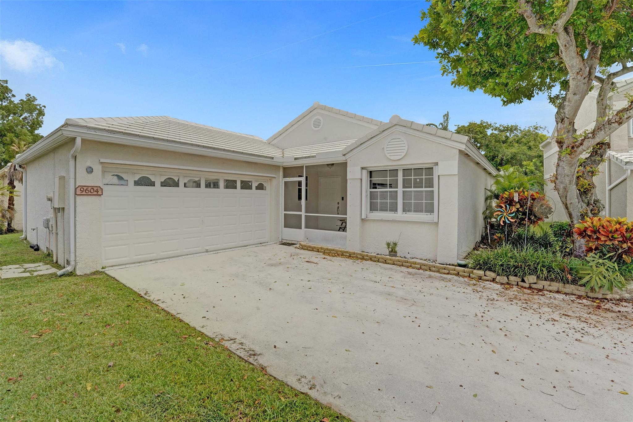 This charming three-bedroom, two-bathroom property located in gated Jacaranda Pointe offers a comfortable and inviting atmosphere for you to call home. As you step inside, you'll be greeted by a spacious living area where the kitchen seamlessly opens to the dining and living rooms, creating a perfect space for entertaining and everyday living. The kitchen features KitchenAid double wall ovens and cooktop, Bosch dishwasher, plenty of storage space, and snack bar/countertop seating with additional storage. Additional features: two-car garage w/long driveway for plenty of guest parking plus covered patio and porch spaces, and a laundry room w/sink. Cool off in the community pool or head over to Central Park & enjoy some Pickleball/Tennis/Sports, shopping and restaurants within a 5m drive.