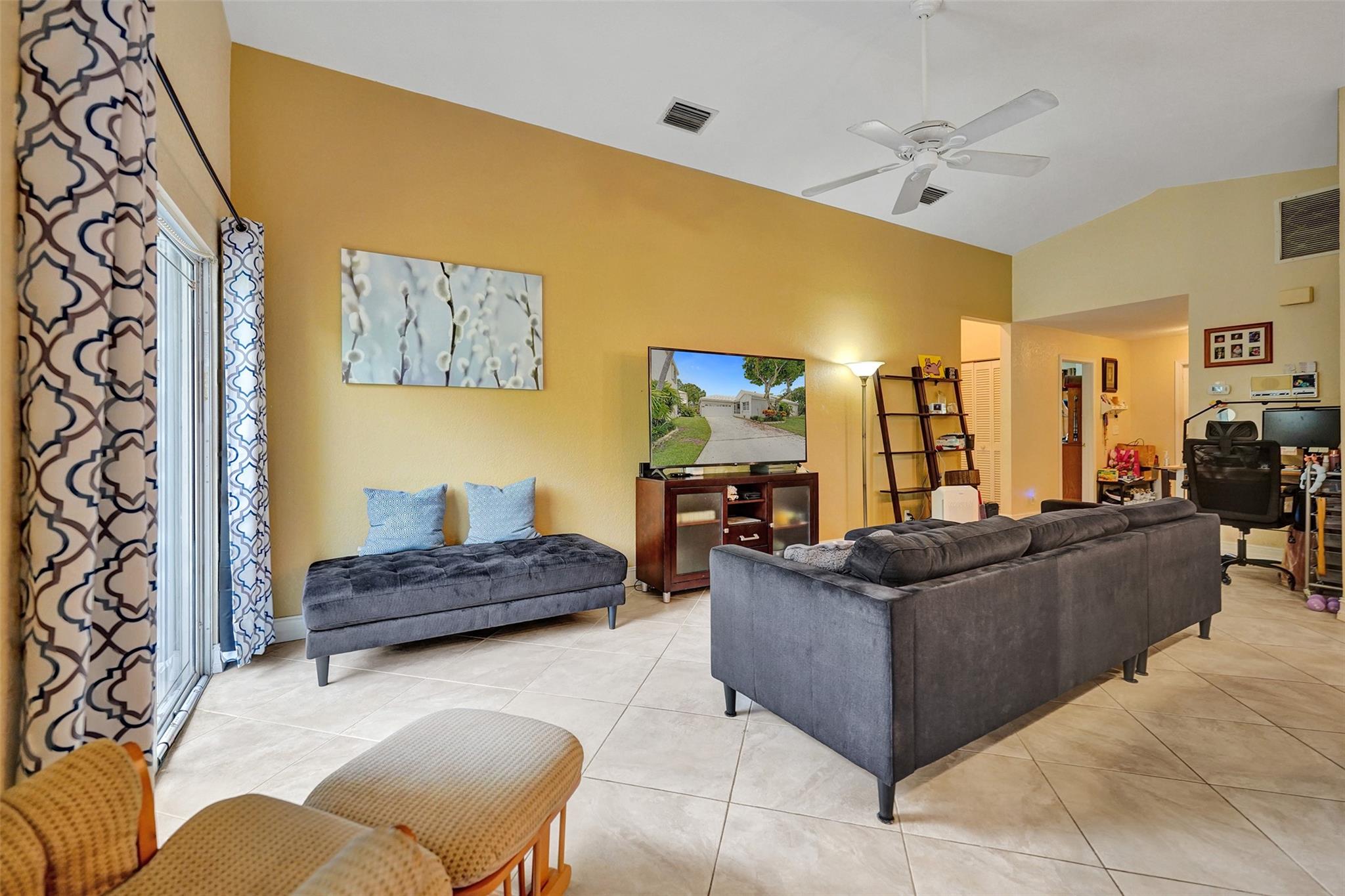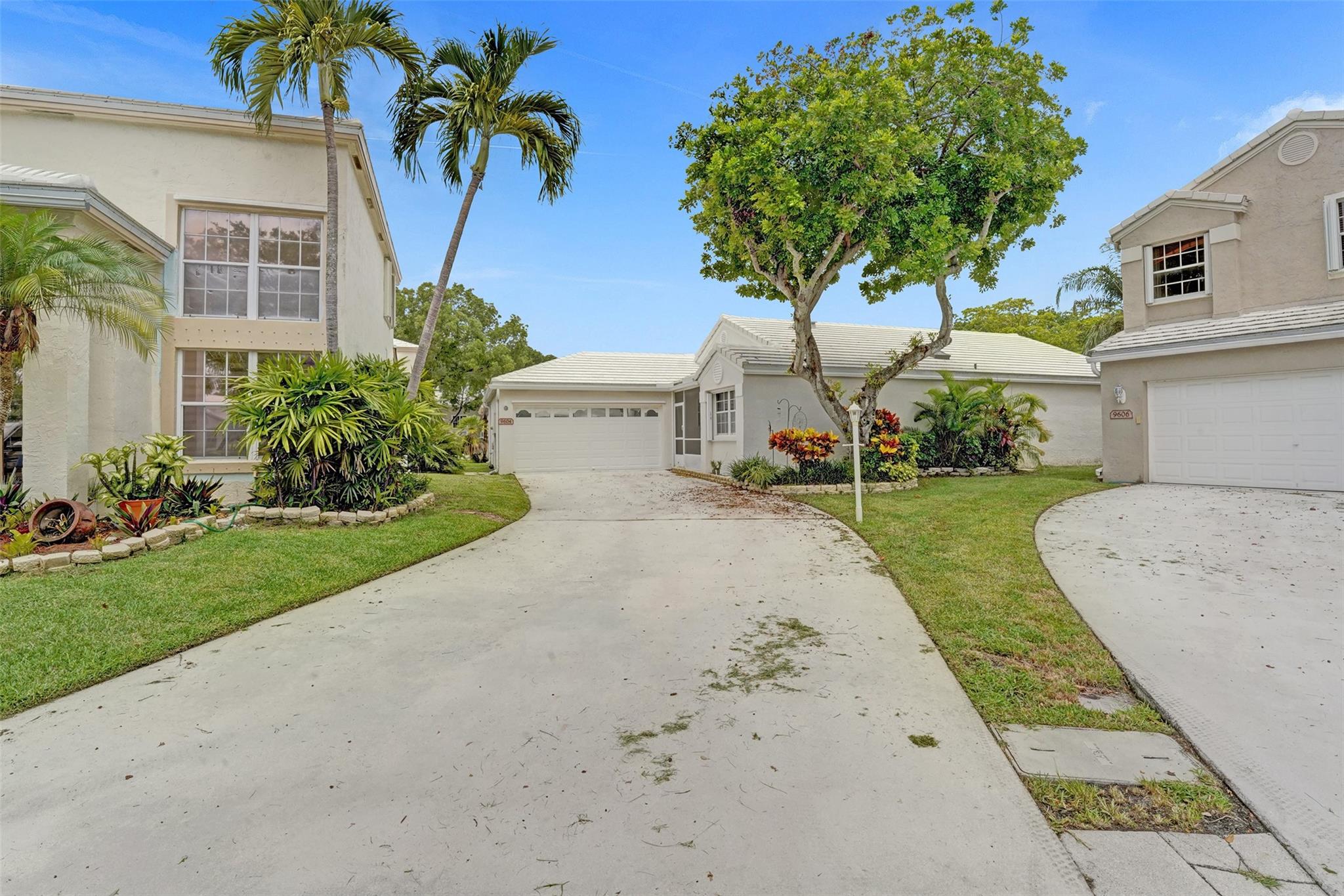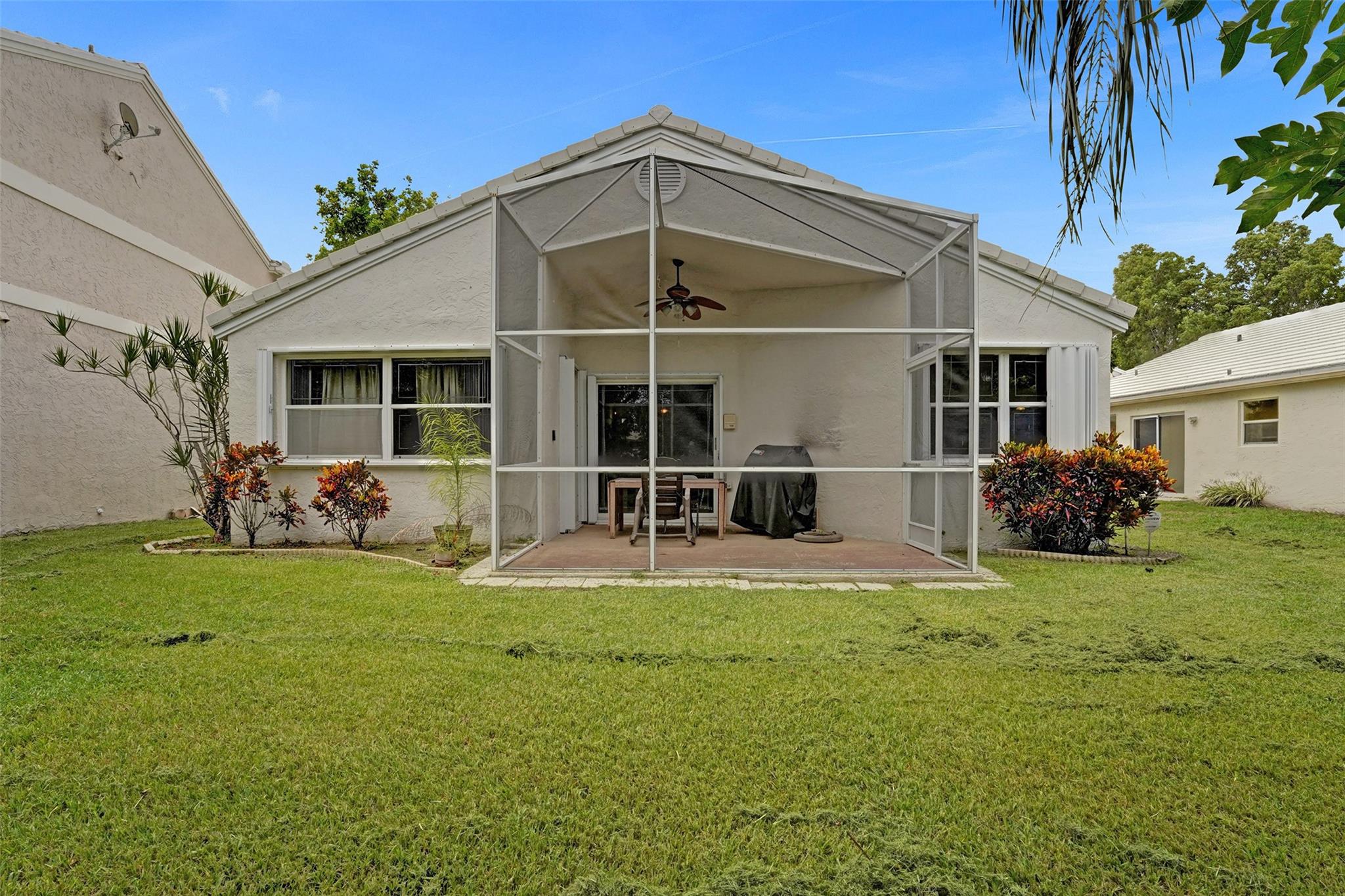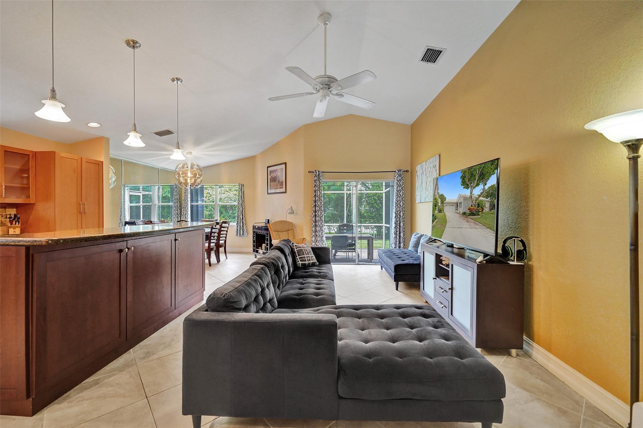 This charming three-bedroom, two-bathroom property located in gated Jacaranda Pointe offers a comfortable and inviting atmosphere for you to call home. As you step inside, you'll be greeted by a spacious living area where the kitchen seamlessly opens to the dining and living rooms, creating a perfect space for entertaining and everyday living. The kitchen features KitchenAid double wall ovens and cooktop, Bosch dishwasher, plenty of storage space, and snack bar/countertop seating with additional storage. Additional features: two-car garage w/long driveway for plenty of guest parking plus covered patio and porch spaces, and a laundry room w/sink. Cool off in the community pool or head over to Central Park & enjoy some Pickleball/Tennis/Sports, shopping and restaurants within a 5m drive.