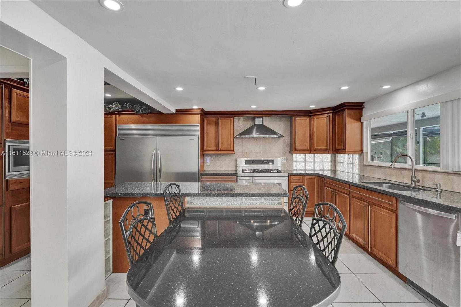 Discover this charming 4-bedroom, 3-bathroom home in the heart of Plantation Gardens. Spanning 2,464 sq ft, this residence features a chef's kitchen with Frigidaire appliances, two spacious master suites with en-suite bathrooms, a split floor plan for added privacy plus a bonus room. The expansive 13,000 sq ft lot is perfect for outdoor entertaining, boasting a screened-in pool, built-in wet bar and grill, and a raised garden area. Energy-efficient with solar panels and a tankless water heater, plus recent updates including a new roof and HVAC system. This home is a blank canvas and presents a unique opportunity to personalize a solid foundation in a prime location minutes from Plantation Walk, Broward Mall, Liberty Tree Park, Florida Turnpike, I-595 and more.