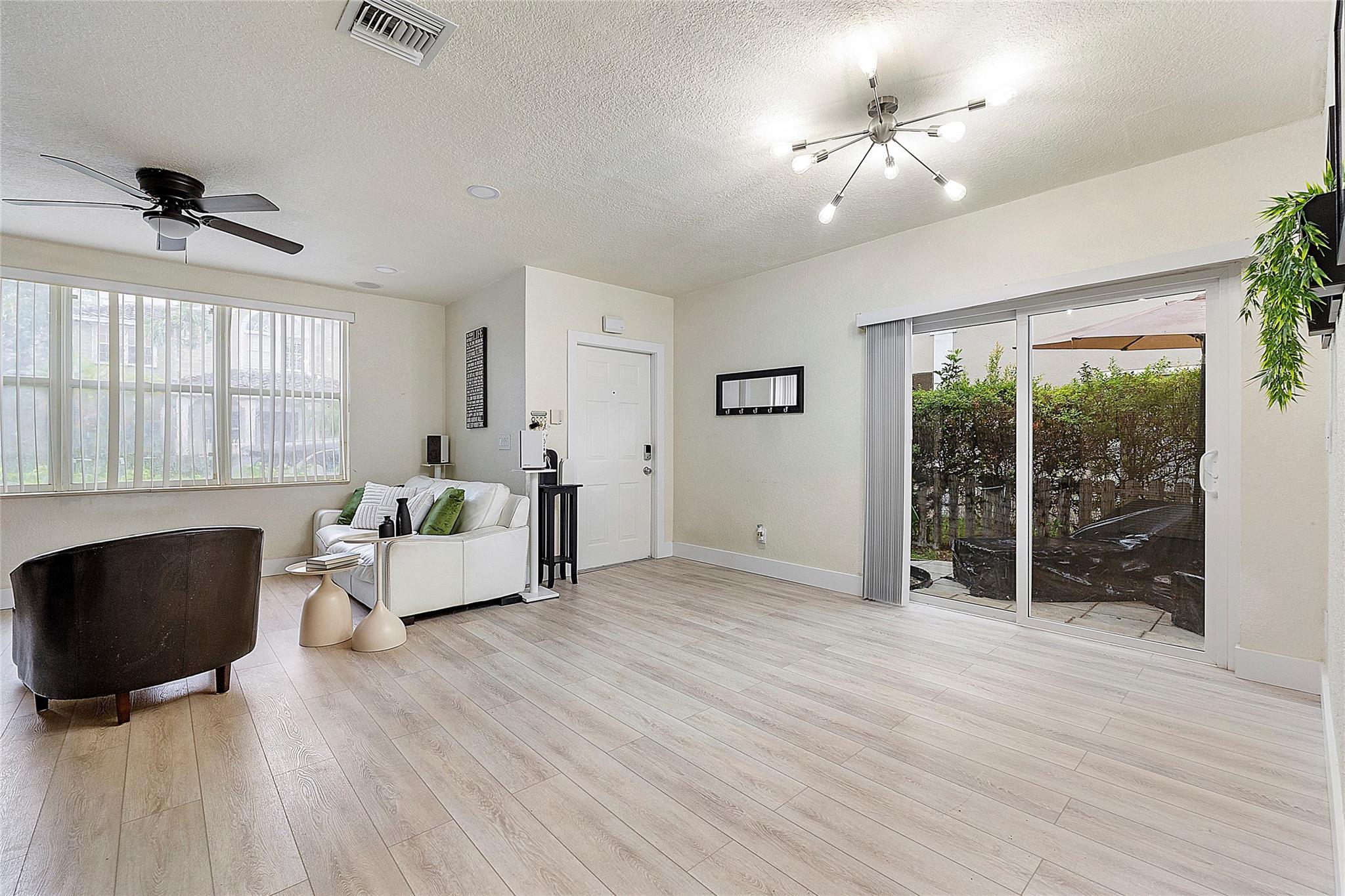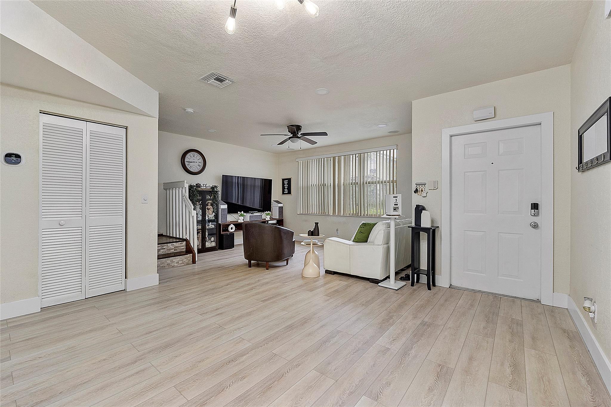 Welcome to this stunning new townhome in the highly desirable community of Cinnamon Crossings! This home boasts updated bathrooms & an inviting kitchen equipped with stainless steel appliances, wood cabinetry, & granite countertops. Roof is only 2 years old, has a 2-car garage, hurricane protection, ample space, this home has it all. This property is zoned for top-rated 'A' schools within walking distance, with a convenient location that invites easy access to dining, shopping, & major transportation routes. Situated in a quiet, family-friendly community across from a community park. Via HomeKit permits control for various internet-connected devices through your phone/Siri, such as the automatic garage door & lights. Along with a Ecobee Thermostat, for the AC. Come see for yourself!
