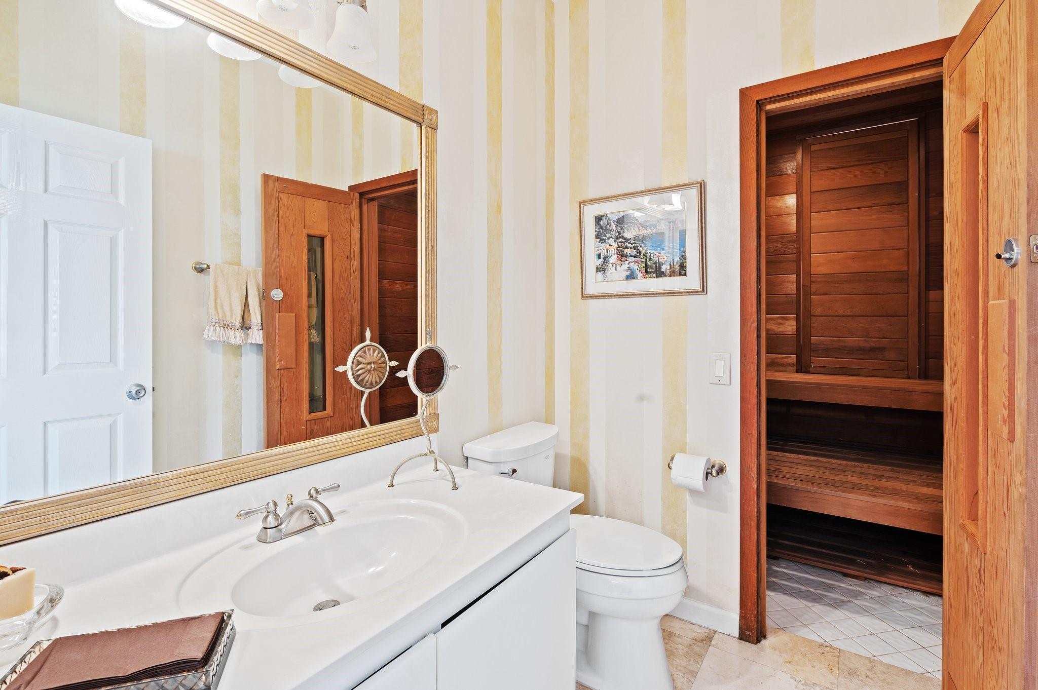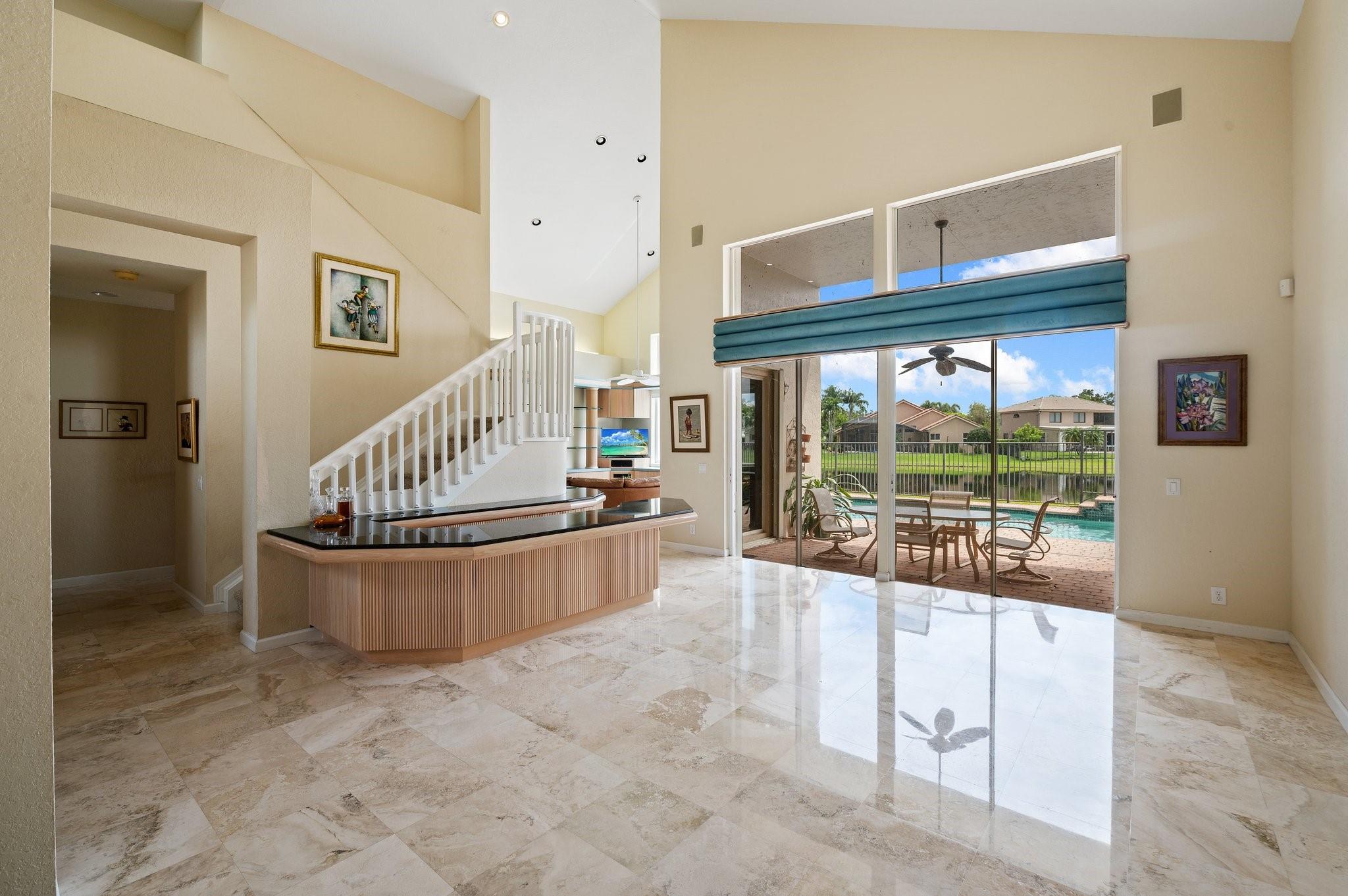 Discover a truly unique and first-time offered waterfront pool home nestled within a serene half cul-de-sac in a premier golf course community. This exquisite residence boasts high volume ceilings that amplify its sophisticated charm and expansiveness, while marble floors lend an air of timeless elegance throughout the living spaces. Upgraded kitchen featuring modern appliances, custom cabinetry, granite countertops & breakfast area. The main bathroom has also been meticulously upgraded, offering a luxurous spa tub, spacious walk-in shower & elegant fixtures. Step outside to the beautifully designed pool area, where tranquil waterfront views enhance the beauty of outdoor living. New Roof 2020, New A/C 11/2023, House Water Purification System & a Classic Knotty Pine Dry Sauna in 3rd bath.
