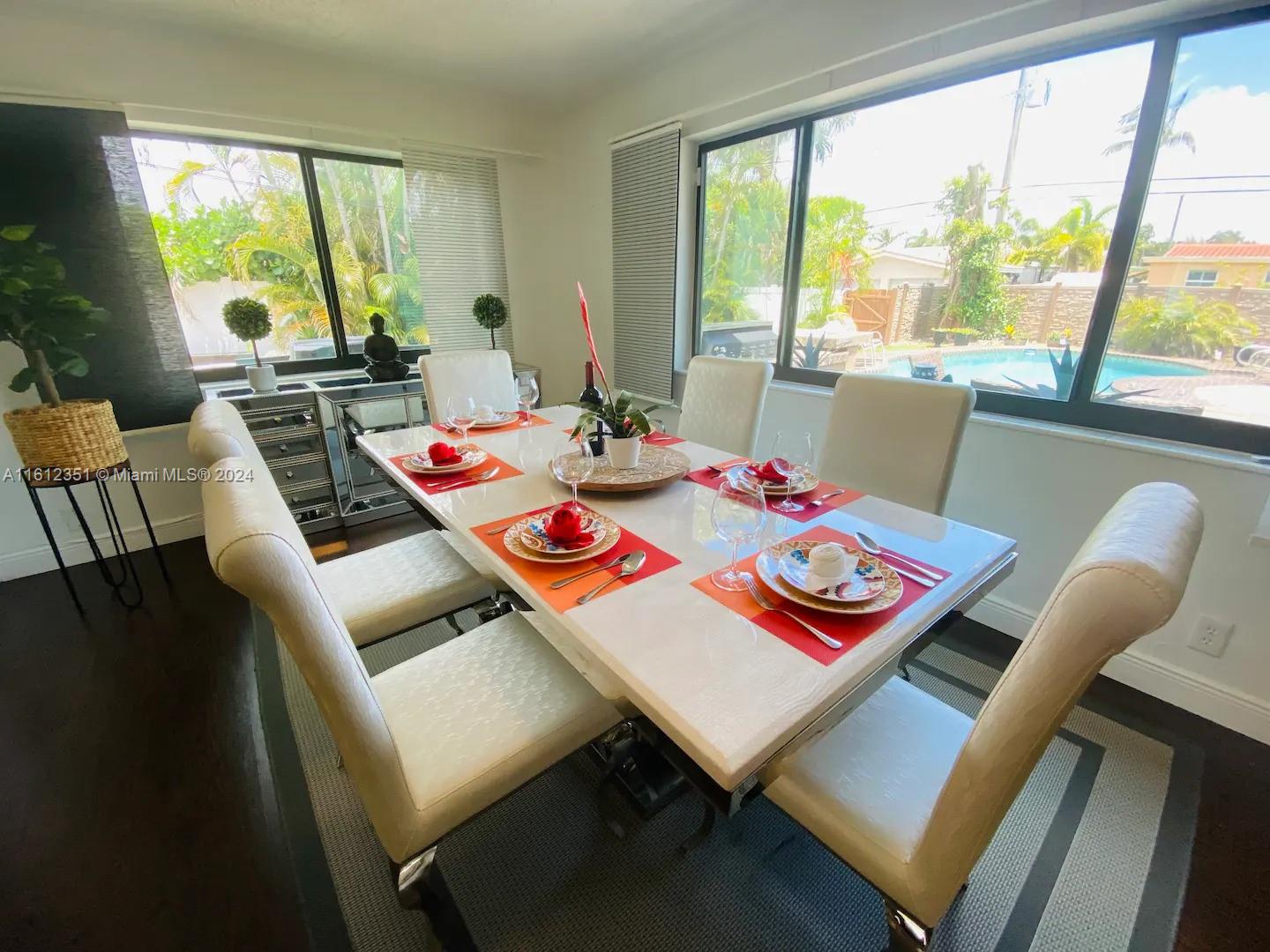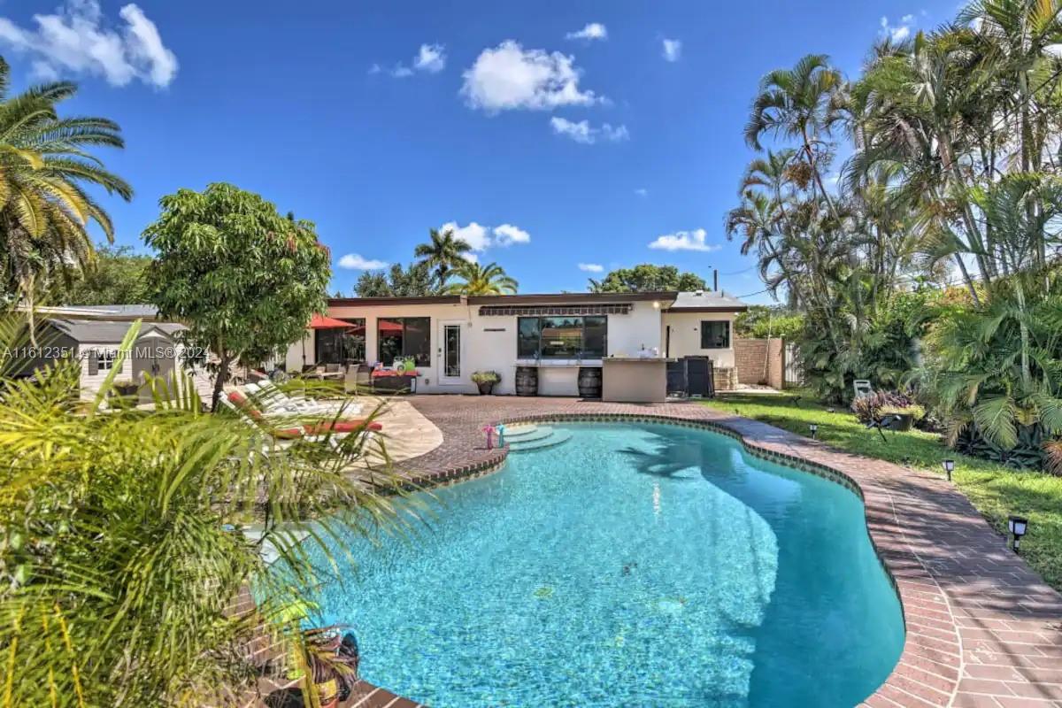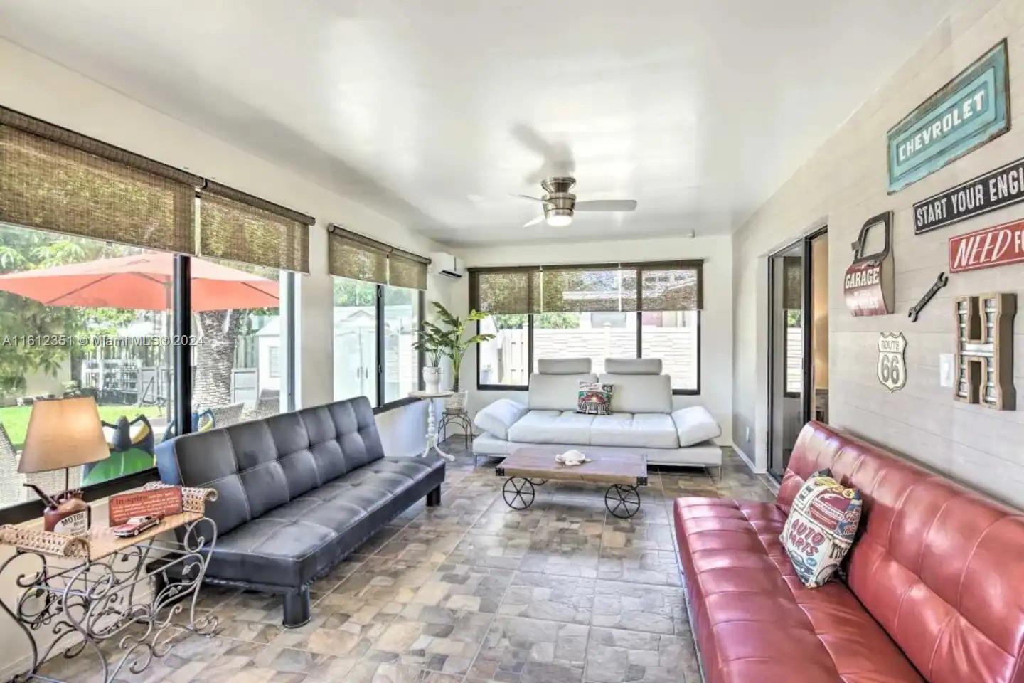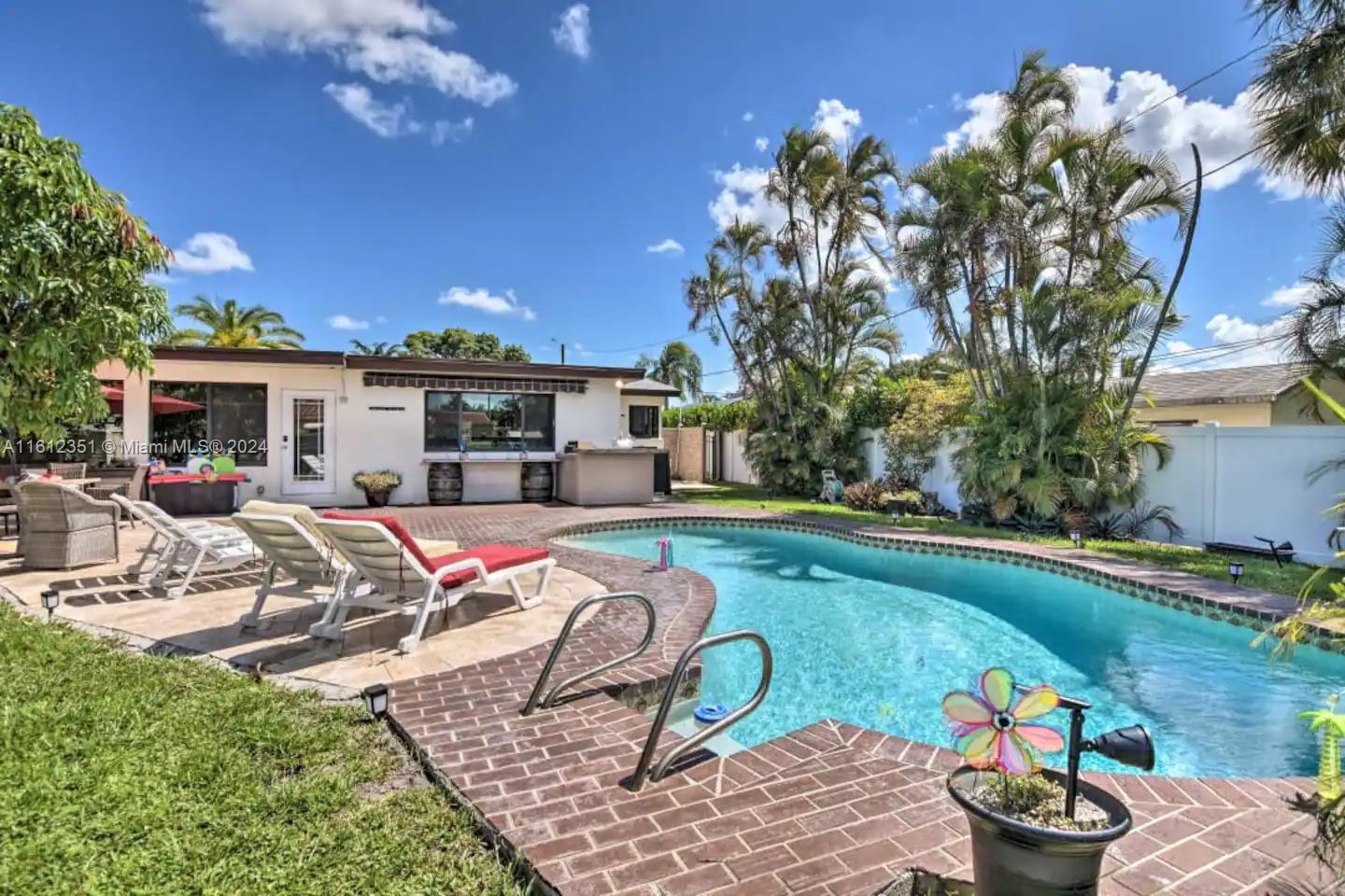 Welcome to a Hollywood retreat that seamlessly blends style and comfort. This updated 2/2 home plus a garage used as a 3rd bedroom is a gem, boasting features designed for both relaxation and entertainment. Step inside to discover a spacious, thoughtfully designed interior with impact windows throughout for security and energy efficiency. The heart of this residence is the gourmet kitchen, equipped with stainless steel appliances. The open layout flows into inviting living spaces, perfect for gatherings. The Florida Room, bathed in natural light. Escape to the backyard oasis, where a pristine heated pool is surrounded by a travertine patio. The large patio space is ideal for al fresco dining or entertaining. Convenience meets lifestyle