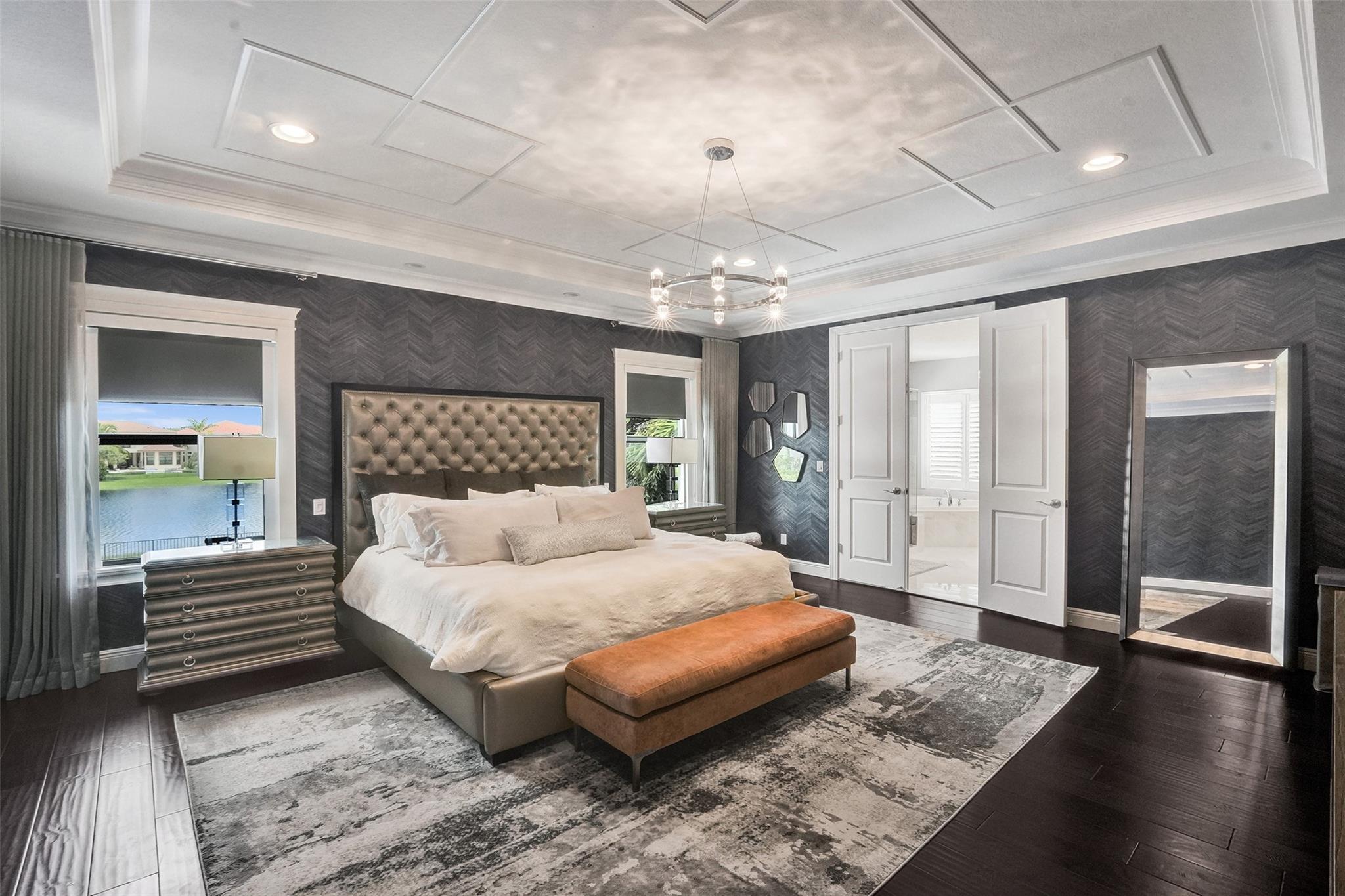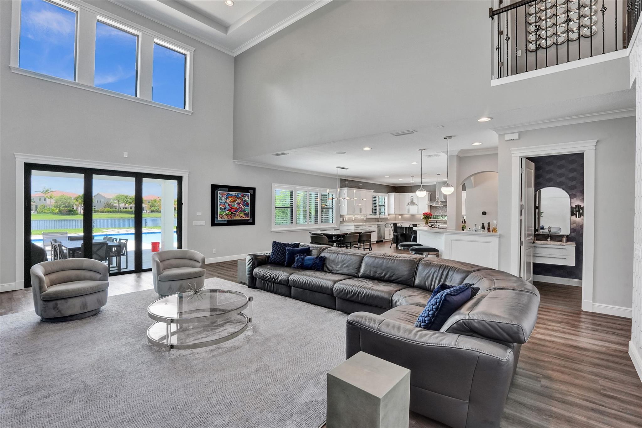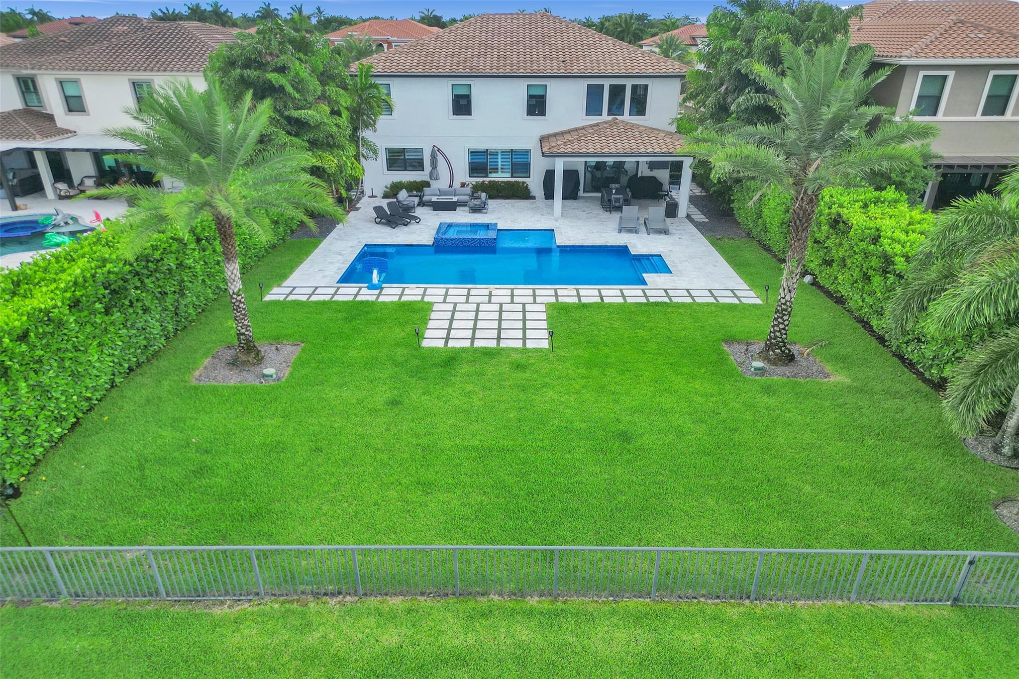Stunning expanded lakefront home located on the most desired street in PGCC. Enter the two-story foyer to be greeted by a formal dining room and expanded great room perfect for entertaining. The open kitchen is a chef's dream with gas appliances, a large island, and a walk-in pantry. Designer finishes throughout include custom millwork, natural stone, and wallpaper. Head up the winding staircase and you'll find 4 bedrooms with en suite baths and designer-built closets. Outside is an expanded lanai overlooking a custom-built heated pool with hot tub. Additional features include a full house generator, a/c garage w/ 220-volt outlet to charge your electric vehicle, expanded driveway, beautiful landscaping, new up-stairs A/C unit, and much more. Come tour this beautiful home today!