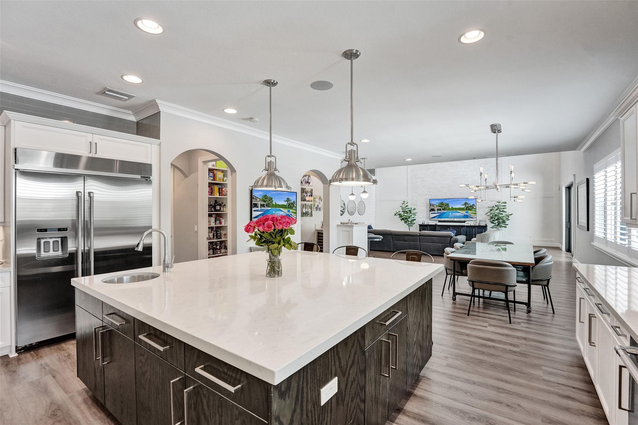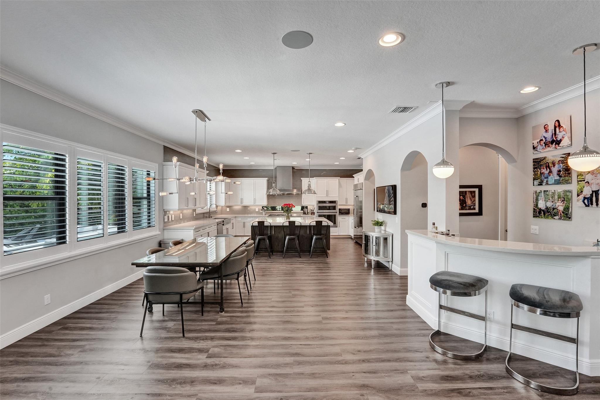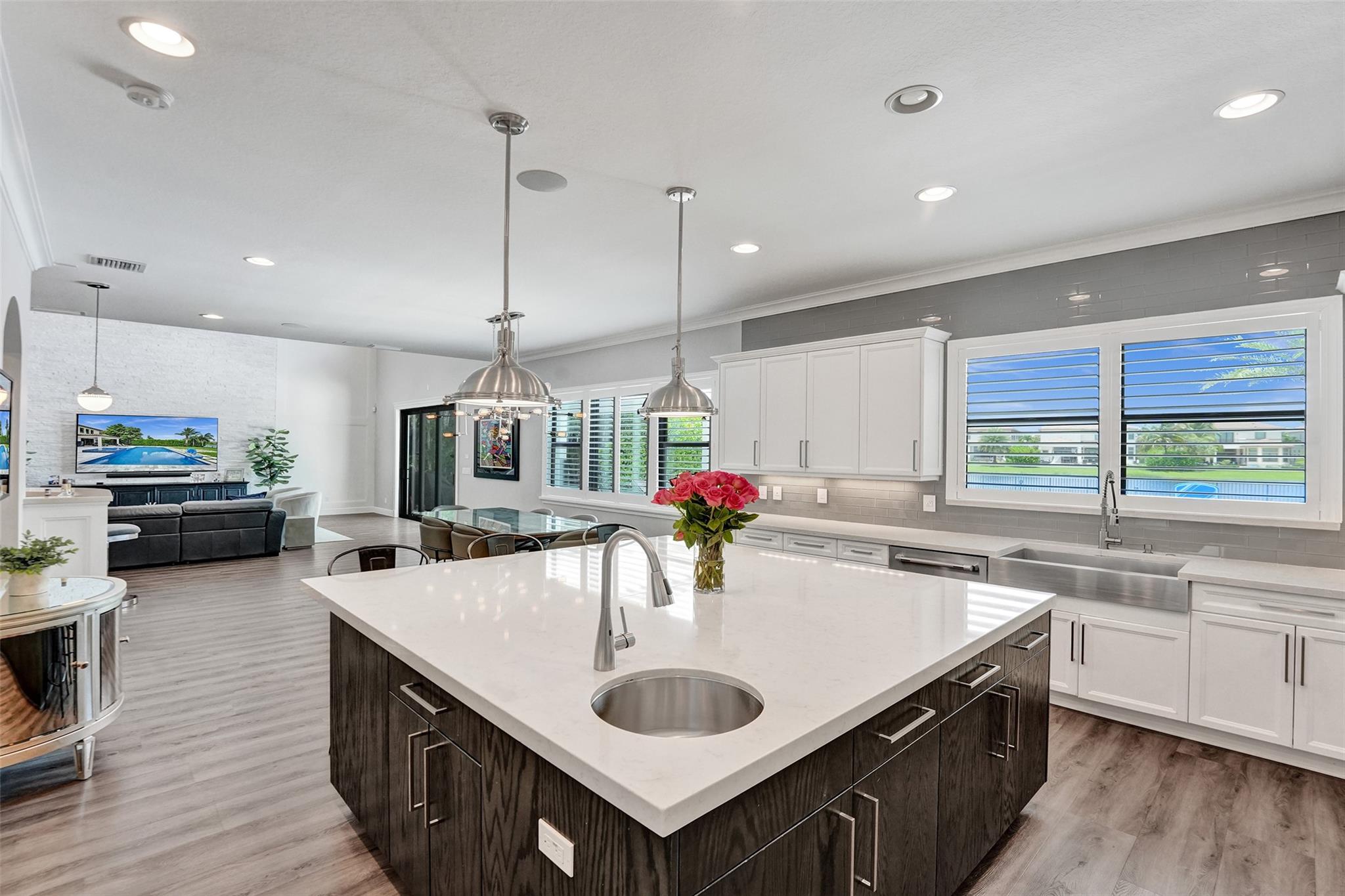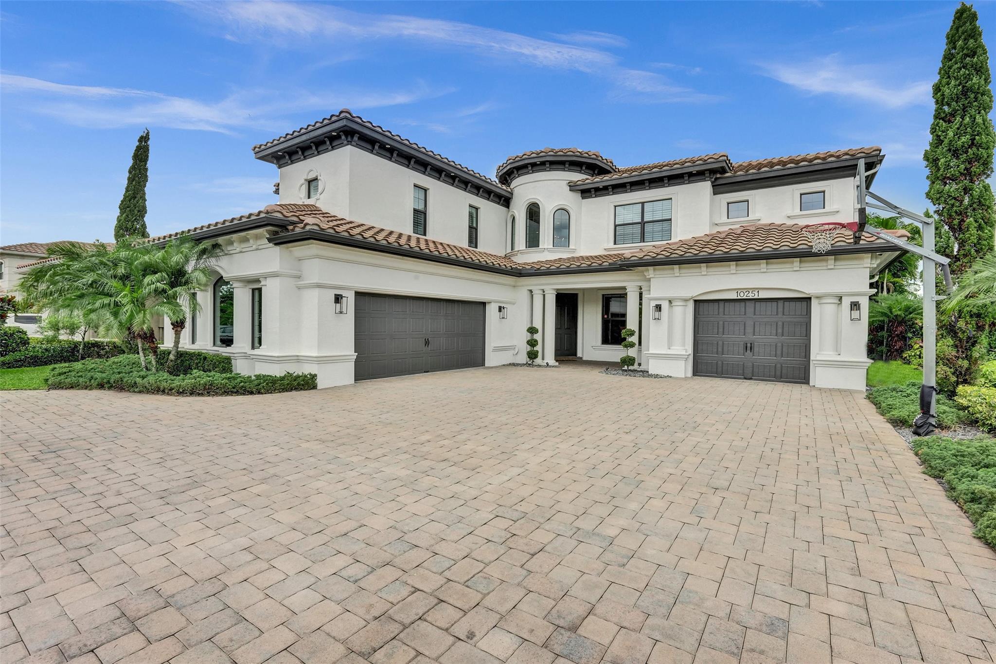 Stunning expanded lakefront home located on the most desired street in PGCC. Enter the two-story foyer to be greeted by a formal dining room and expanded great room perfect for entertaining. The open kitchen is a chef's dream with gas appliances, a large island, and a walk-in pantry. Designer finishes throughout include custom millwork, natural stone, and wallpaper. Head up the winding staircase and you'll find 4 bedrooms with en suite baths and designer-built closets. Outside is an expanded lanai overlooking a custom-built heated pool with hot tub. Additional features include a full house generator, a/c garage w/ 220-volt outlet to charge your electric vehicle, expanded driveway, beautiful landscaping, new up-stairs A/C unit, and much more. Come tour this beautiful home today!