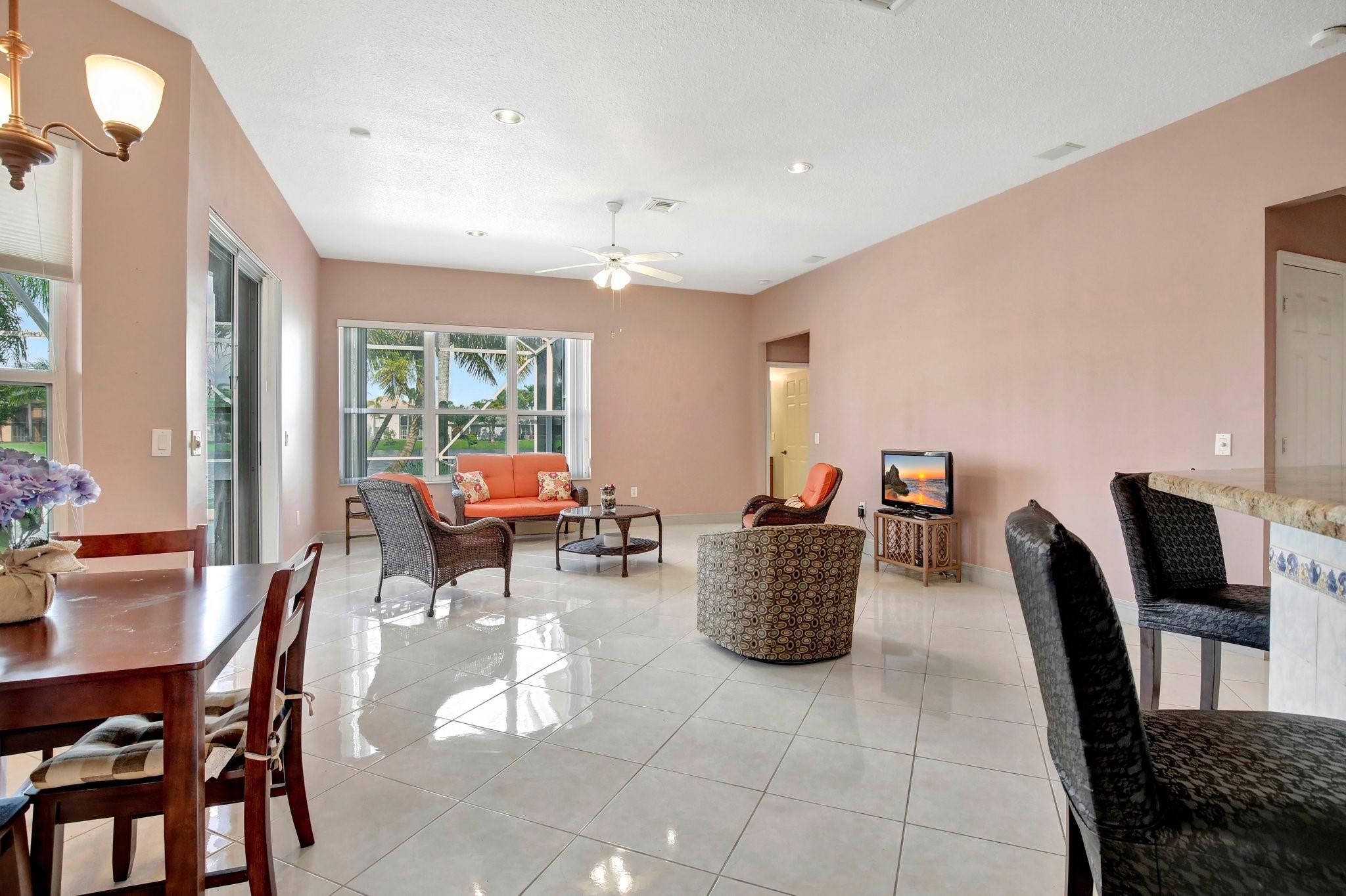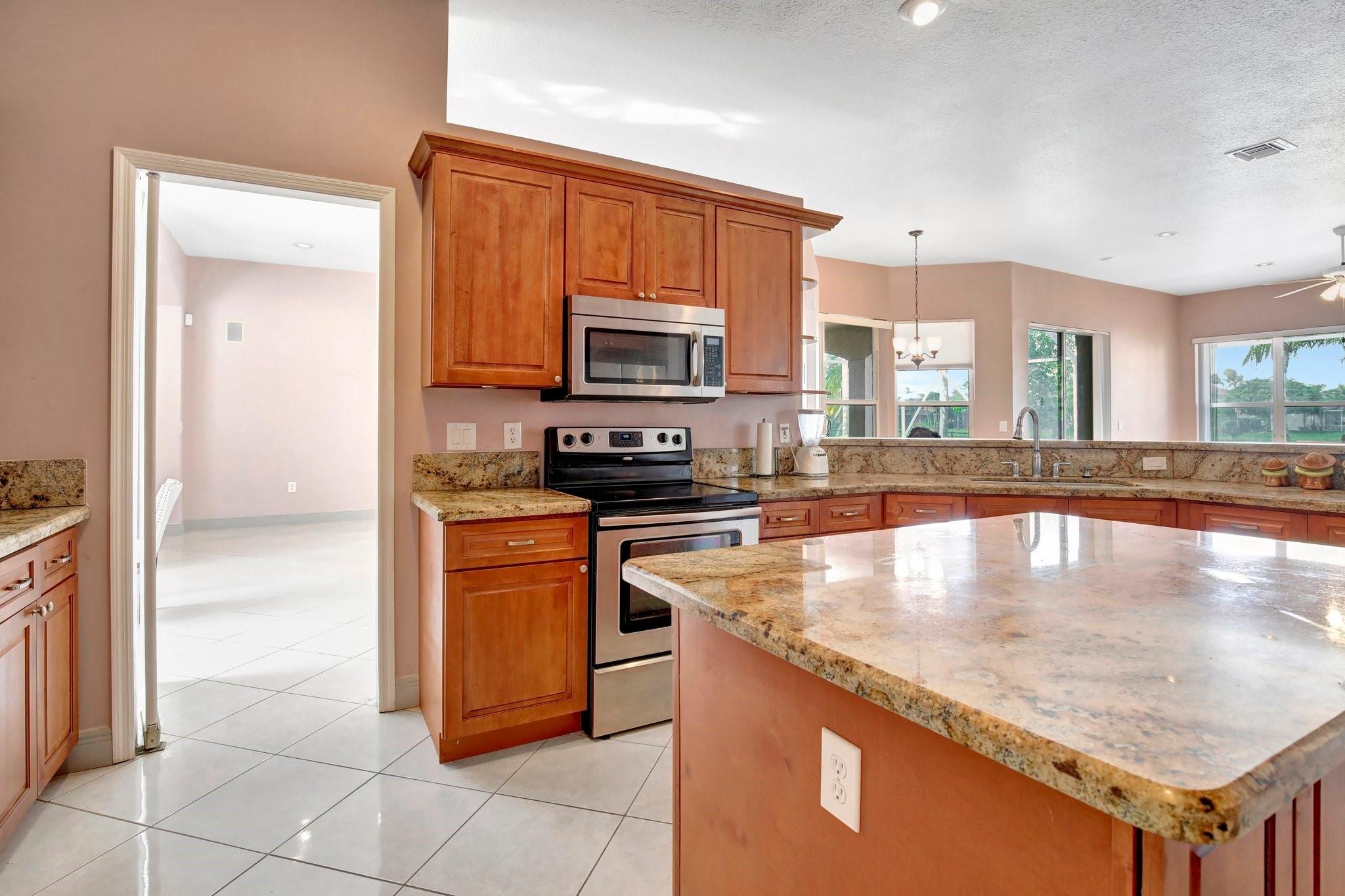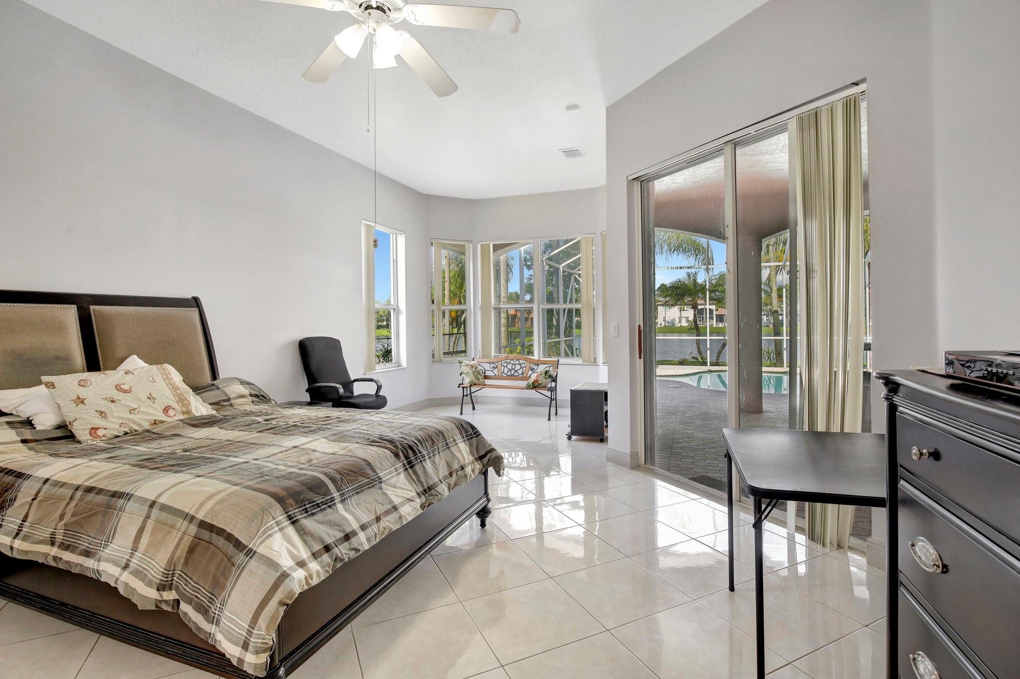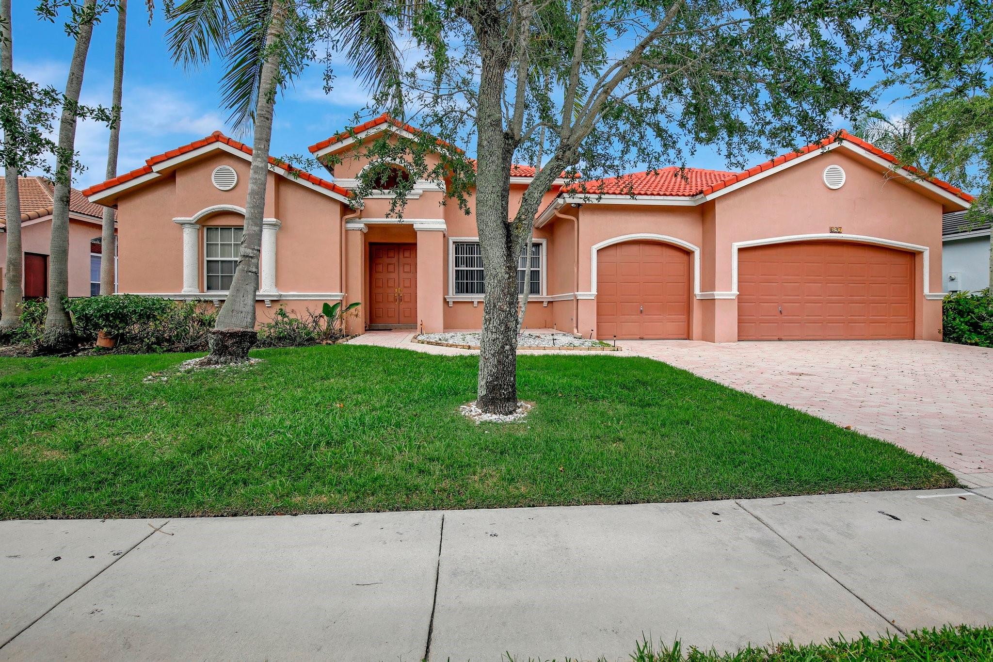 Welcome to this exquisite 4-bedroom, 3-bathroom home with a 3-car garage, nestled in the prestigious Estates of Pembroke Shores, a gated community. This residence features vaulted ceilings and a spacious, sunlit open floor plan with tile flooring throughout. The kitchen is equipped with an island, granite countertops, stainless steel appliances, large cabinets, and a pantry offering ample storage space. The master bedroom includes his and hers closets and offers a picturesque view of the pool and lake. Outside, indulge in privacy and outdoor living on your screened-in. covered terrace, overlooking the pool and the tranquil lake beyond. This home is ready for your personal touch. Conveniently located near major highways, shopping centers, golf courses, schools, and more.