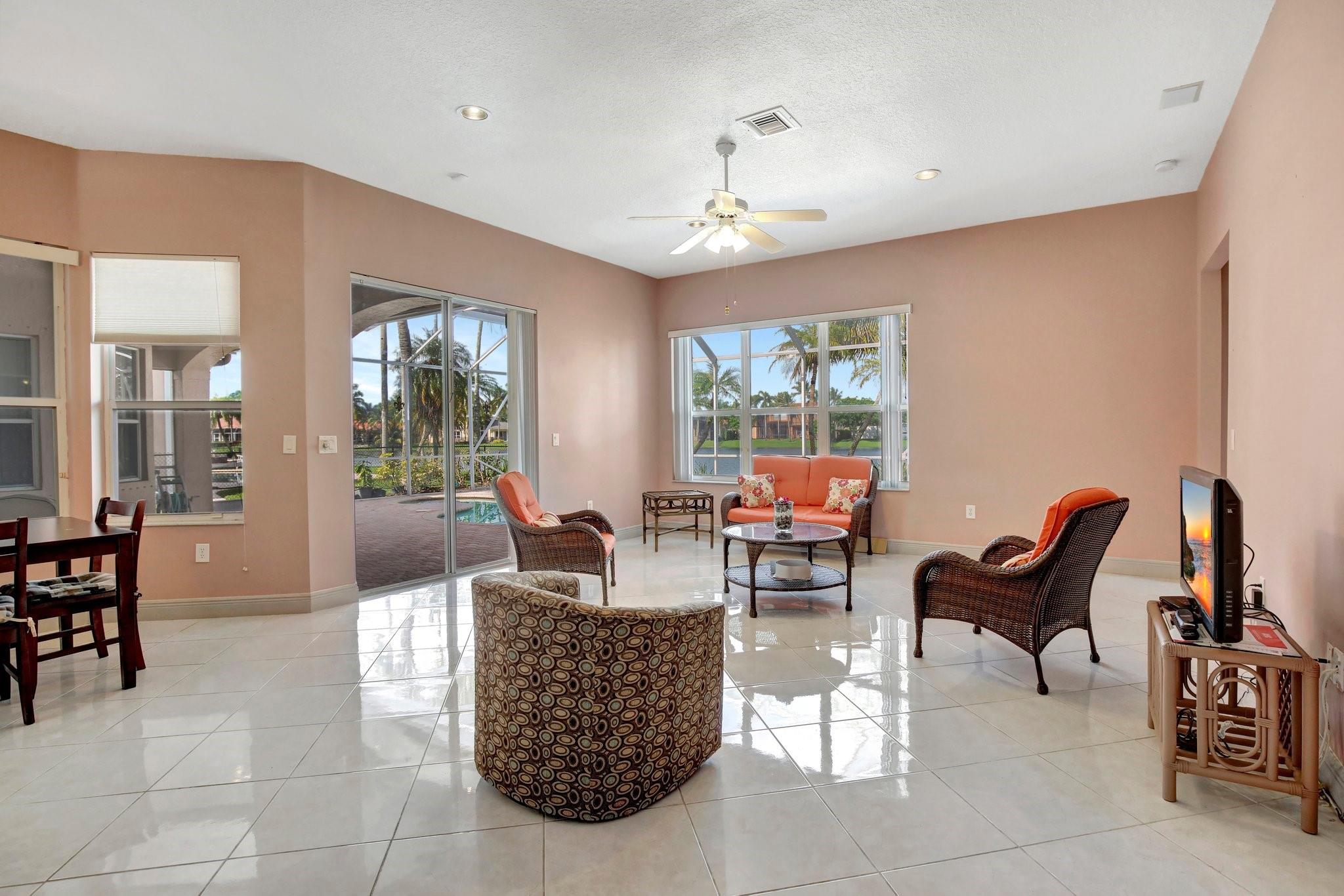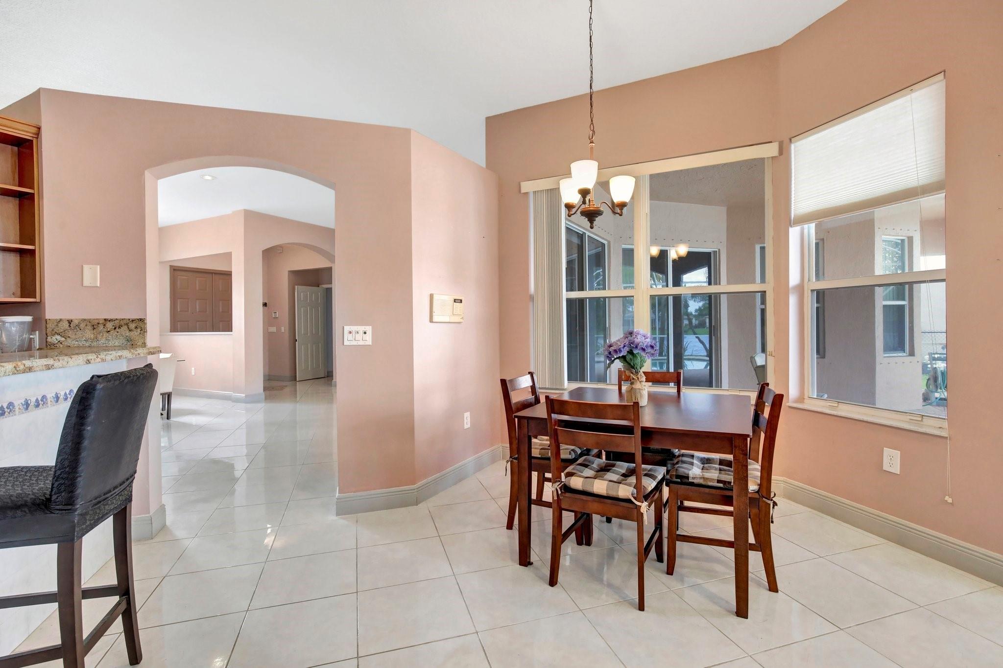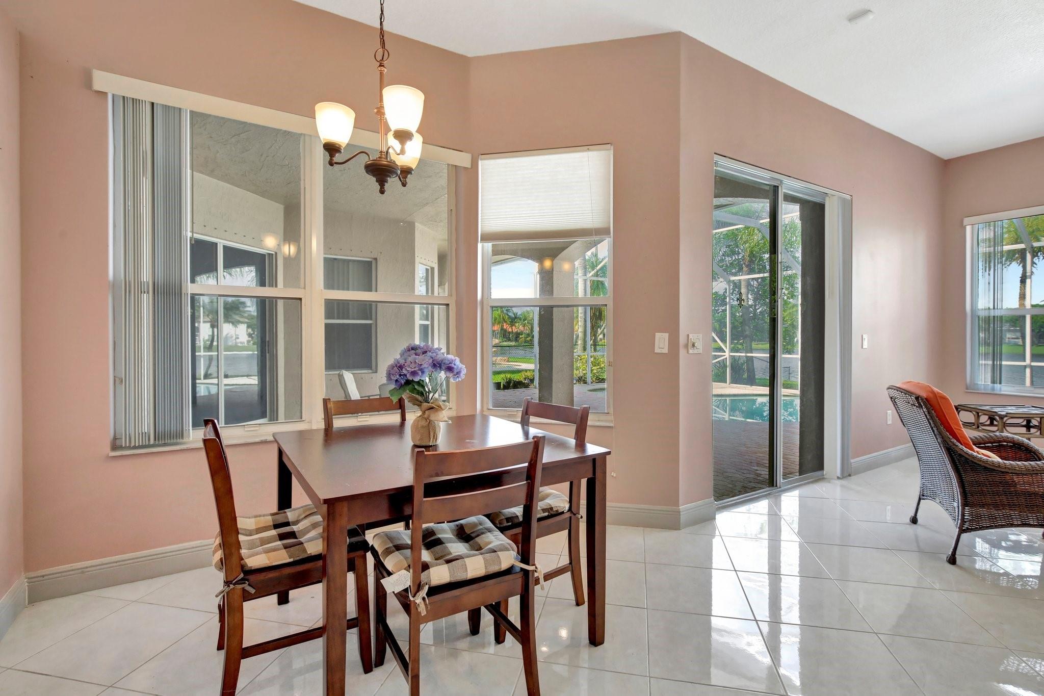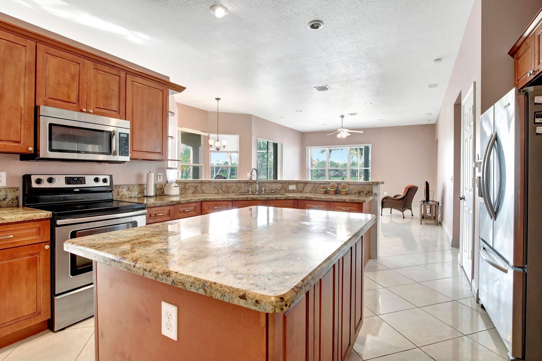 Welcome to this exquisite 4-bedroom, 3-bathroom home with a 3-car garage, nestled in the prestigious Estates of Pembroke Shores, a gated community. This residence features vaulted ceilings and a spacious, sunlit open floor plan with tile flooring throughout. The kitchen is equipped with an island, granite countertops, stainless steel appliances, large cabinets, and a pantry offering ample storage space. The master bedroom includes his and hers closets and offers a picturesque view of the pool and lake. Outside, indulge in privacy and outdoor living on your screened-in. covered terrace, overlooking the pool and the tranquil lake beyond. This home is ready for your personal touch. Conveniently located near major highways, shopping centers, golf courses, schools, and more.