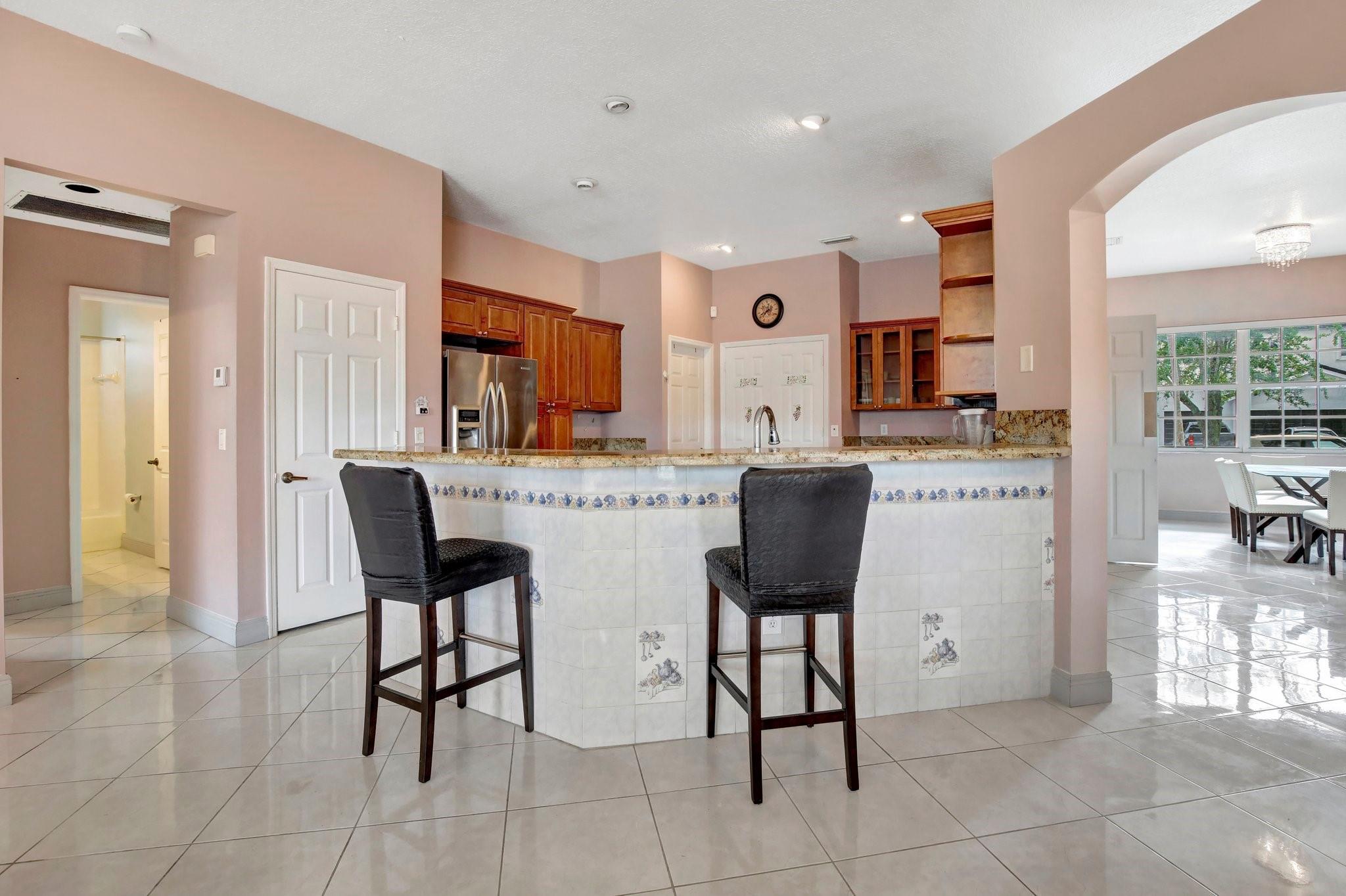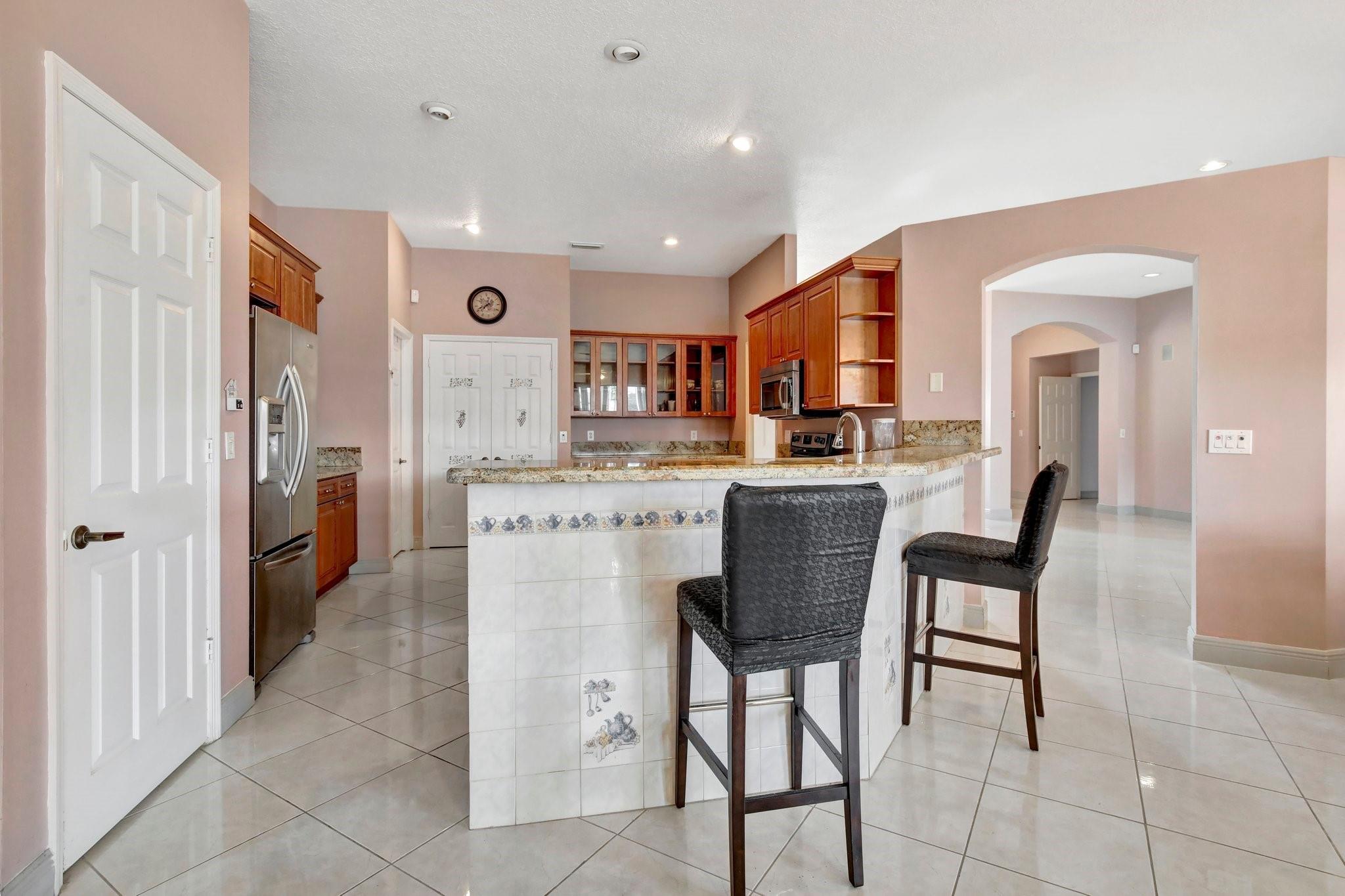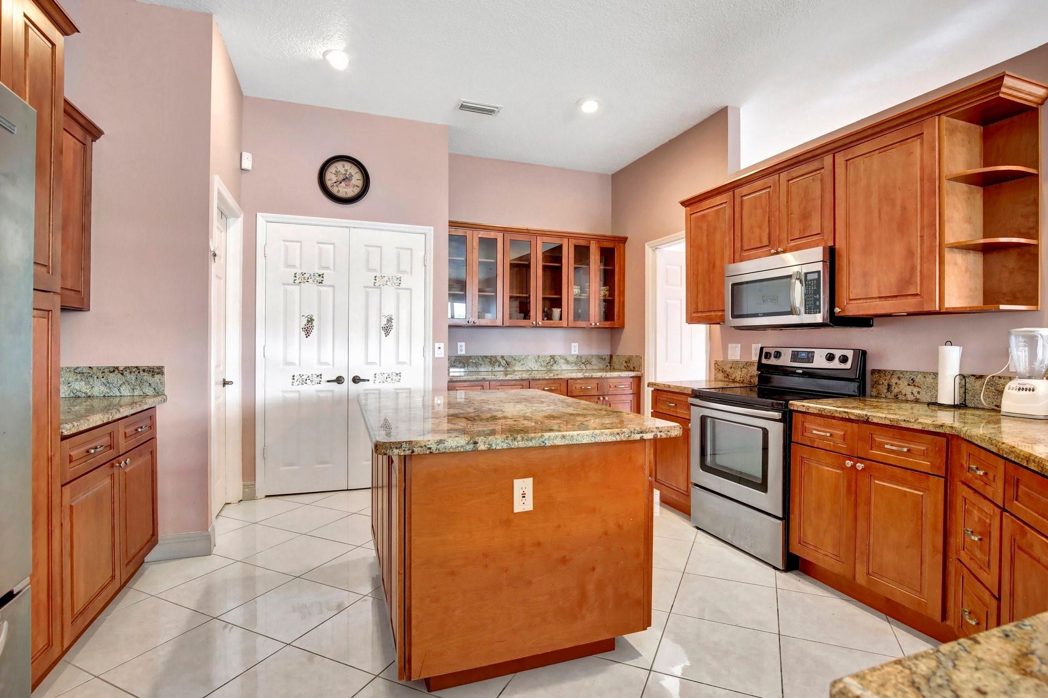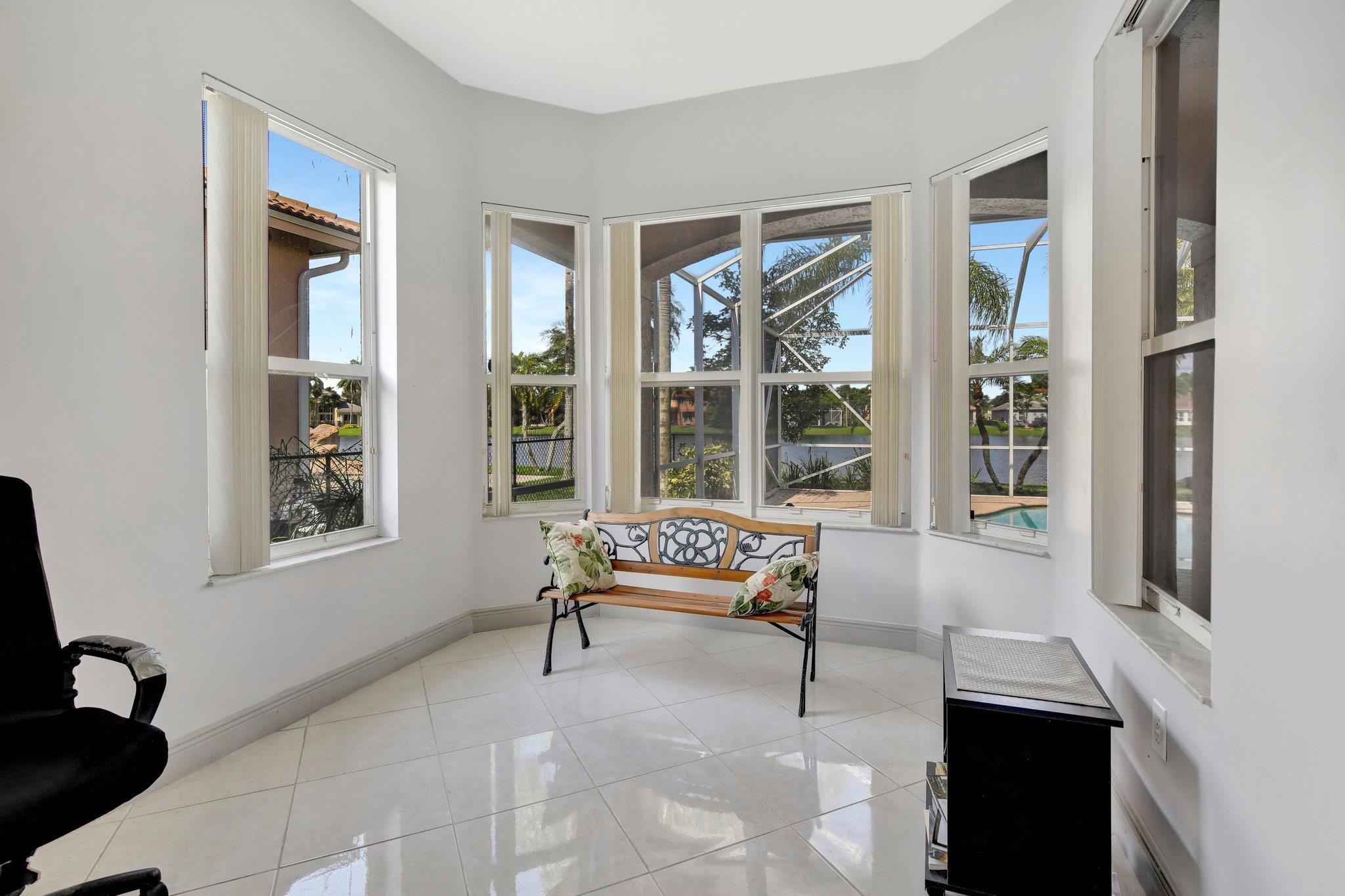 Welcome to this exquisite 4-bedroom, 3-bathroom home with a 3-car garage, nestled in the prestigious Estates of Pembroke Shores, a gated community. This residence features vaulted ceilings and a spacious, sunlit open floor plan with tile flooring throughout. The kitchen is equipped with an island, granite countertops, stainless steel appliances, large cabinets, and a pantry offering ample storage space. The master bedroom includes his and hers closets and offers a picturesque view of the pool and lake. Outside, indulge in privacy and outdoor living on your screened-in. covered terrace, overlooking the pool and the tranquil lake beyond. This home is ready for your personal touch. Conveniently located near major highways, shopping centers, golf courses, schools, and more.