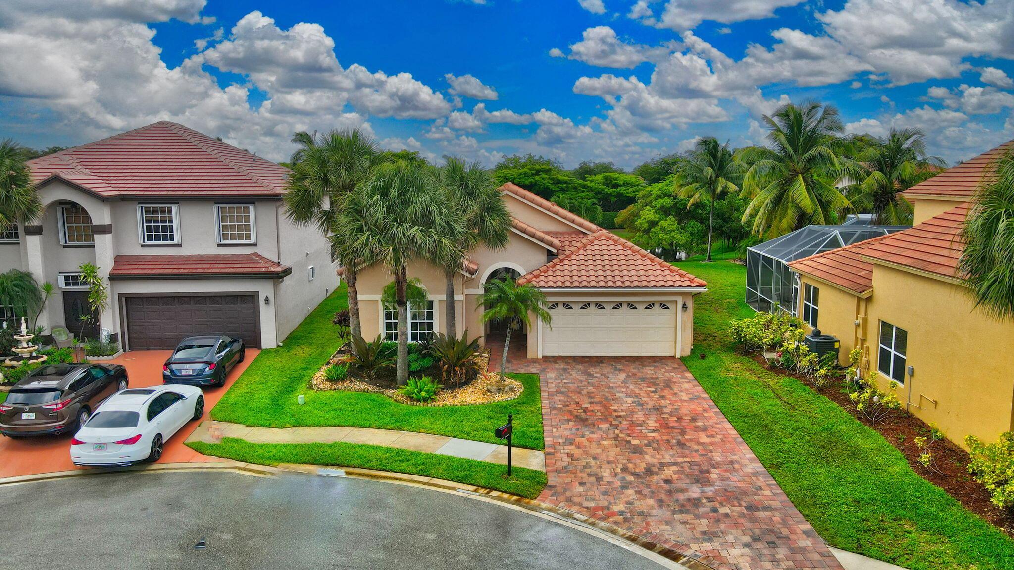 Welcome Home to Sought after and Desirable Boca Winds. A+ Rated Elementary, Middle and High Schools all within Walking Distance. This Gorgeous Home has it All! Low HOA, Barrel Clay Roof-2020, Beautiful Engineered Hardwood Floors, Oversized Bedrooms, Upgraded Bathrooms, Volume Ceilings, A/C-2020, Newer Stainless Appliances, Brick Driveway- 2022, ALL THIS and Room for a Pool and nestled conveniently on a Cul-de-sac!Community offers 2.5 mile Walking Trail, Resort Style Pools, Tennis, Basketball Courts, Playground and State of the Art Clubhouse. Close to Upscale Restaurants, Shopping and Beautiful Parks, Relax on your Spacious Screened Lanai while enjoying your Lake View. This Beautiful Home will not last!
