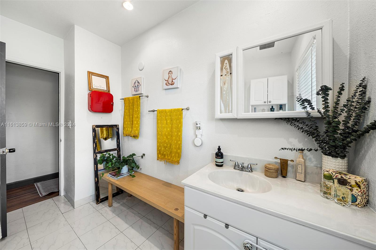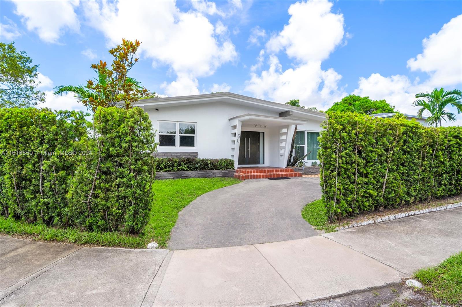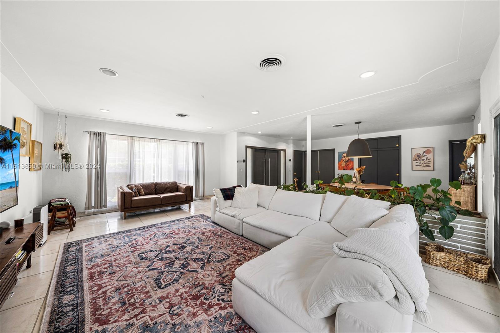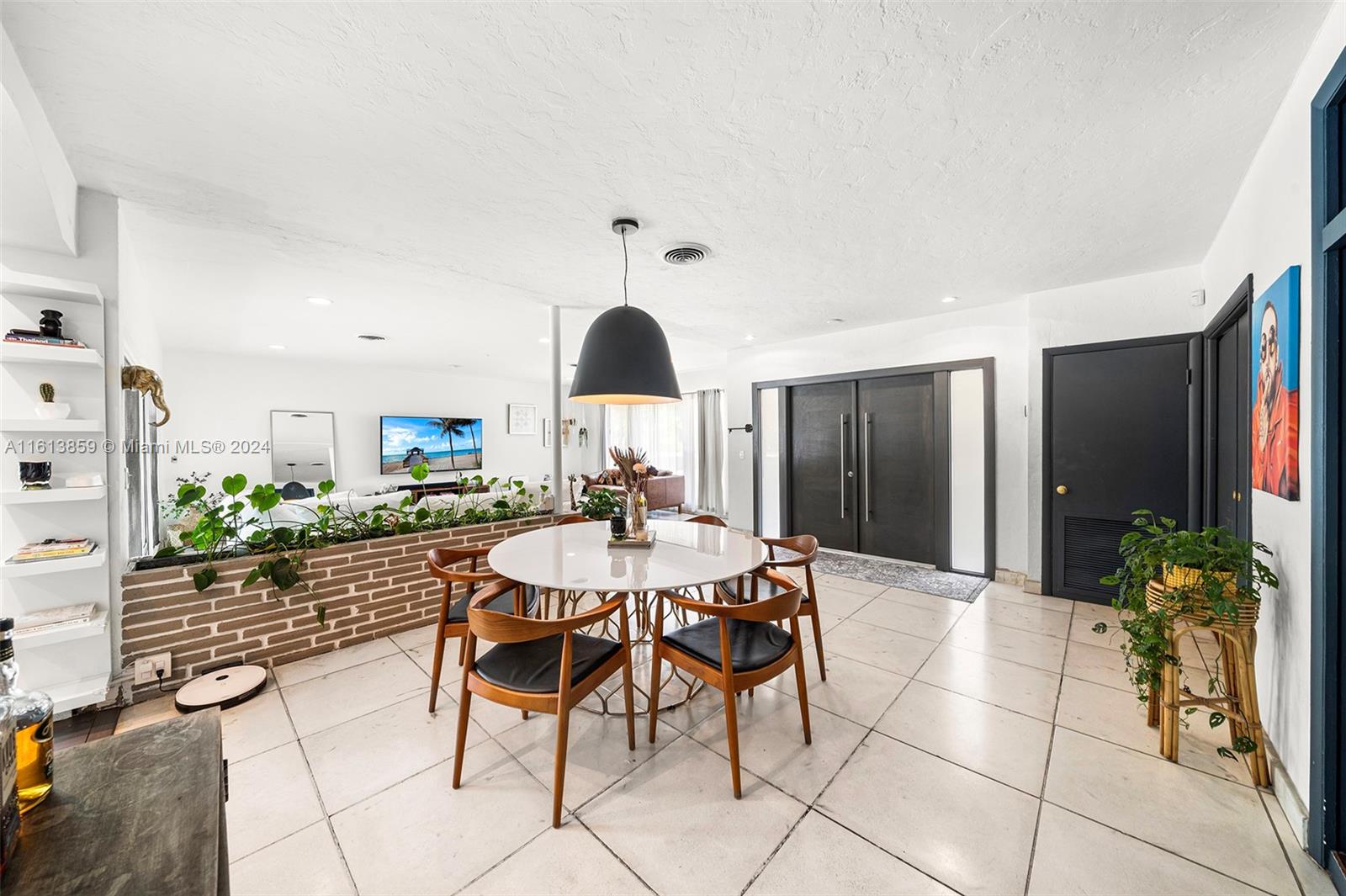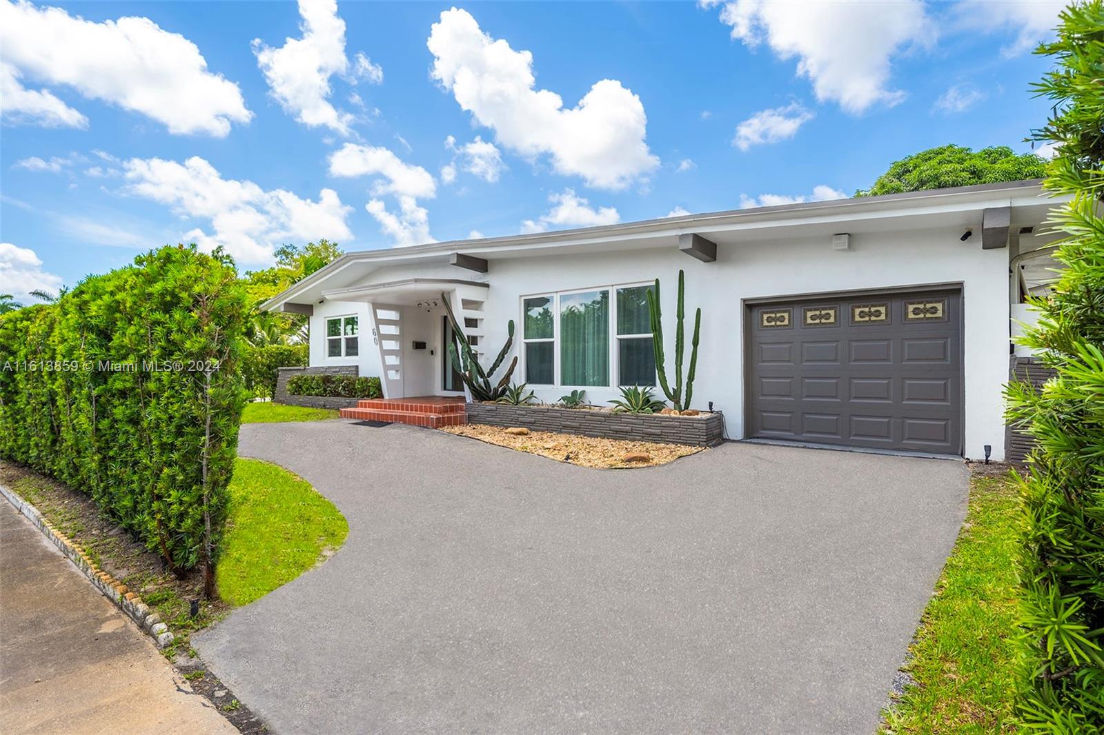 This charming three-bedroom, two-bathroom home is situated in the heart of North Miami. Its spacious layout offers inviting views of the pool and tropical landscape right from the front door. The living areas feature a blend of wood and tile flooring. The open kitchen is equipped with stainless steel appliances and a wine fridge, perfect for entertaining. This home is conveniently located near highways, public parks, Bal Harbour Shops, schools, Aventura Mall, and the Brightline station.