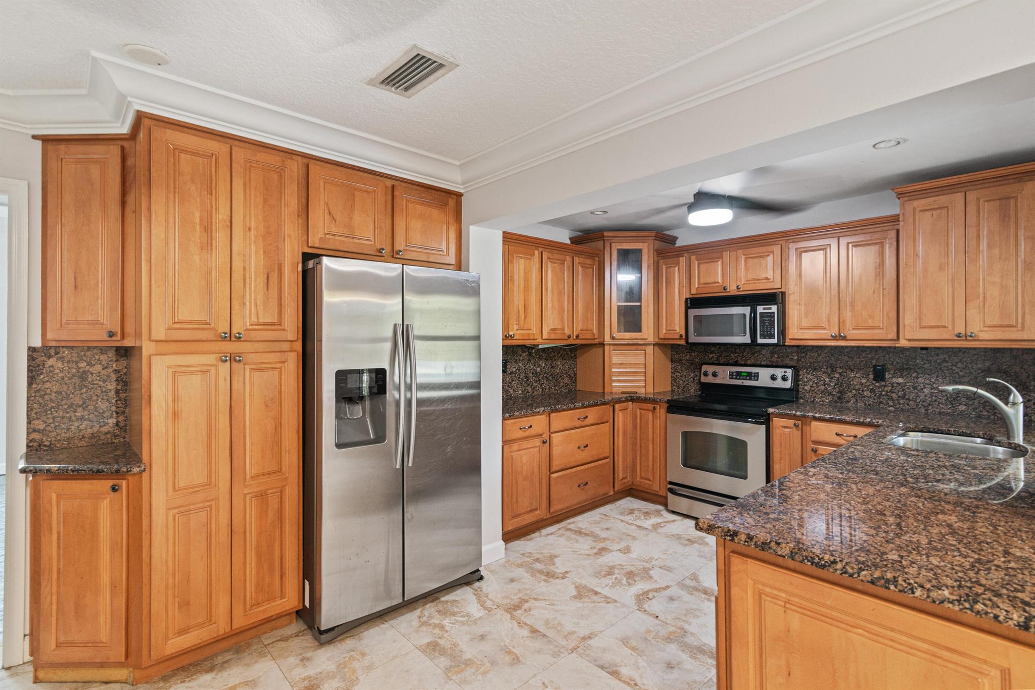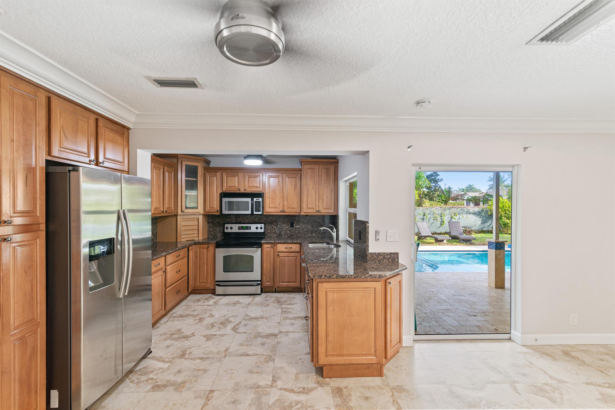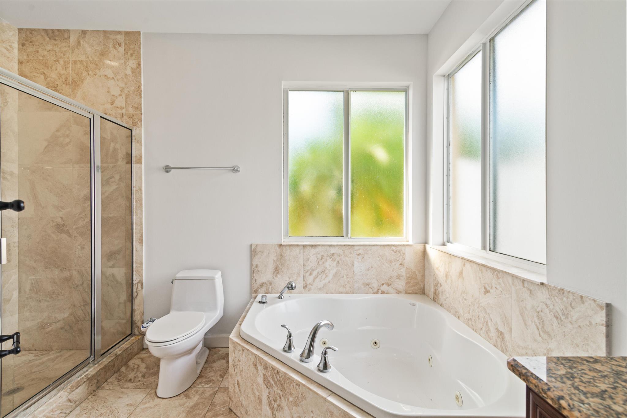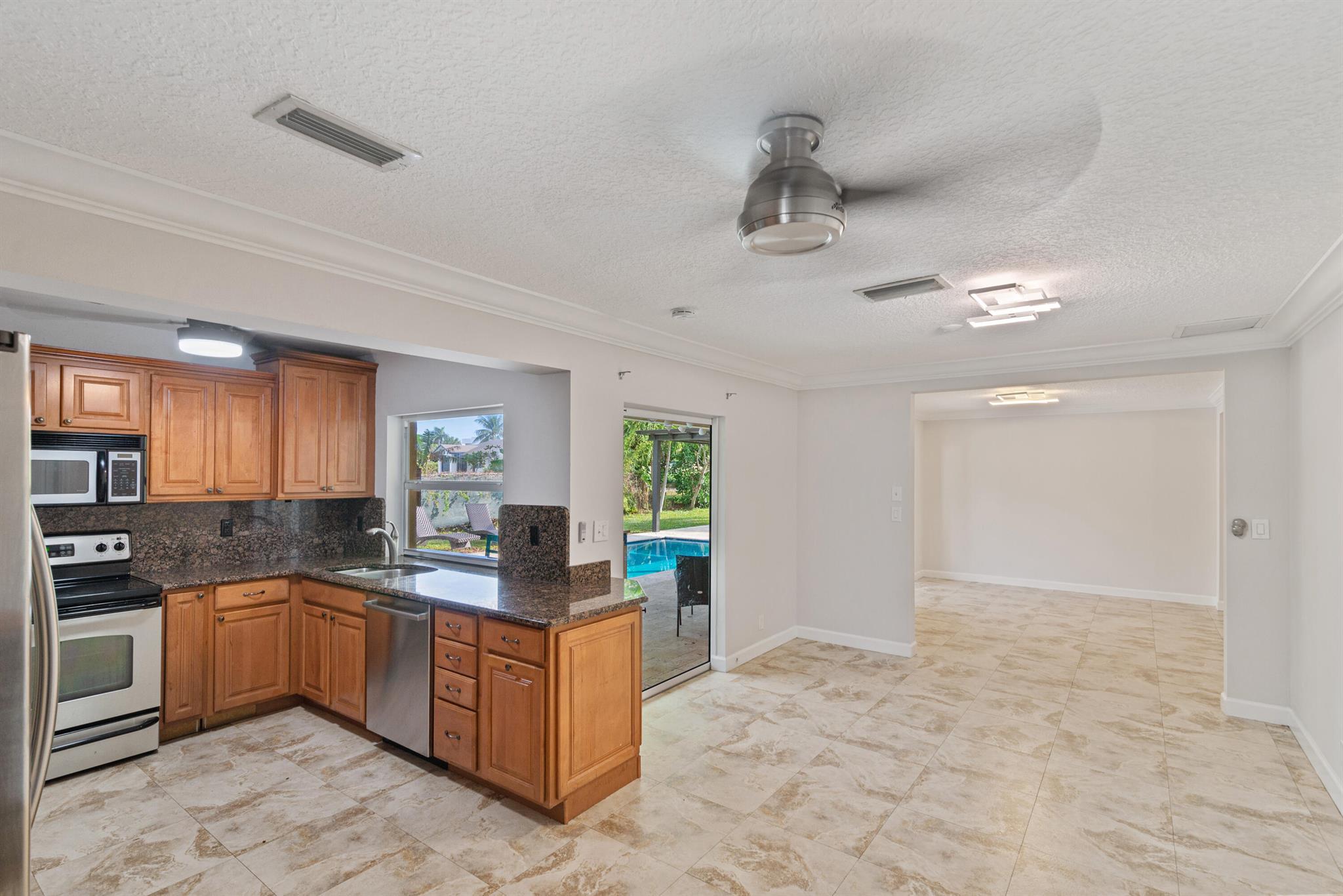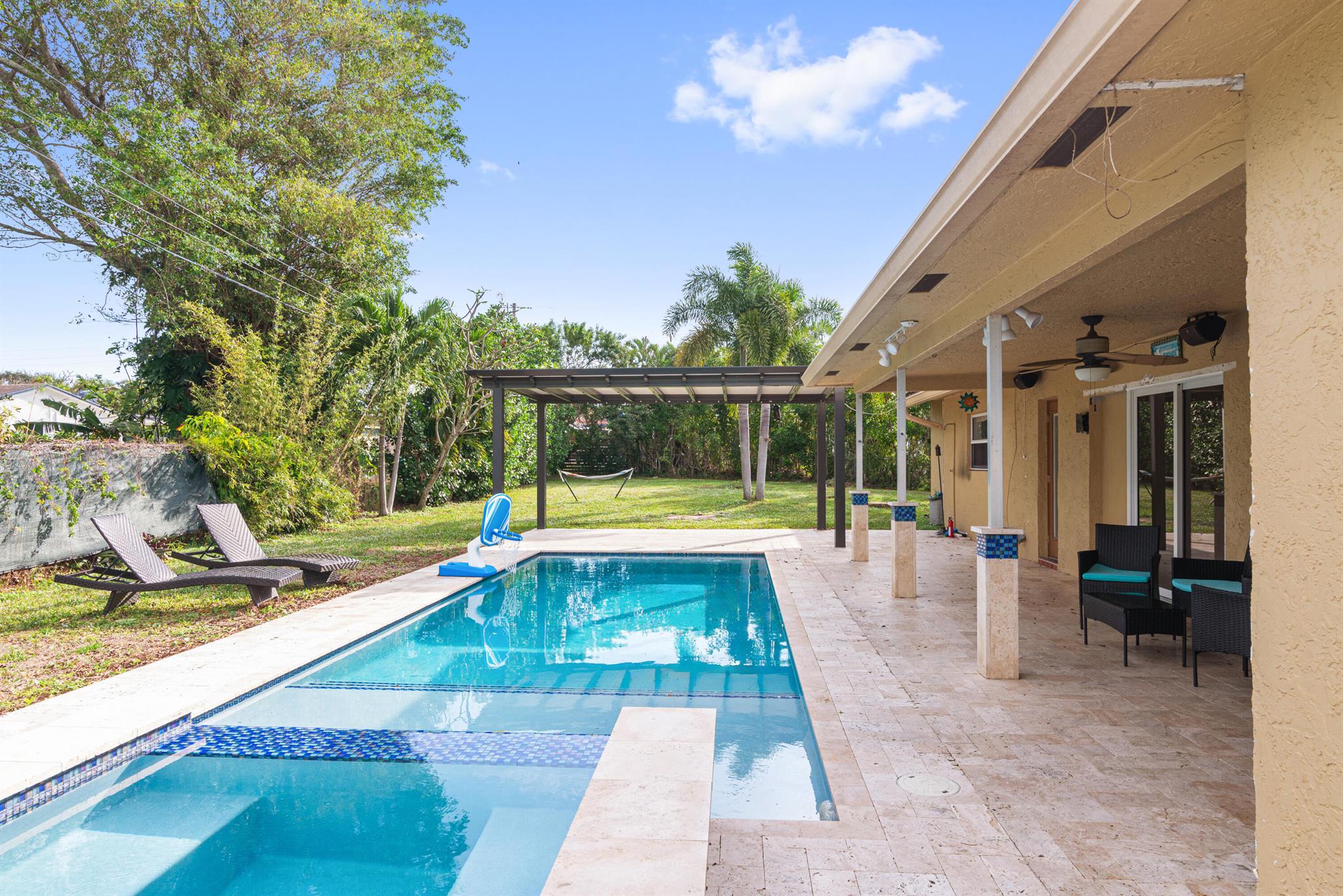 Situated in East Boca Raton, this 5-bedroom residence effortlessly marries sophistication with comfort. The remodeled kitchen features newer appliances and a chic backsplash. The master suite provides a spa-like retreat, complete with a modern vanity and jet-soaking tub in the renovated bathroom. Wood flooring adds a touch of warmth to the bedrooms. Step into the backyard oasis, an entertainer's delight boasting an oversized screened-in patio, a glistening private pool, and versatile covered and uncovered areas. The backyard's focal point--a 2021-built pool, spa, and pergola--takes outdoor living to new heights. This home seamlessly integrates style, practicality, and modern luxury, catering to every desire and need.