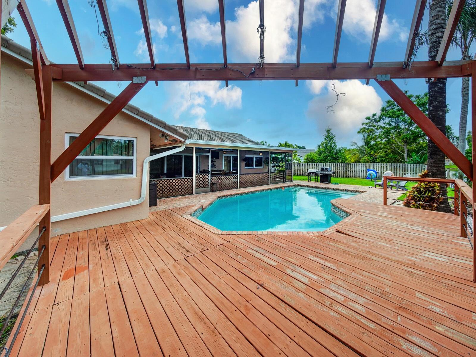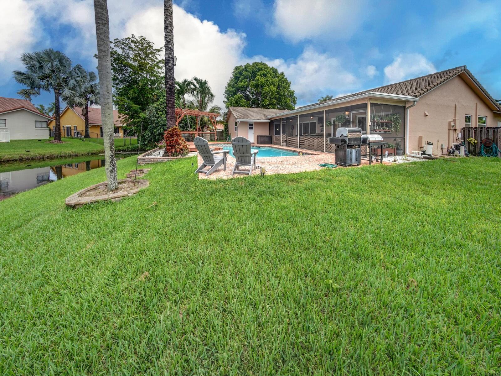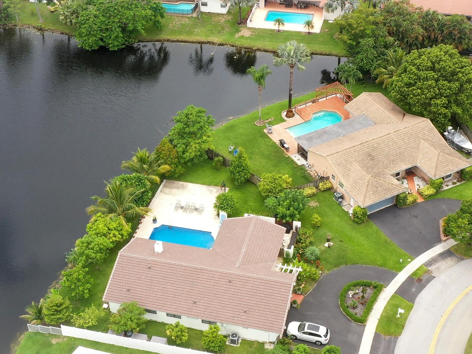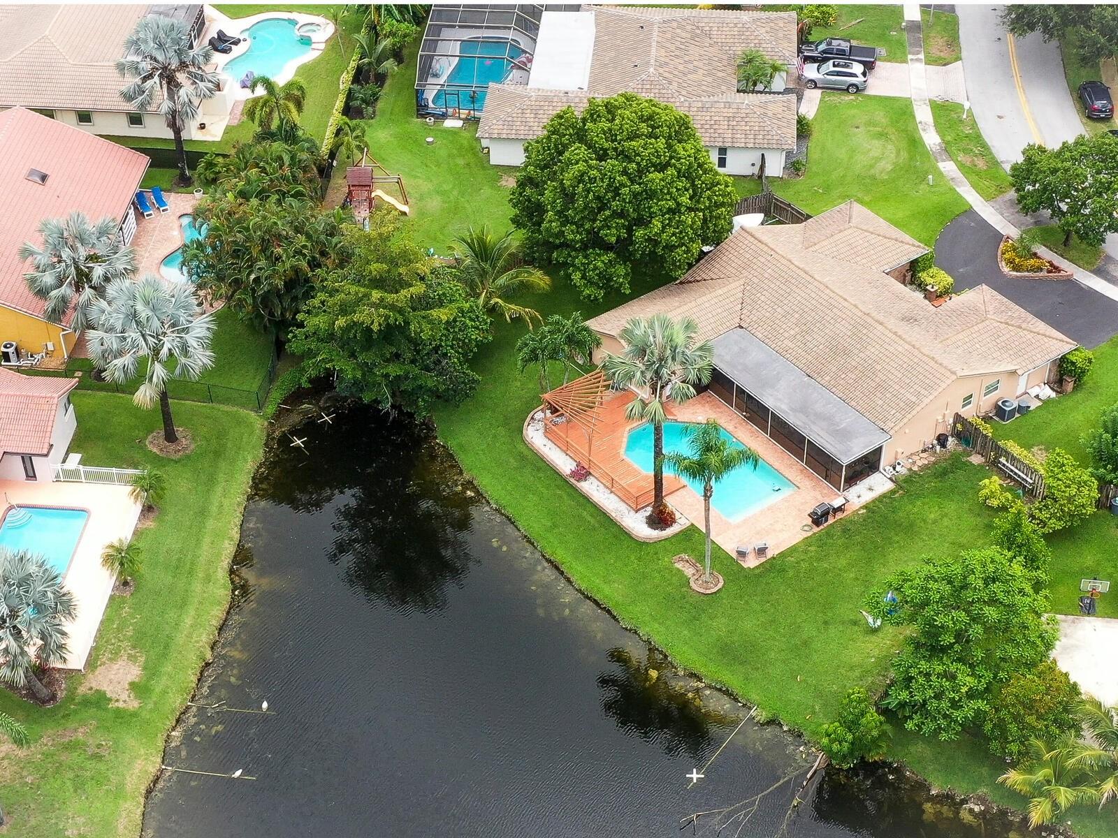 Beautiful 4 Bedroom, 2 Bath home in Plantation nestled in the Heart of Jacaranda Lakes featuring a waterfront 140', 1/4 acre lot with pool and circular driveway. Enjoy the lake view complimented by the beautiful sunsets... perfect for entertainig or unwinding after a long day! *Total new roof-2019 * New Fence-2017 *Most windows & doors Hurricane Impact 2020, *Beautiful new tile and textured ceilings in all Living Areas *Kitchen updated -2020. *Three guest bedroooms new laminate flooring 2022 * Master Bath beautifully remodeled to include tankless water heater-2024. *Brick patio surrounds the pool with wood deck and pergola. Screened patio with bar and travertine floor. Minutes from Sawgrass Mall, Shopping Centers and Highways. Home sold "As Is' w/Right to Inspect. (Exclude L/R drapes)