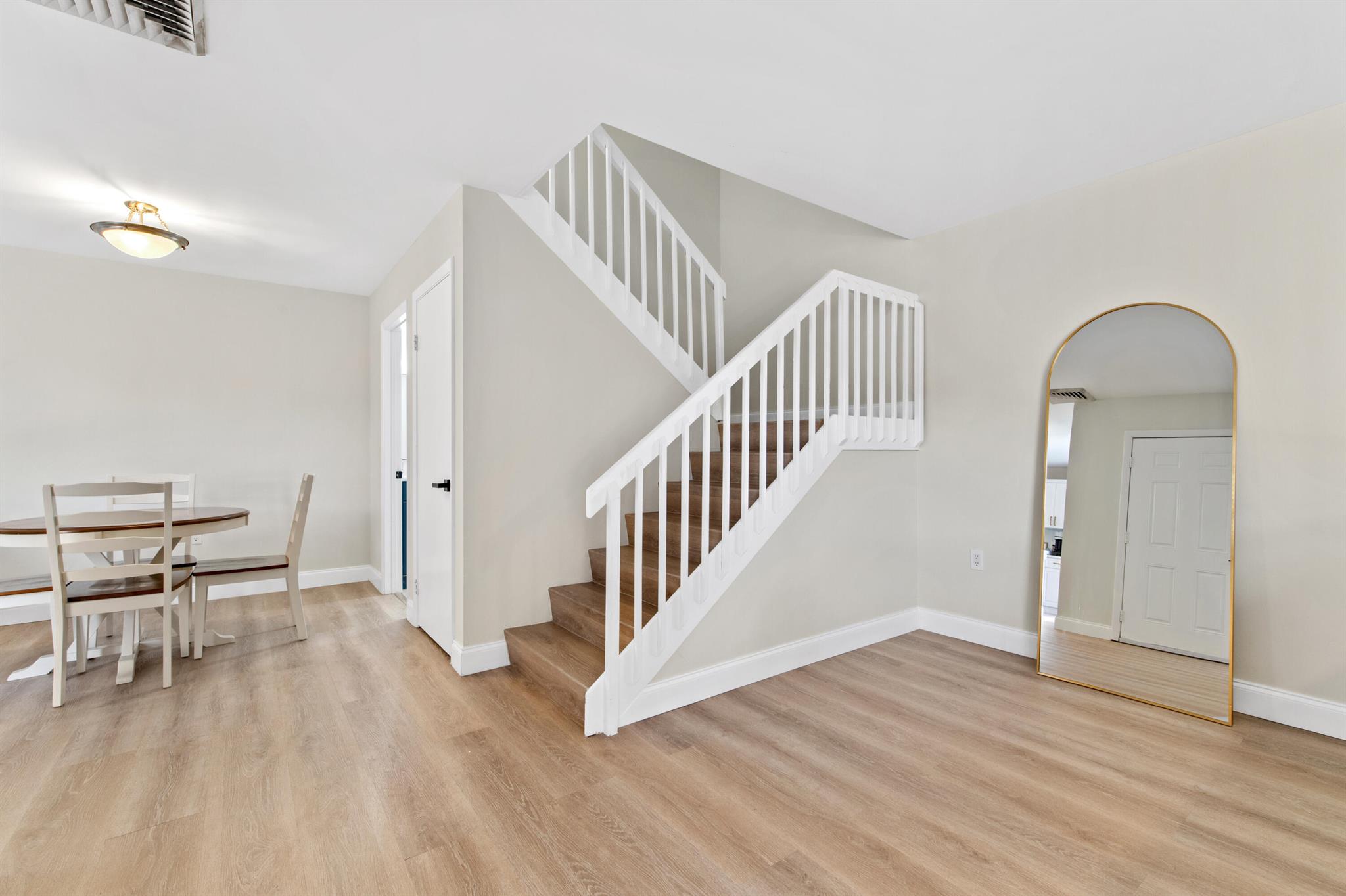 Step into this meticulously maintained, renovated to the nine's, two-story townhouse! Inside, the home boasts a sleek kitchen adorned with stainless steel appliances, wood cabinetry, and granite countertops, creating a perfect blend of style and functionality. The entire residence has been treated to new vinyl plank floors and fresh paint, and quartz countertops, showcasing a contemporary aesthetic throughout. Two and a half revamped bathrooms feature the same high-quality finishes and are complemented by stylish light fixtures.The attention to detail in this full renovation is evident, reflecting the work of a perfectionist who prioritizes quality craftsmanship.