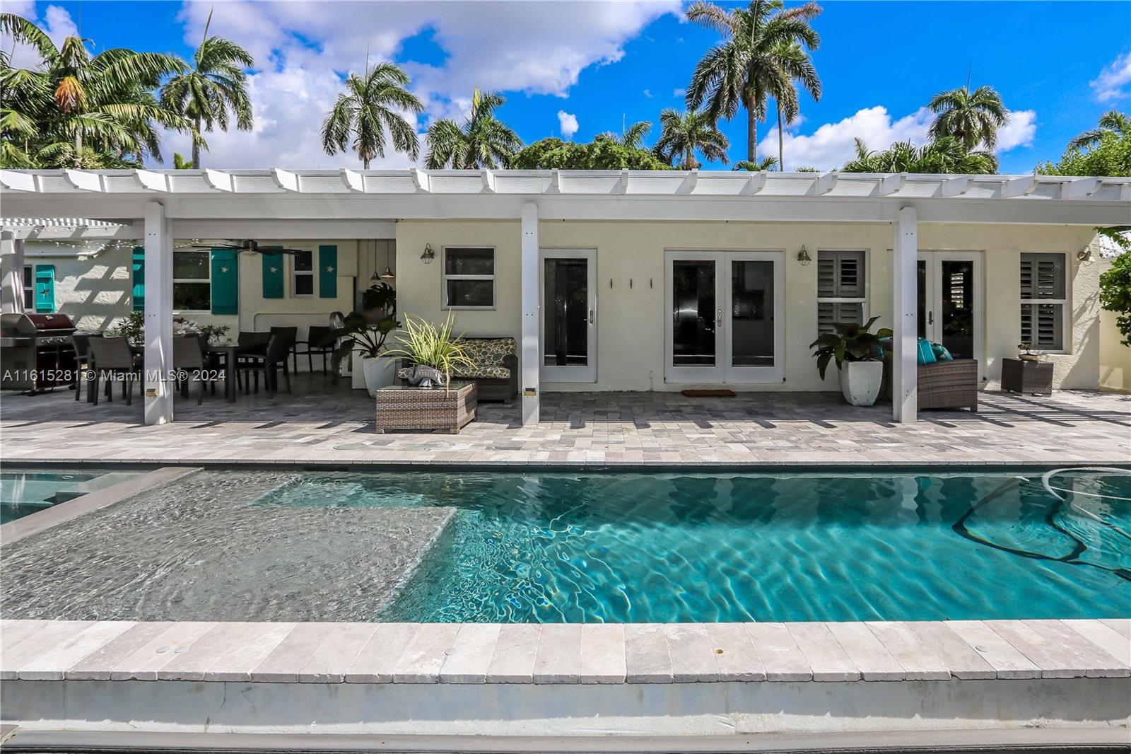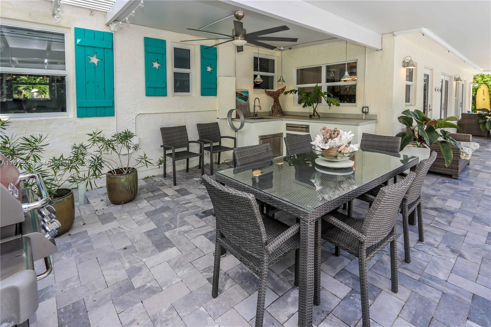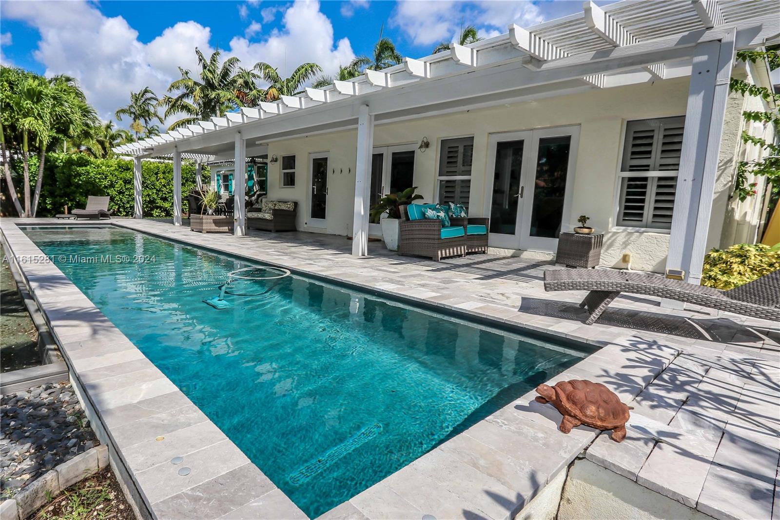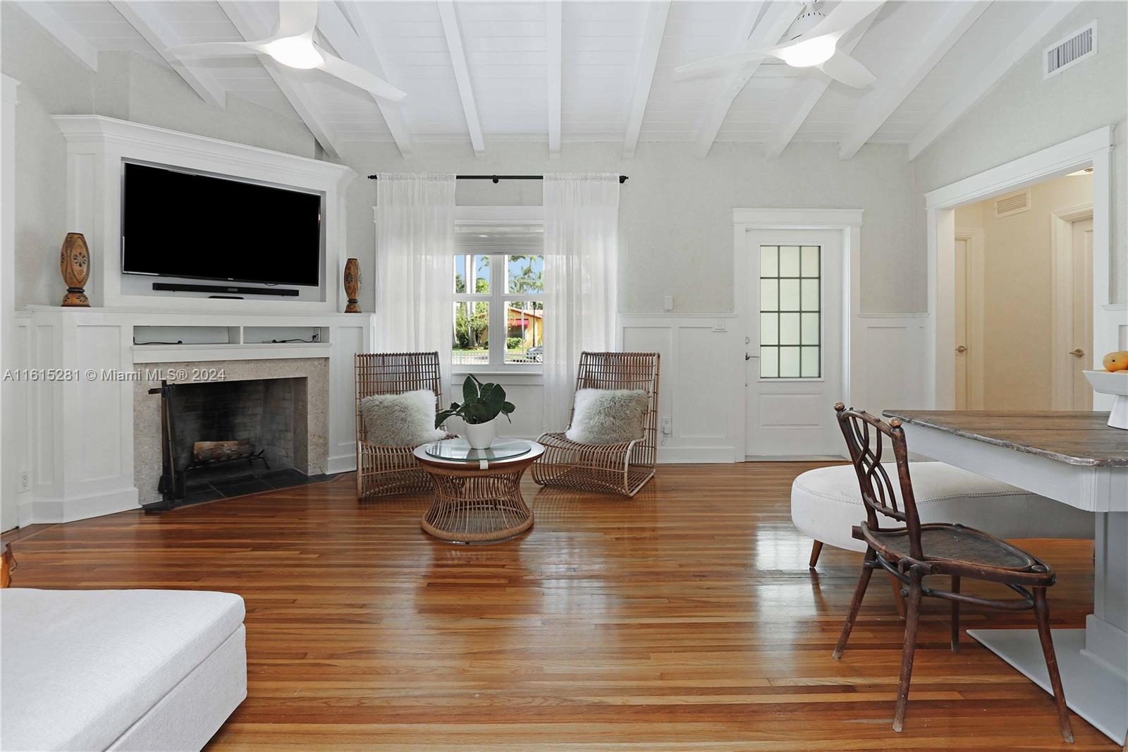Welcome to Sunshine Cottage in Hollywood Lakes!One of the most exclusive locations in Hollywood Lakes with wide streets, royal palms, and antique lighting.This home has an open-concept kitchen, lots of cabinet space, a big cooking Island with a farmer's sink, breakfast area, stainless steel appliances, a gas stove, a custom-made eating area, and a beautiful view of the pool through double doors.Vaulted ceilings, exposed wood beams, and fireplace. The primary bedroom features an open space together with a bath featuring a double sink, lots of storage cabinets, and a spacious shower with a frameless glass door. Impact windows and doors throughout! Beautiful saltwater pool, Spa, and outside shower. Cover Patio Features dining and seating area w/ outside kitchen to enjoy the outdoors living!