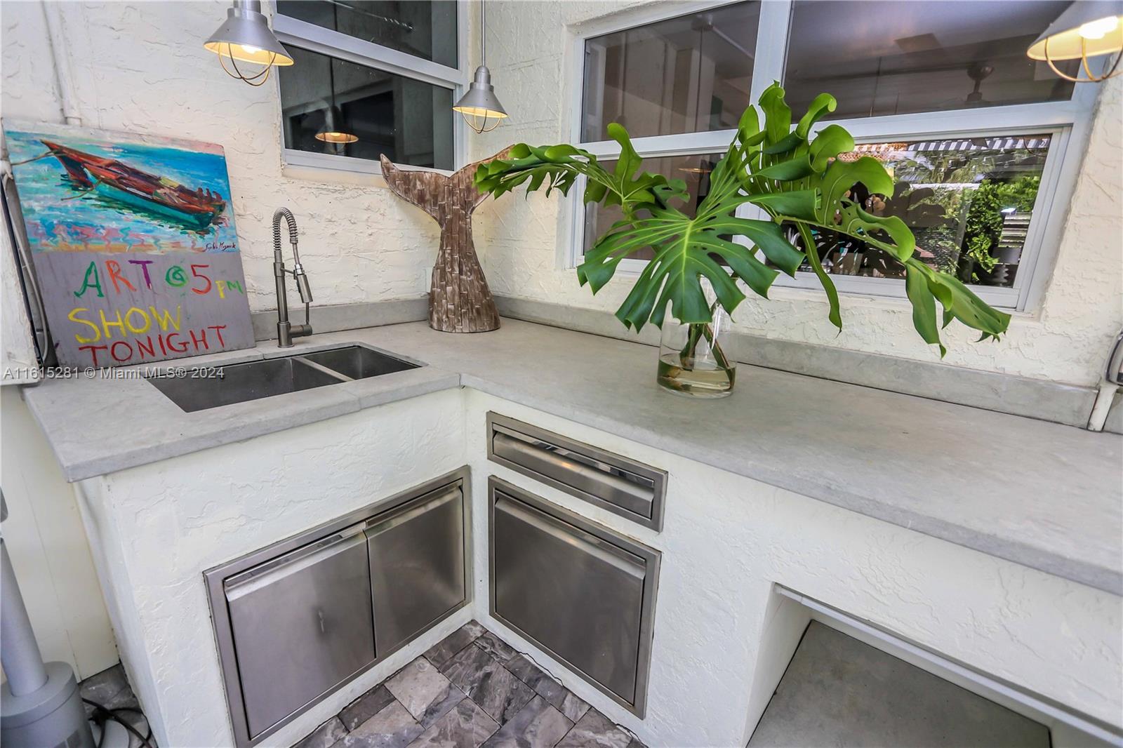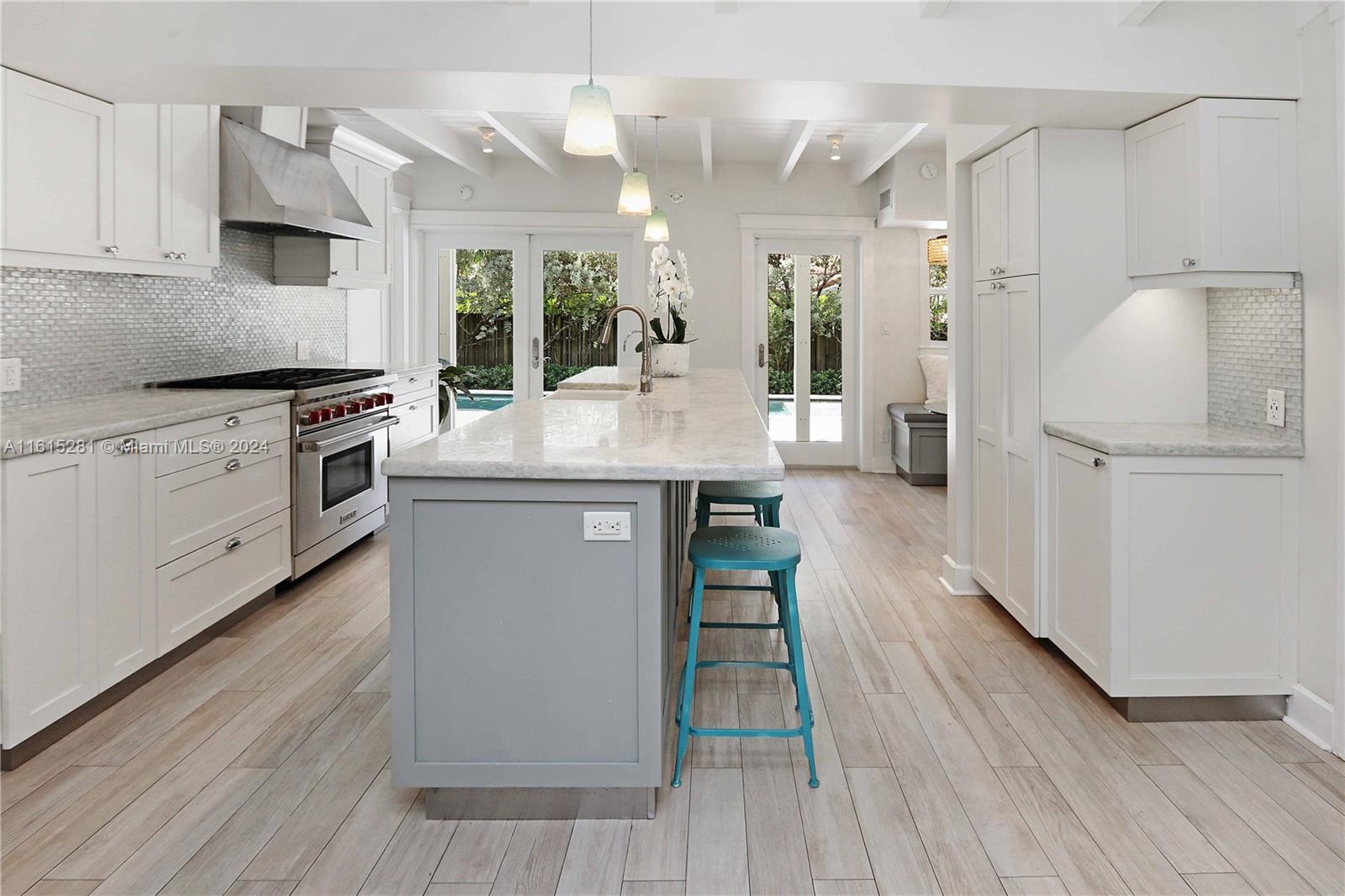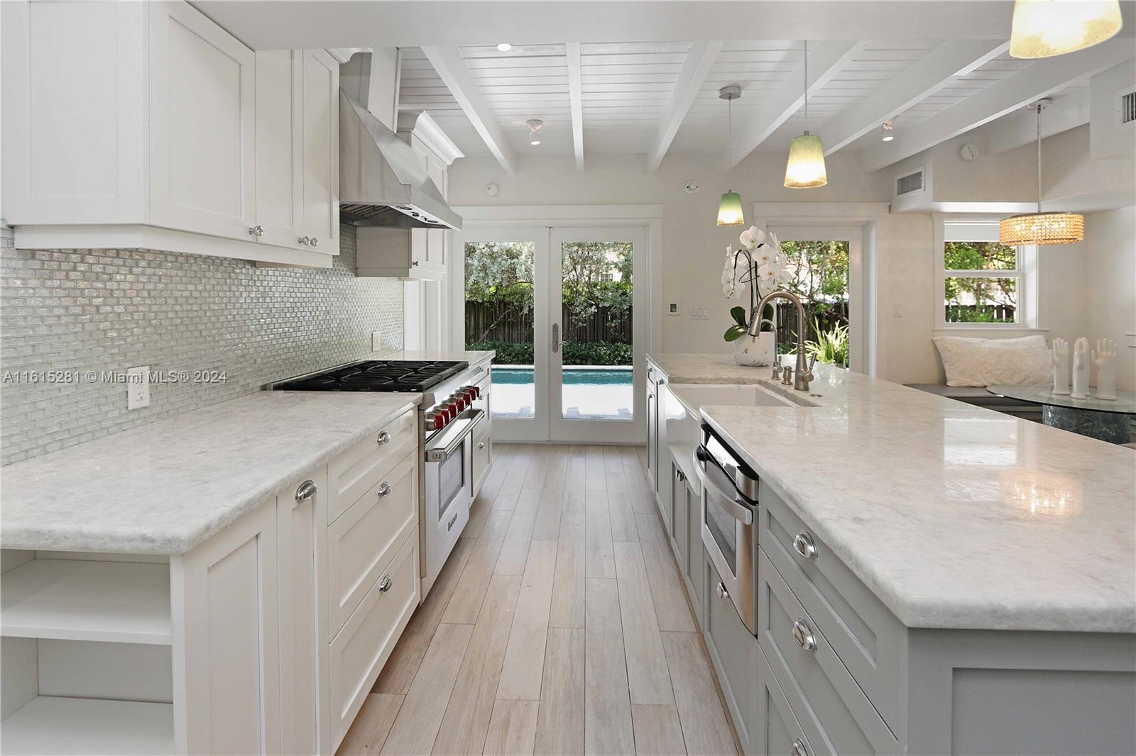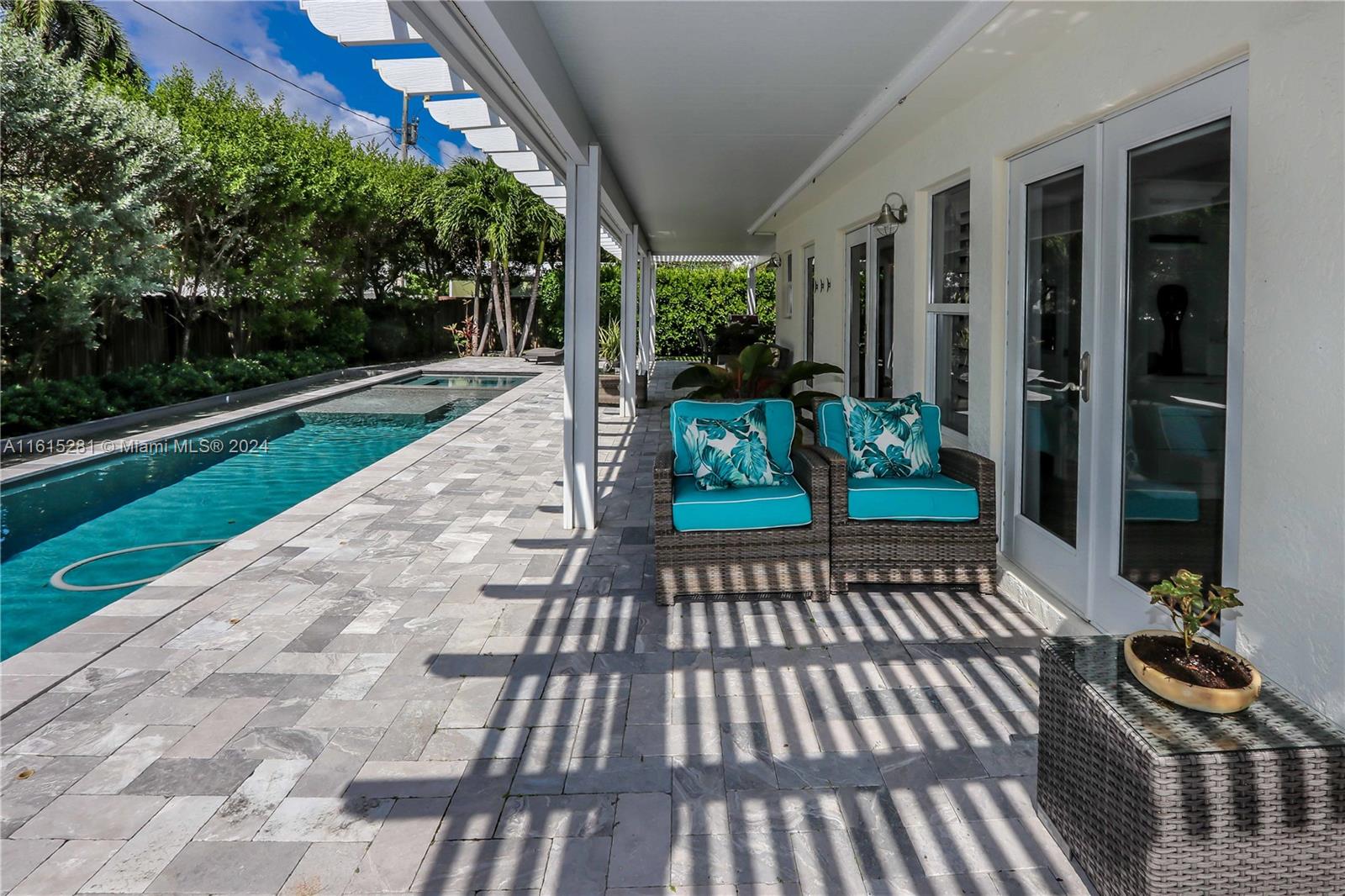 Welcome to Sunshine Cottage in Hollywood Lakes!One of the most exclusive locations in Hollywood Lakes with wide streets, royal palms, and antique lighting.This home has an open-concept kitchen, lots of cabinet space, a big cooking Island with a farmer's sink, breakfast area, stainless steel appliances, a gas stove, a custom-made eating area, and a beautiful view of the pool through double doors.Vaulted ceilings, exposed wood beams, and fireplace. The primary bedroom features an open space together with a bath featuring a double sink, lots of storage cabinets, and a spacious shower with a frameless glass door. Impact windows and doors throughout! Beautiful saltwater pool, Spa, and outside shower. Cover Patio Features dining and seating area w/ outside kitchen to enjoy the outdoors living!