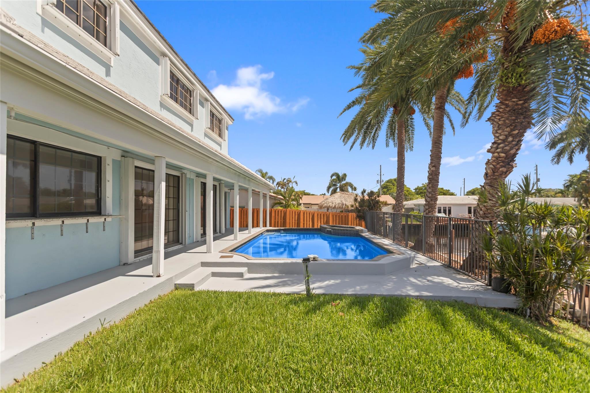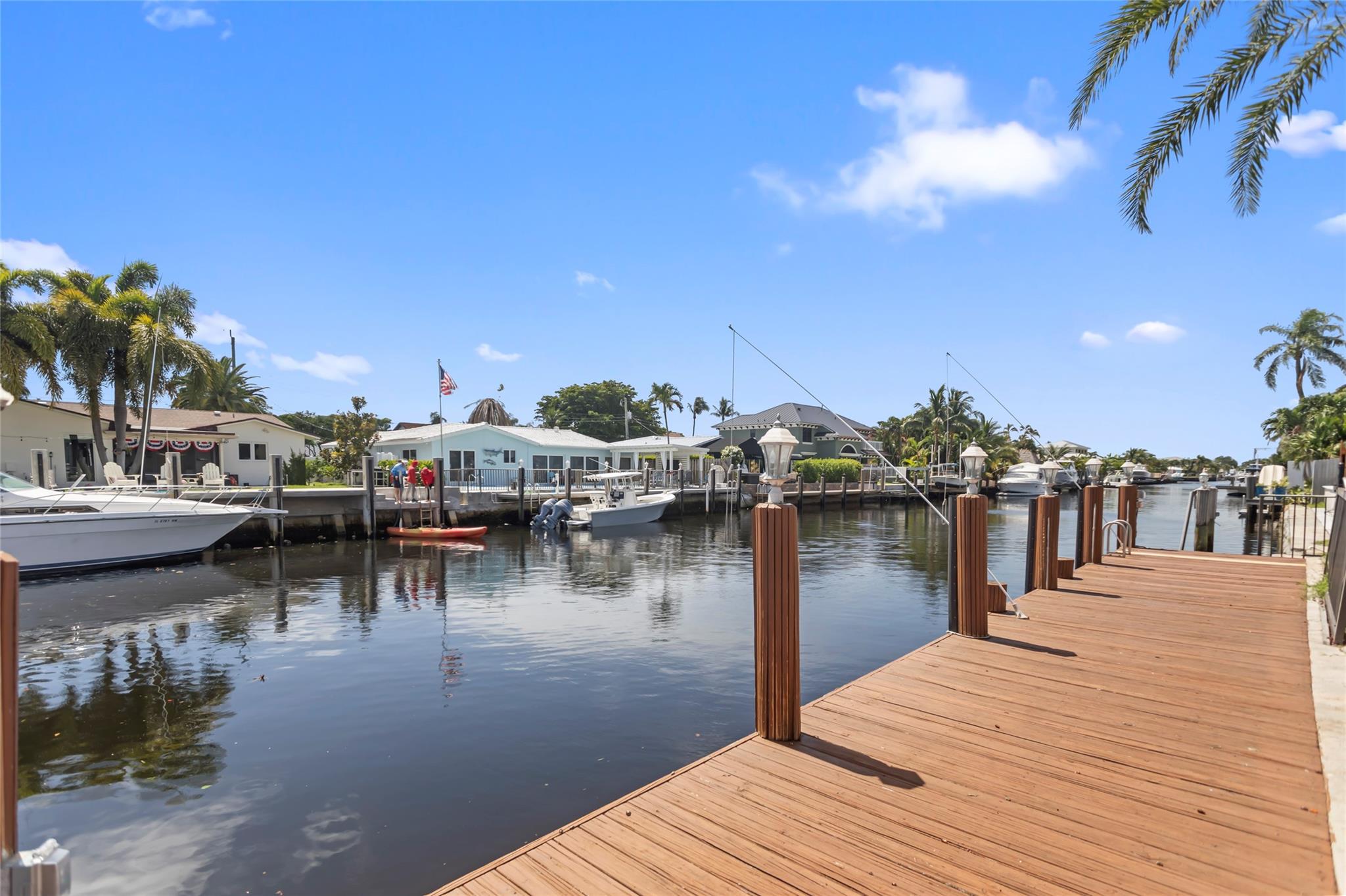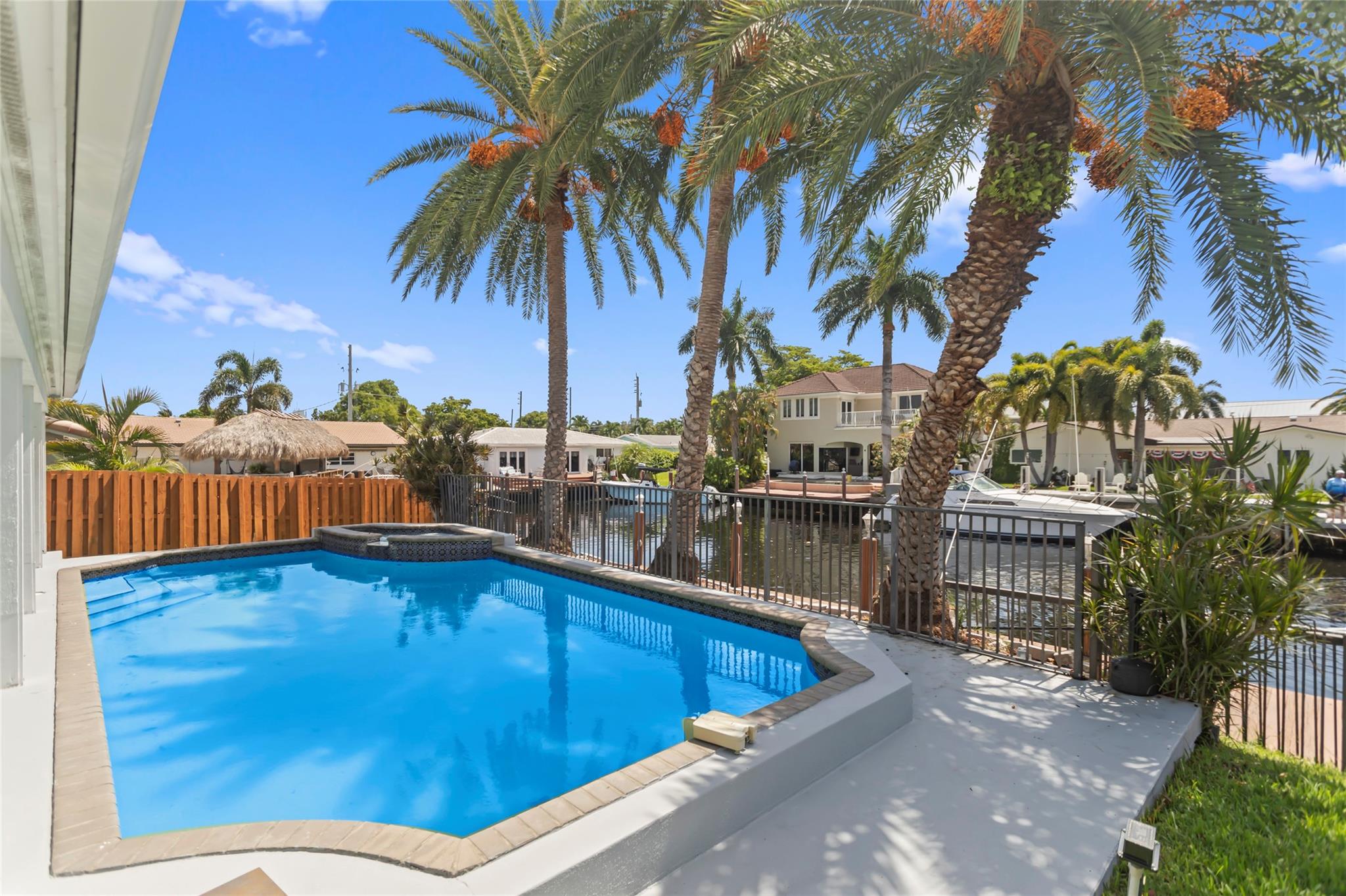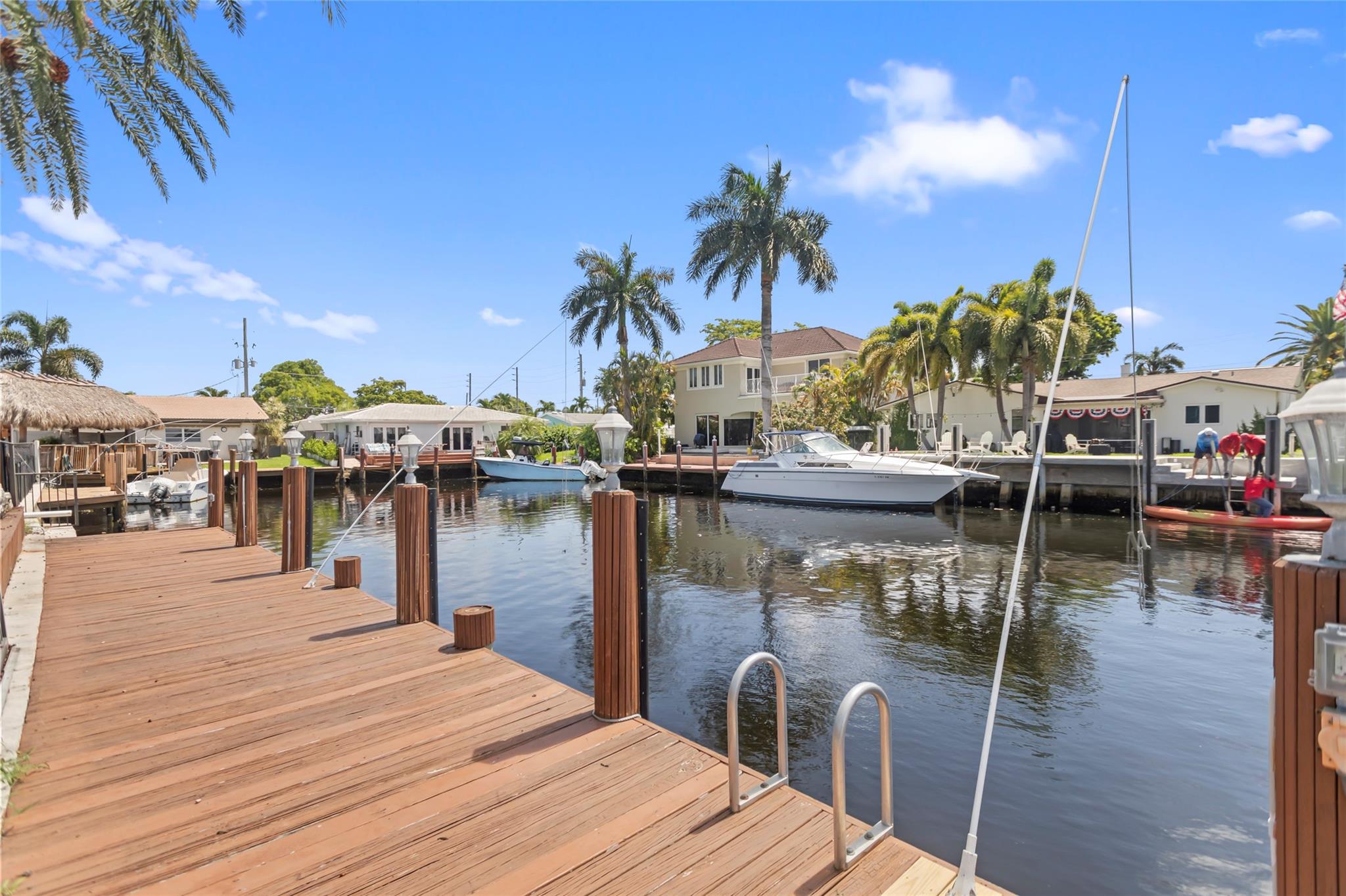 Here’s your opportunity to put your personal stamp on this waterfront home. With 4 bedrooms, 3 bathrooms, a pool, and a 2-car garage, it’s the perfect canvas for your creativity, this property offers endless possibilities. Bring your boat and enjoy easy access to the Intracoastal Waterway, navigating just one fixed bridge (Federal Highway). The fully fenced yard ensures privacy, while upstairs, the master suite, features dual walk-in closets among 2 spacious bedrooms and 1 downstairs. The kitchen is equipped with newer appliances including a dishwasher and gas stove, plus a new countertop installed just one year ago. A bonus room adjacent to the kitchen and garage provides flexible space. This home awaits your vision in a desirable and convenient location.