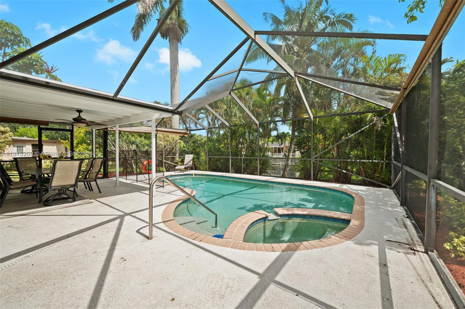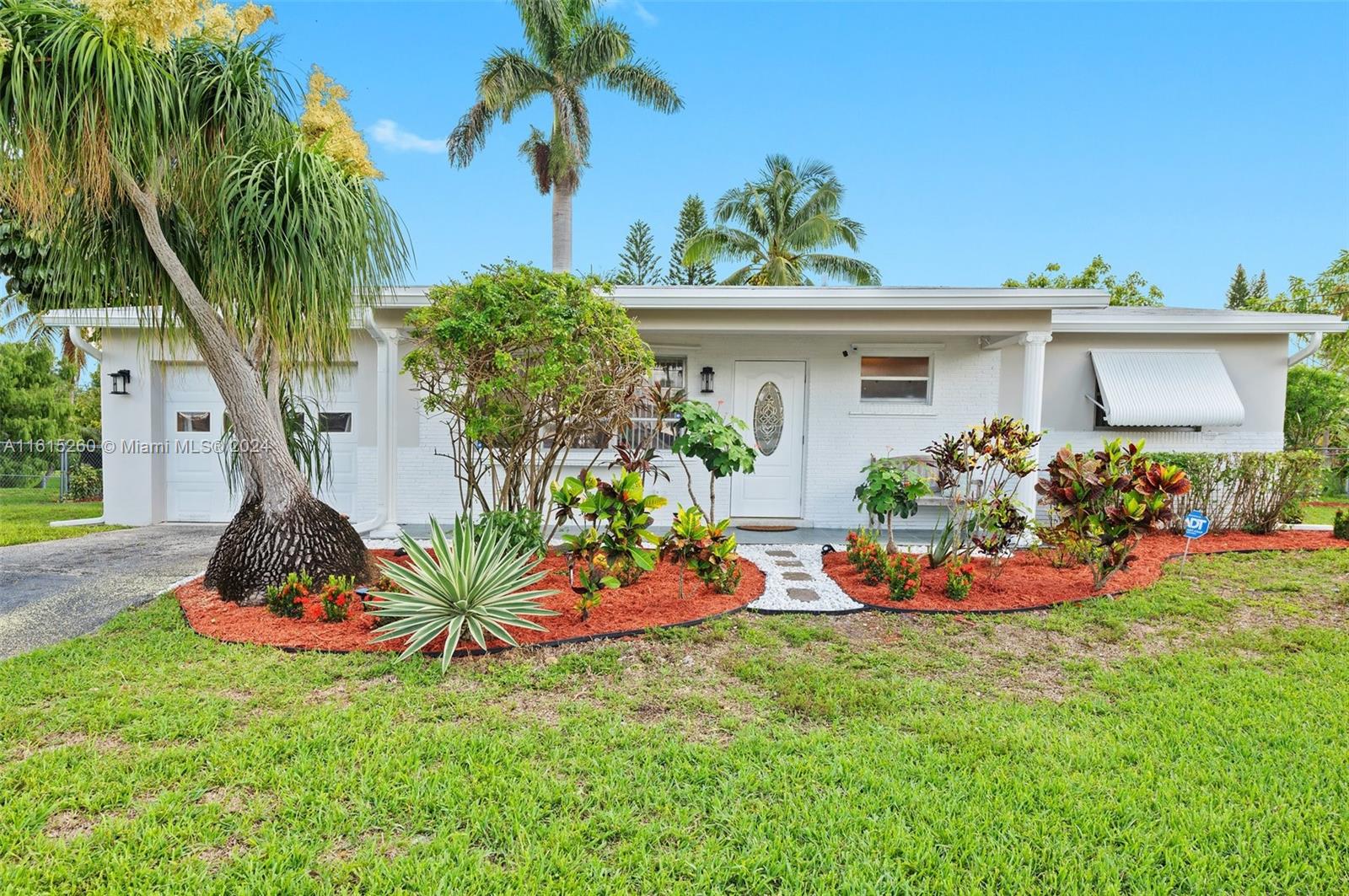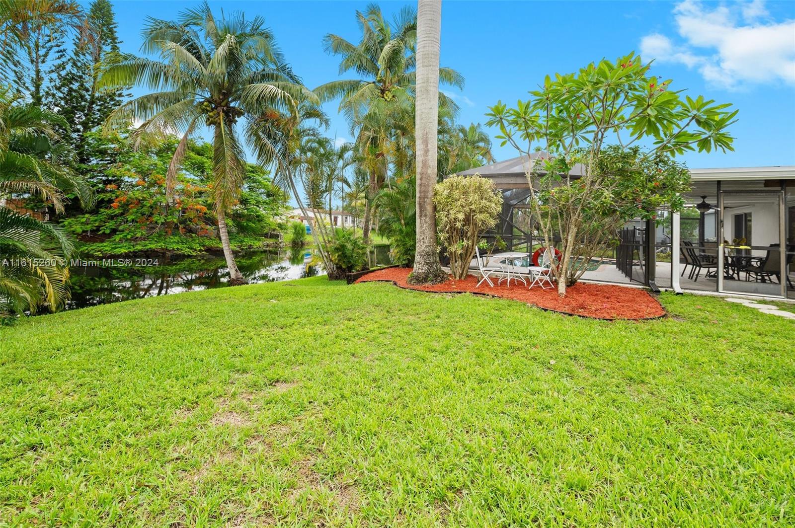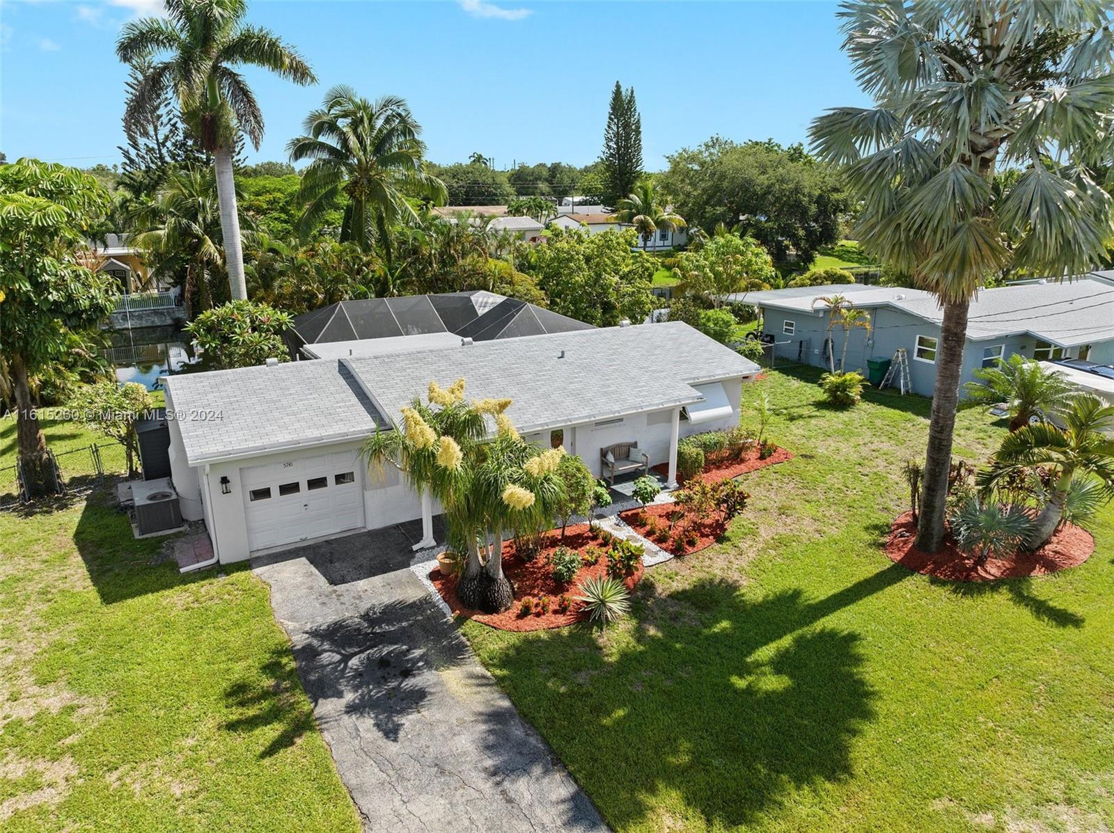 This charming 2/1 + bonus room Davie home is situated on an oversized lot and a half & has a brand new roof (2024)! Minutes to the Hard Rock hotel, NSU, BC, shopping, dining, & houses of worship. Close to the turnpike for easy commuting. Upgrades include beautiful Brazilian granite countertops, wood kitchen cabinetry, marble tile in the bathroom, & a fresh coat of paint throughout. The property features a freeform pool & spa, with an oversized screen enclosure, ideal for relaxation & entertainment. Over 90+ feet of water-frontage provides a picturesque view from inside & out w/space to drop a fishing line. Professionally landscaped yard features several mature tropical fruit trees: mango, avocado, coconut. Prof painted exterior, New sprinkler pump 2024 No HOA -- enjoy the freedom.