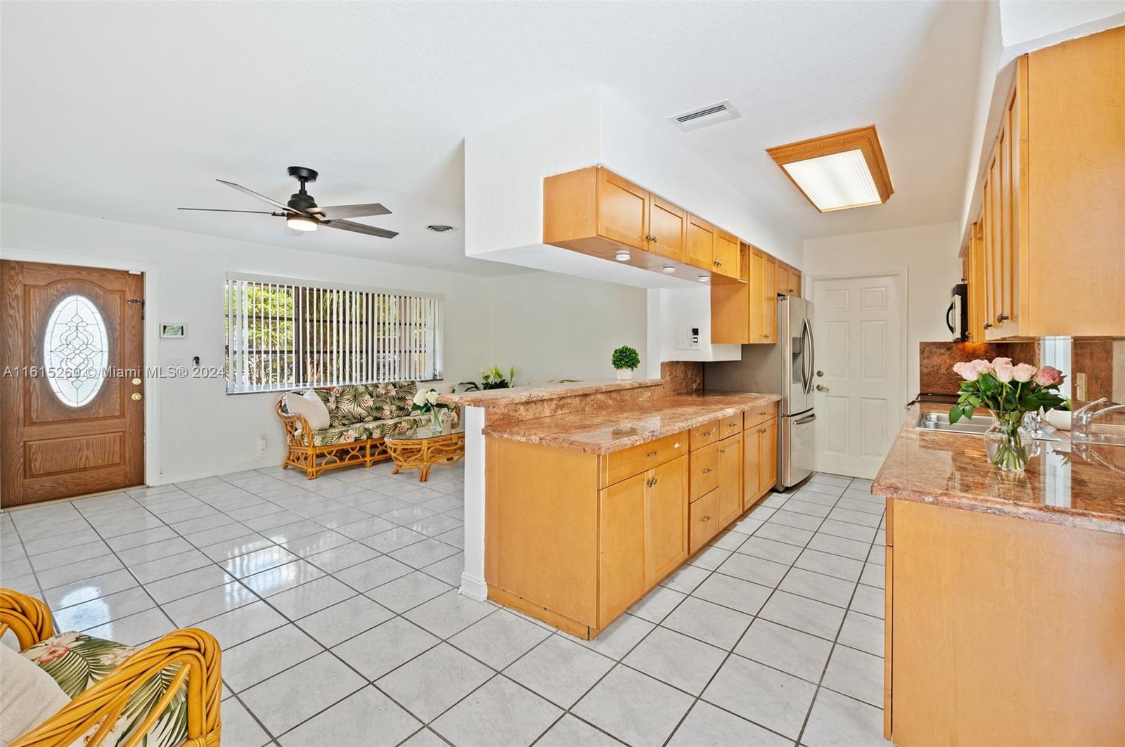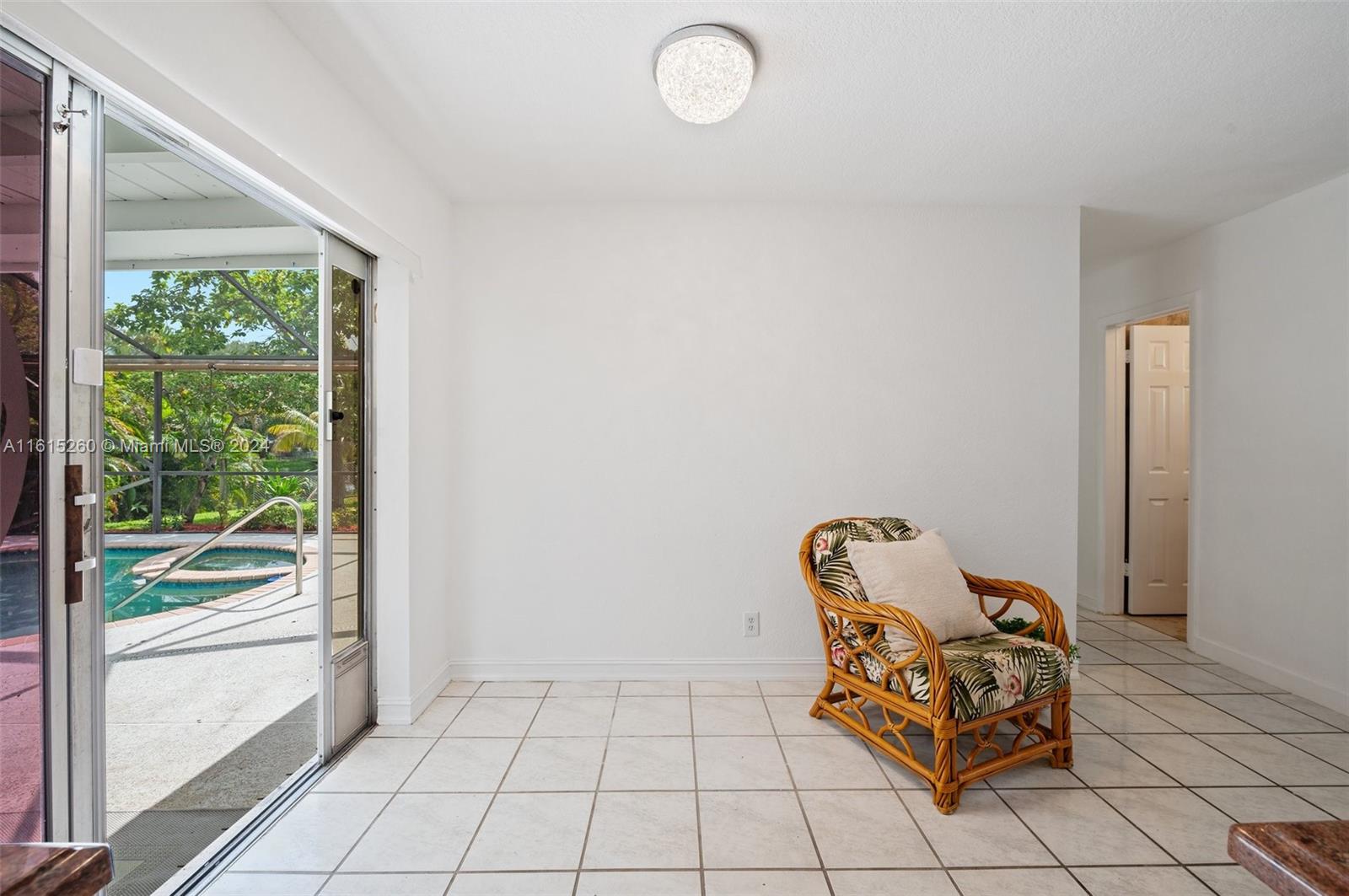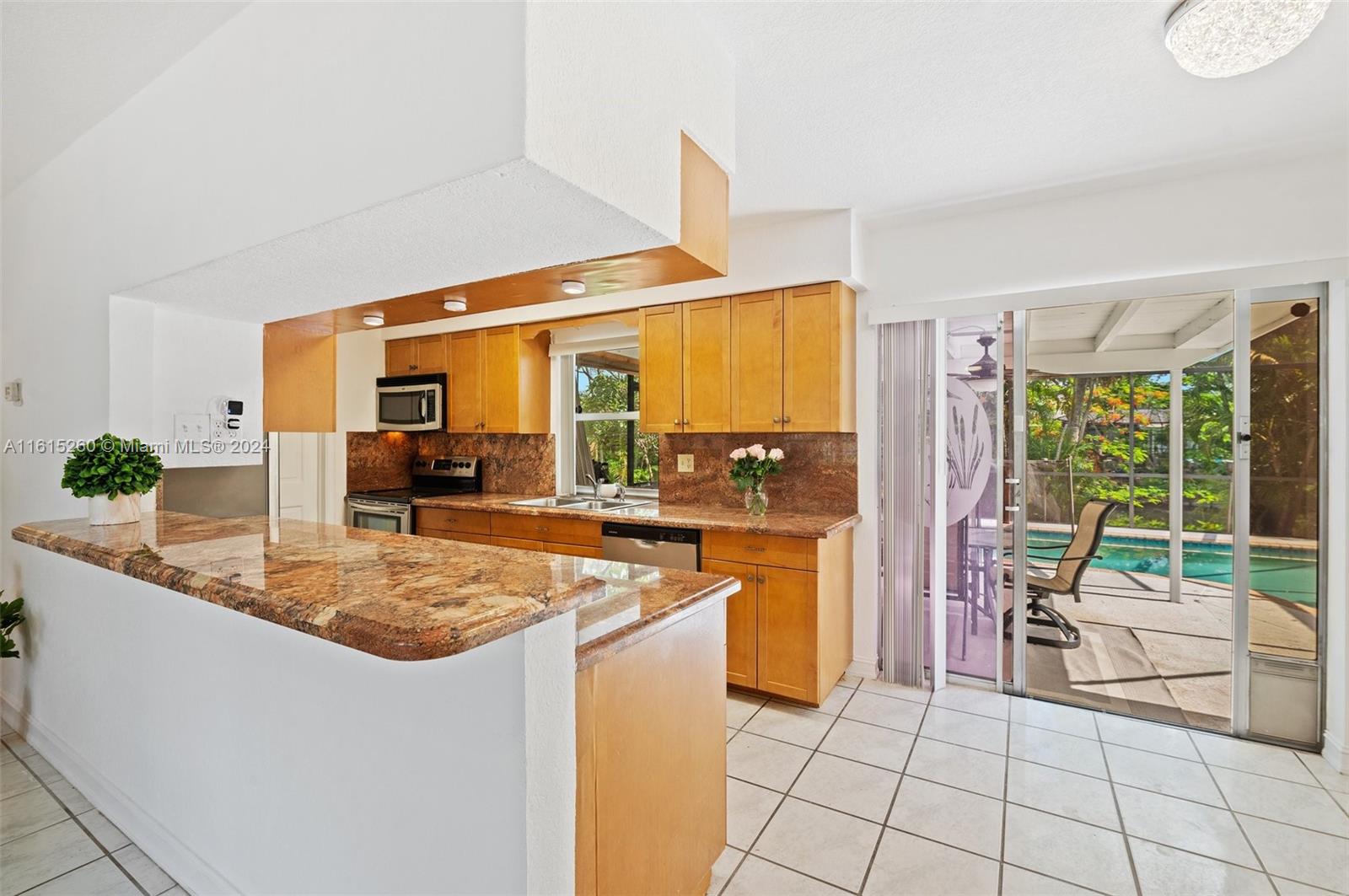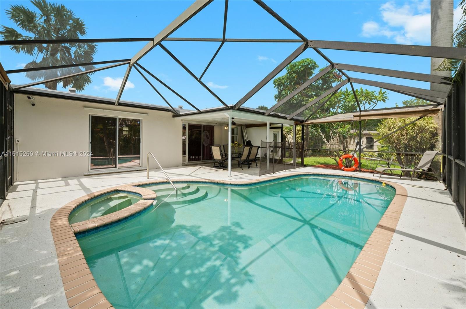 This charming 2/1 + bonus room Davie home is situated on an oversized lot and a half & has a brand new roof (2024)! Minutes to the Hard Rock hotel, NSU, BC, shopping, dining, & houses of worship. Close to the turnpike for easy commuting. Upgrades include beautiful Brazilian granite countertops, wood kitchen cabinetry, marble tile in the bathroom, & a fresh coat of paint throughout. The property features a freeform pool & spa, with an oversized screen enclosure, ideal for relaxation & entertainment. Over 90+ feet of water-frontage provides a picturesque view from inside & out w/space to drop a fishing line. Professionally landscaped yard features several mature tropical fruit trees: mango, avocado, coconut. Prof painted exterior, New sprinkler pump 2024 No HOA -- enjoy the freedom.