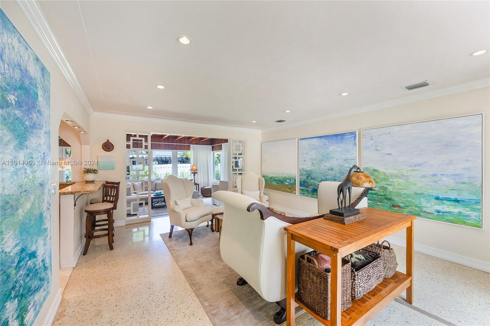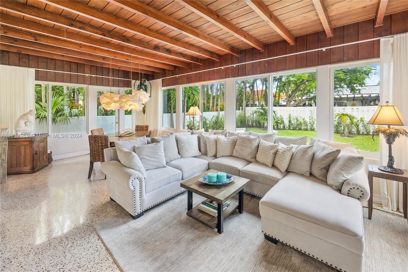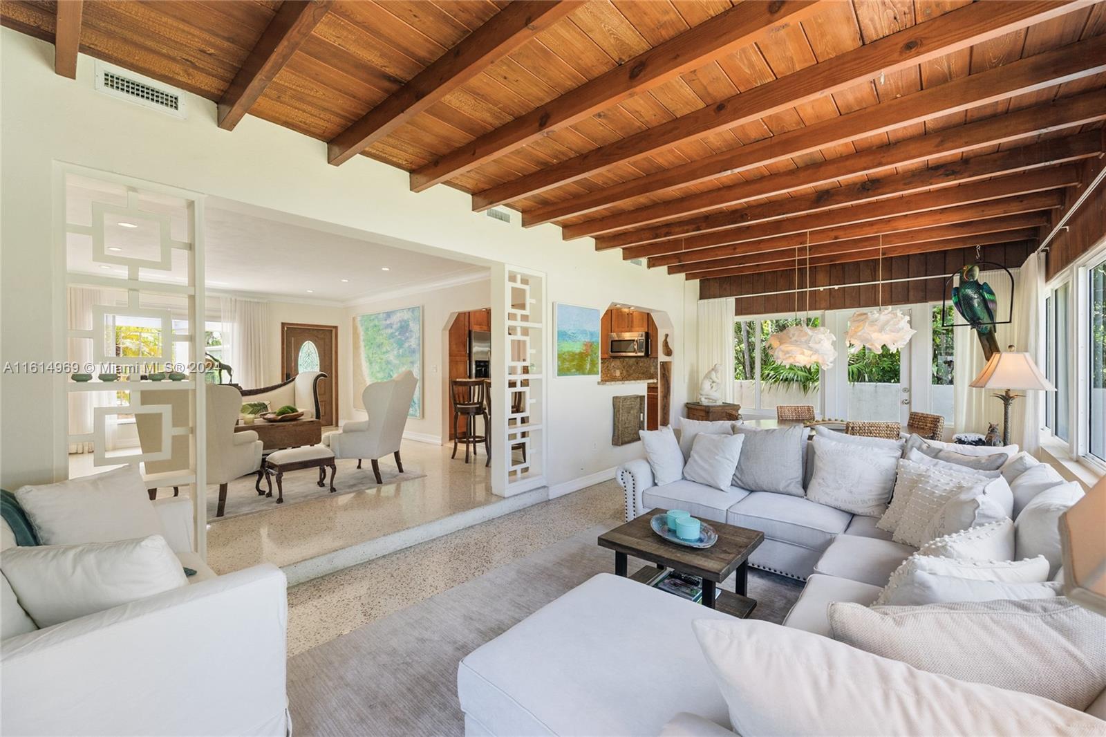 Nestled in the desirable Town of Surfside, this elegant home offers a warm welcome with inviting curb appeal. The home exudes a perfect mix of sophistication and charm and features 2 bedrooms, 2 bathrooms & a 1-car garage. The updated kitchen has wood cabinetry and stainless steel appliances and both bathrooms have been renovated. There are gleaming terrazzo floors throughout the home and tile in the kitchen and bathrooms. The hurricane impact windows provide an abundance of natural light. Step outside to the back patio and unwind in the peaceful setting of the private backyard with room for a pool. Furniture is negotiable. Walk to the beach, Surfside community center/pool, Bal Harbour Shops, the Four Seasons Surf Club & fine dining. Zoned for A-rated Bay Harbor schools. Priced to sell!