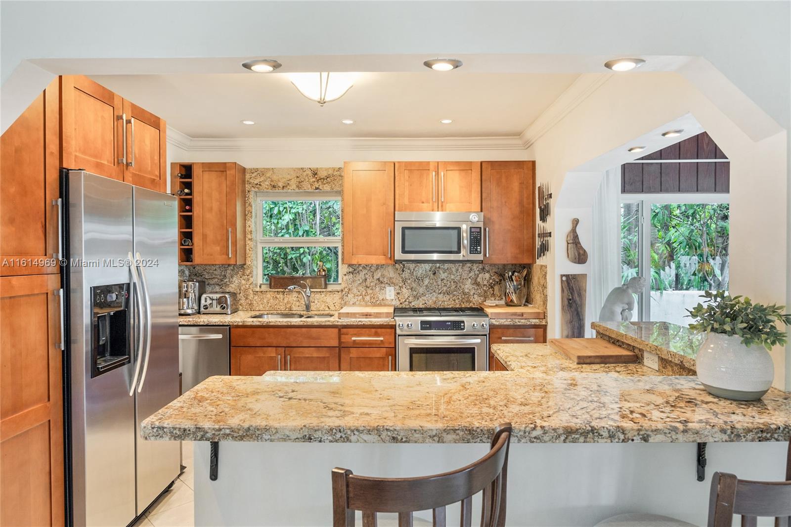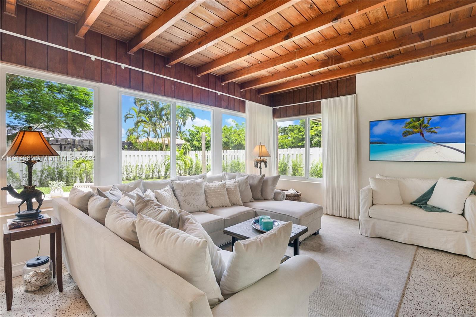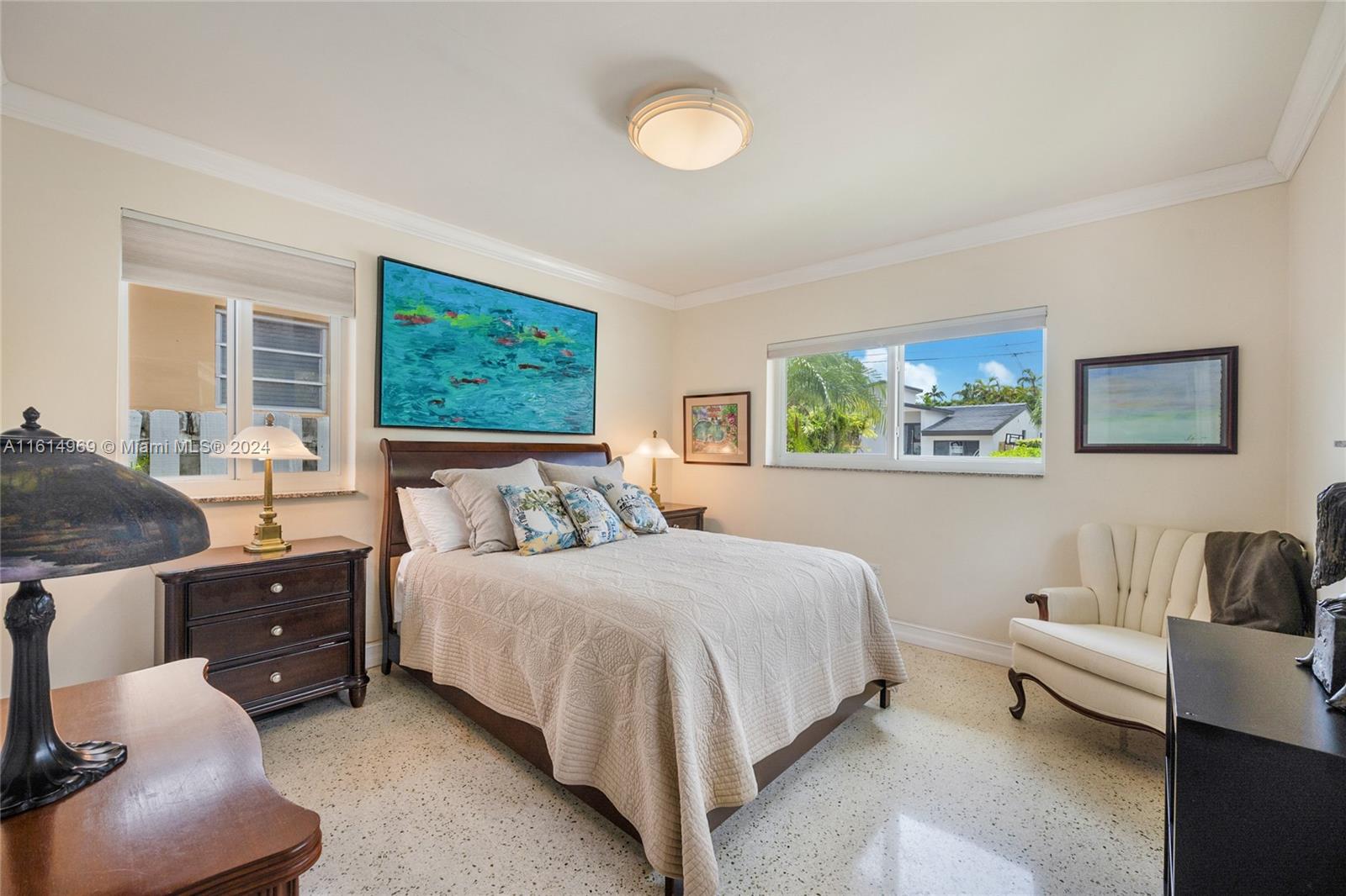 Nestled in the desirable Town of Surfside, this elegant home offers a warm welcome with inviting curb appeal. The home exudes a perfect mix of sophistication and charm and features 2 bedrooms, 2 bathrooms & a 1-car garage. The updated kitchen has wood cabinetry and stainless steel appliances and both bathrooms have been renovated. There are gleaming terrazzo floors throughout the home and tile in the kitchen and bathrooms. The hurricane impact windows provide an abundance of natural light. Step outside to the back patio and unwind in the peaceful setting of the private backyard with room for a pool. Furniture is negotiable. Walk to the beach, Surfside community center/pool, Bal Harbour Shops, the Four Seasons Surf Club & fine dining. Zoned for A-rated Bay Harbor schools. Priced to sell!