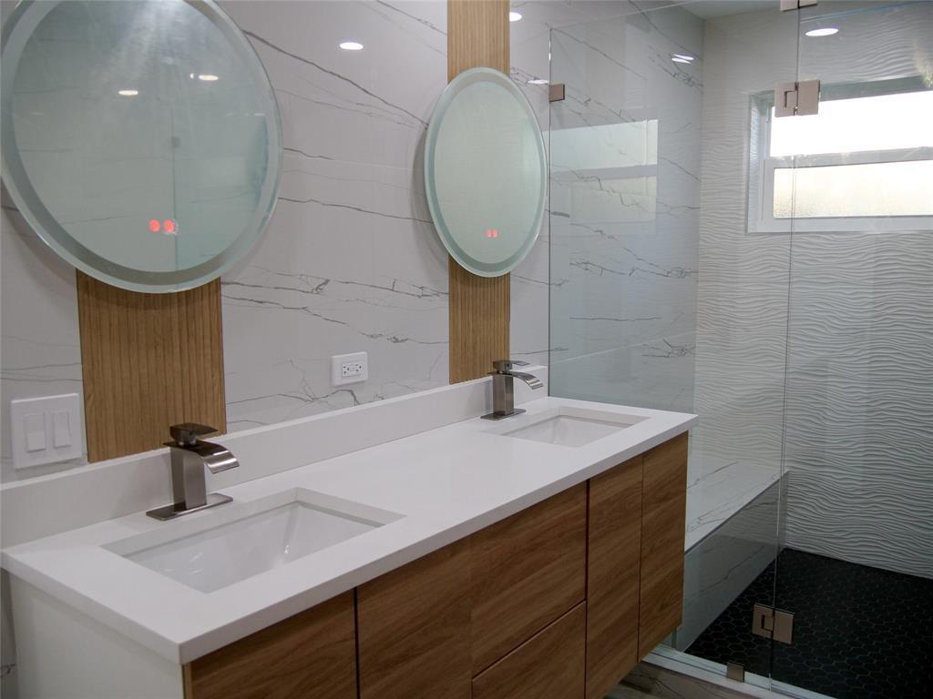 Discover modern luxury in this meticulously renovated home featuring a new roof and total renovation project. New bathrooms include a state-of-the-art master bath for spa-like indulgence. The remodeled kitchen boasts beautiful cabinetry and premium appliances. Enjoy comfort with new AC, water heater, and electric panel. An aluminum fence enhances security, while a remodeled driveway, front, back patio, and deck offer outdoor charm. Impact windows ensure energy efficiency and safety. This turnkey property blends elegance with functionality for a lifestyle of contemporary comfort and style.