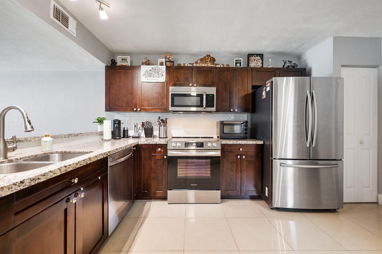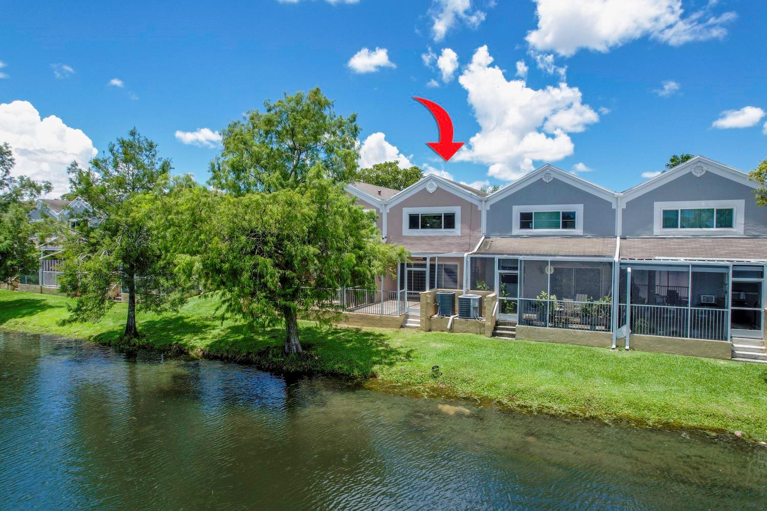 Enjoy breathtaking waterfront views from the oversized screened-in porch of this 2-bedroom, 2.5-bathroom townhome with a garage. Downstairs features seamless tile floors, a custom wood accent wall, and an updated half bathroom. Upstairs, discover a laundry room and two master suites with custom closet shelving. The home boasts impact windows, custom blinds throughout, and an updated kitchen with stainless steel appliances. This townhome offers it all - stunning views, ample garage space, and low HOA dues. Located in a gated community with abundant amenities, it's near CB Smith Park, hospitals, shopping, restaurants, and highways. Association does not have an application process or fee.