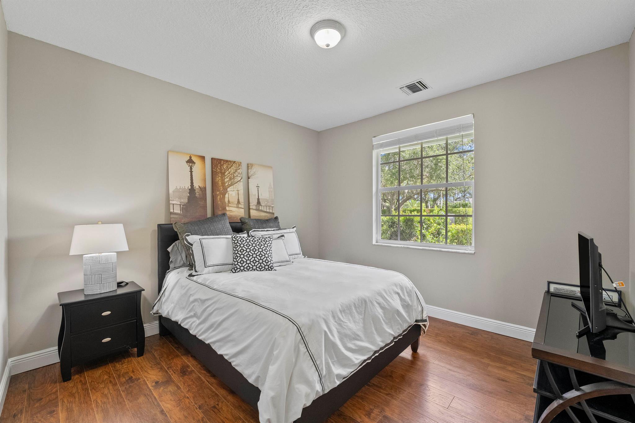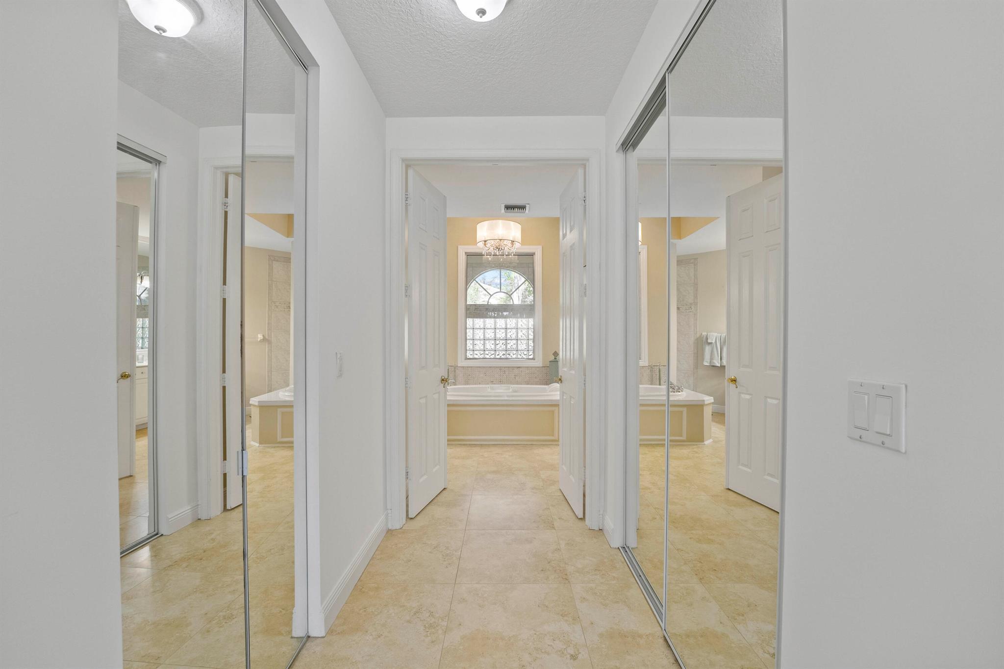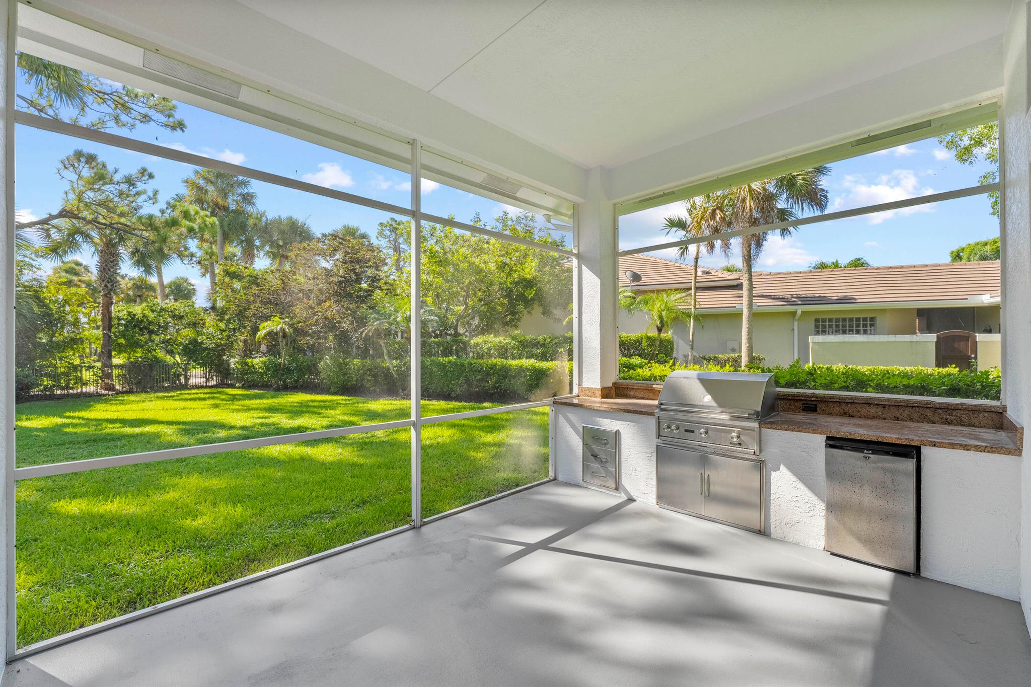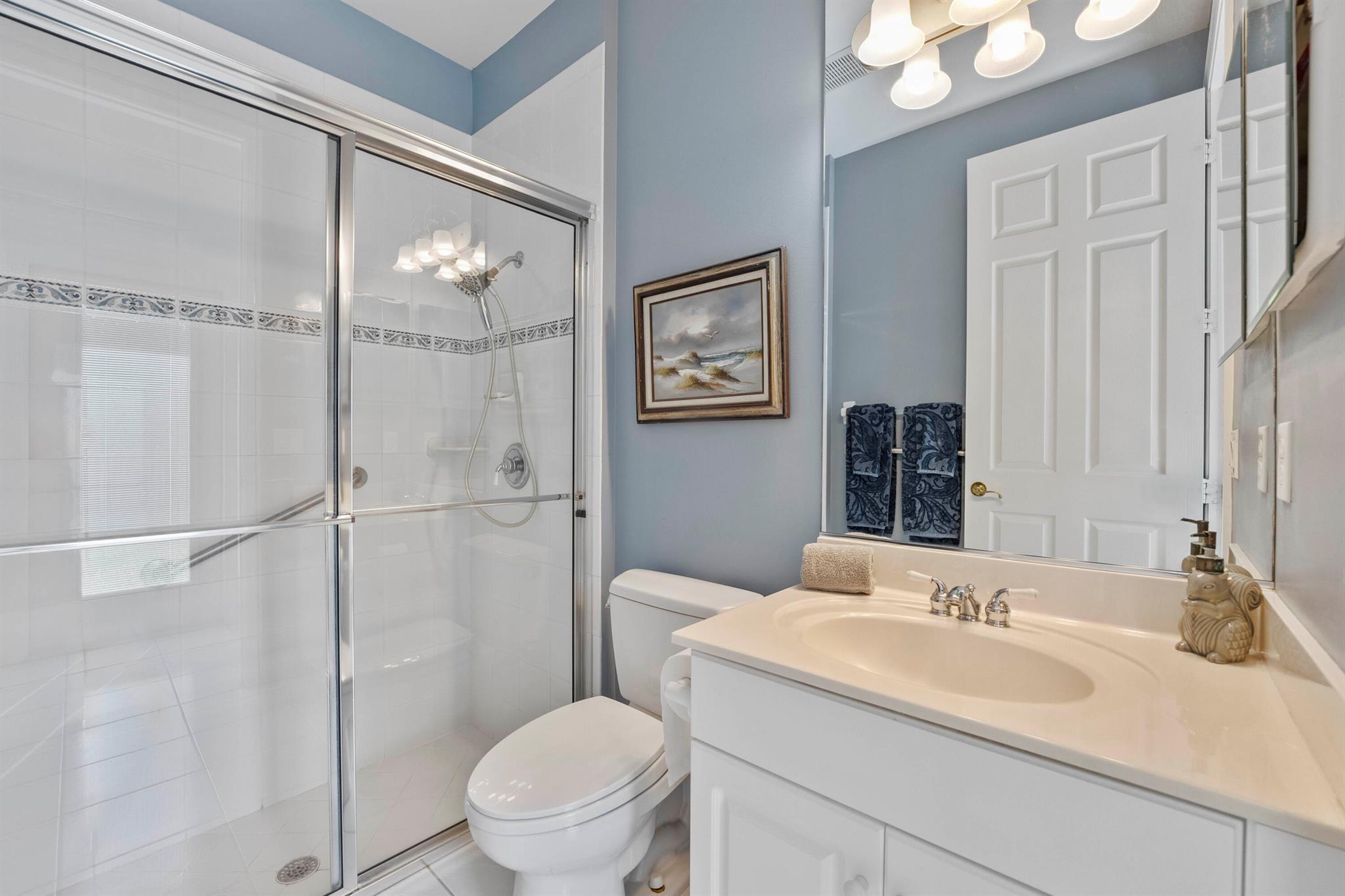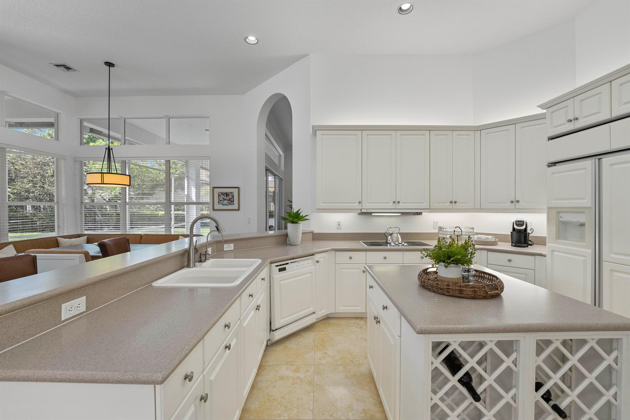 Start enjoying the Palm Beach County's lifestyle in this custom built home in West Palm Beach's beautiful Breakers West Country Club. With a NEW tile roof in 2022 and stucco exterior painted in 2024, this lovely home offers a wonderful floor plan with almost 3,400SF of living area and includes 4 Bedrooms + Office (with closet), 3.5 Baths and 3-car garage. Classic crown molding, 12ft ceilings and crisp white walls make this home the perfect backdrop for making it your own. Unique to this property's location is an adjoining common area easement, giving this home additional privacy from the neighboring home. With the popular split floor plan, this home features the Primary Suite and Office on one side of the house and 3 Bedrooms are located on the other side. The very spacious Primary