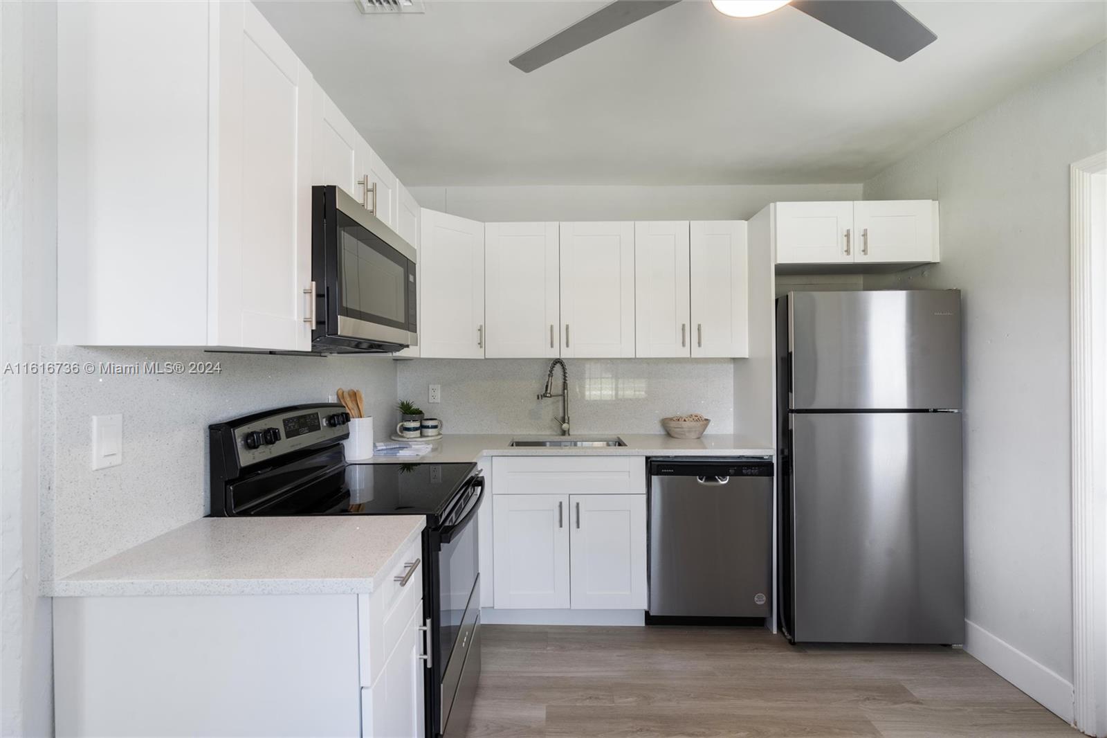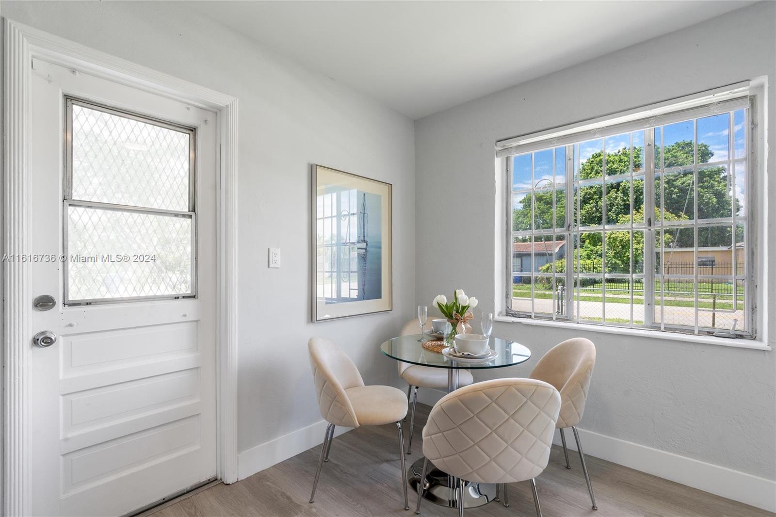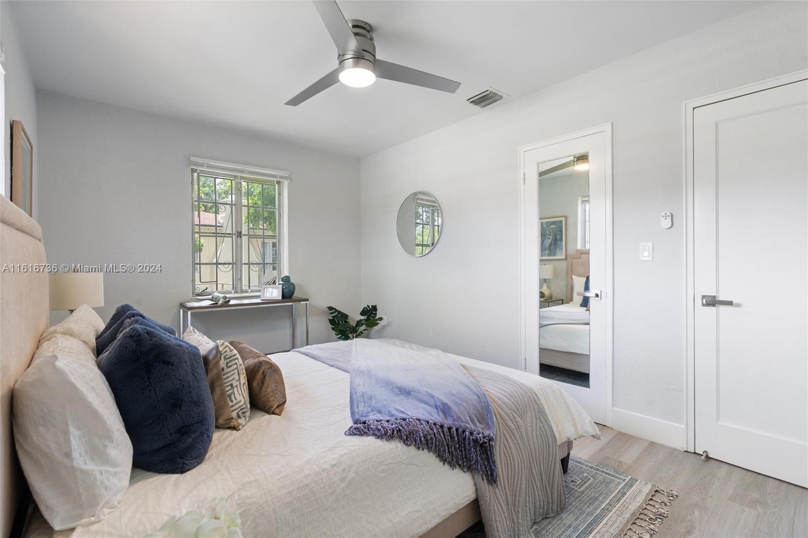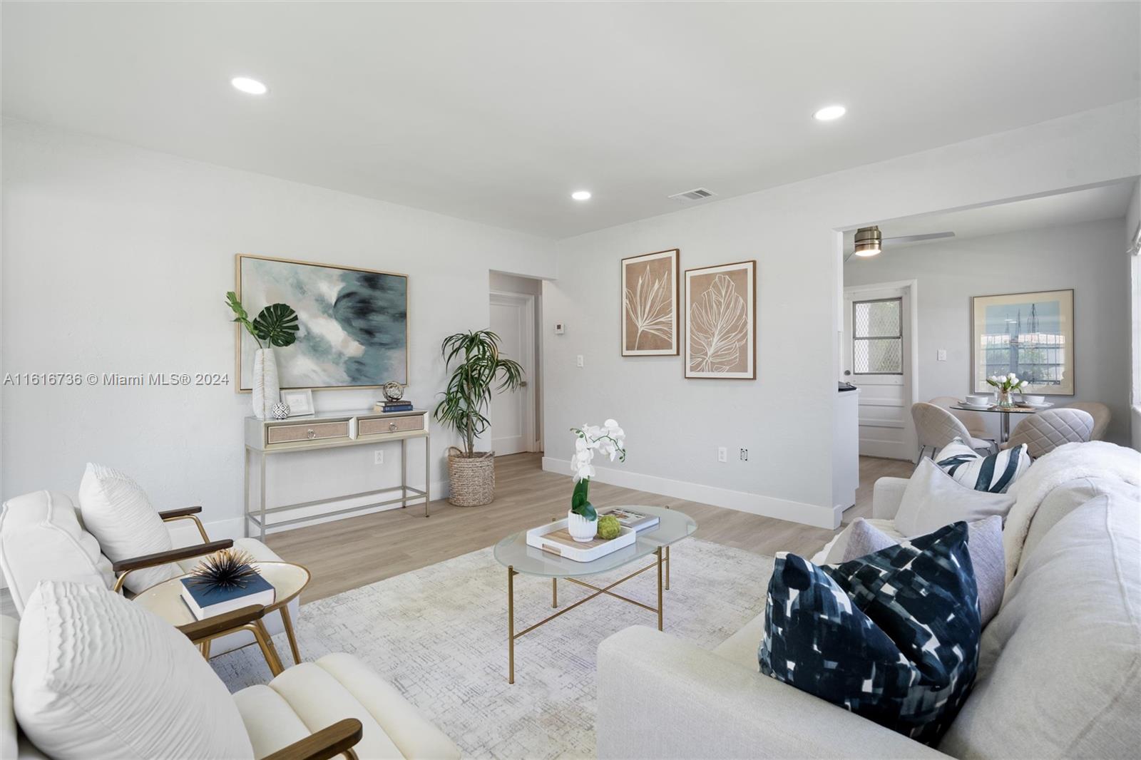 Welcome to this delightful 2-bedroom, 1-bathroom home, perfectly situated on a desirable corner lot. This residence boasts an open floor plan, allowing for ample natural light to fill the space, creating a warm and inviting atmosphere. Recent updates include a brand new roof (2024) and a modern AC unit installed in 2020, ensuring your comfort and peace of mind. The hot water heater, replaced within the last five years, adds to the home's efficiency and convenience. Freshly painted and move-in ready, this property offers the perfect blend of charm and modern amenities. The spacious yard includes a concrete block shed, presenting an excellent opportunity for conversion into a studio apartment, workshop, or additional storage space.