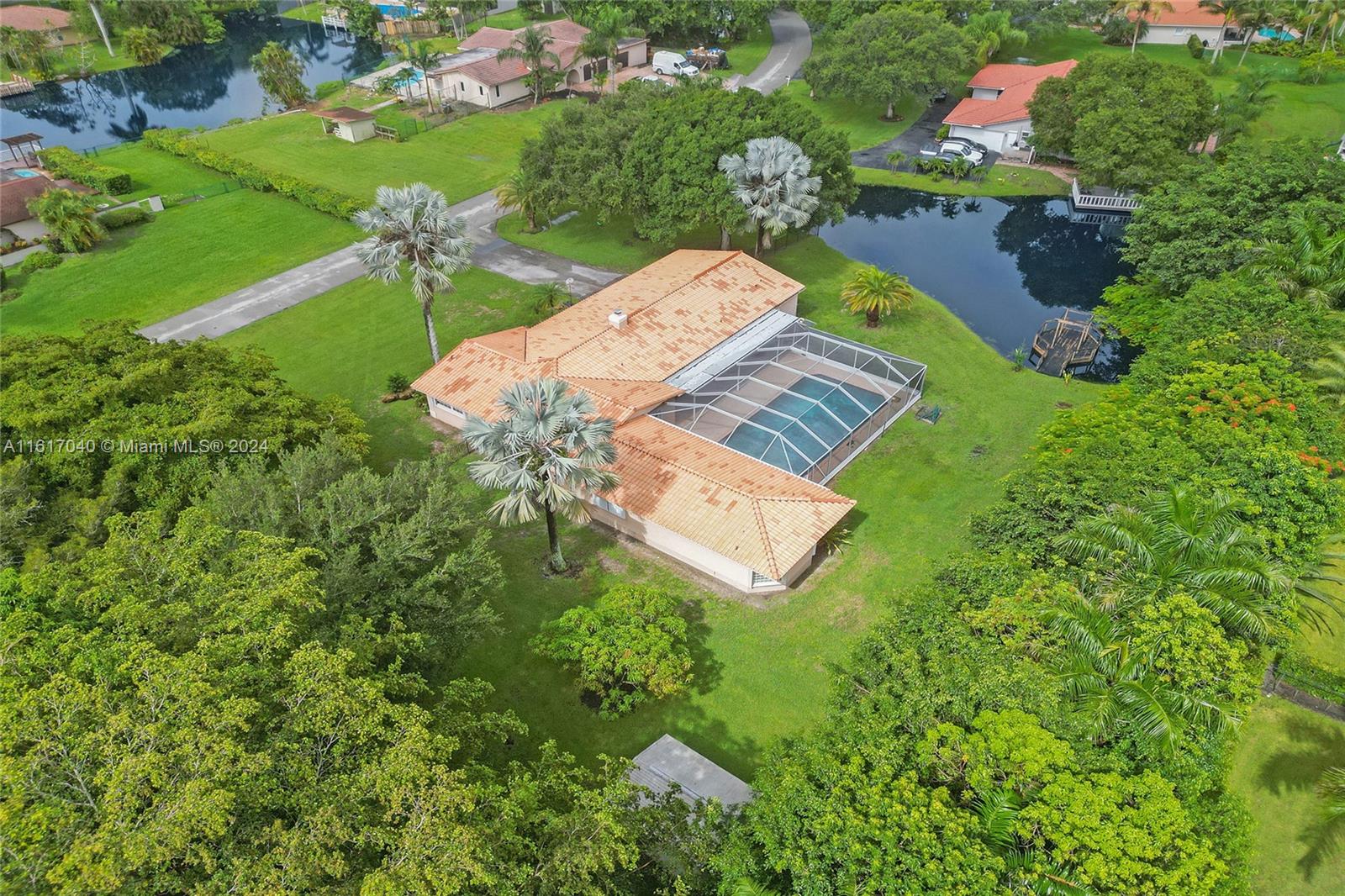 Spacious lakefront Pool home with over an acre of land on culdesac located in the highly desirable community of Hiatus Isles. This property features 4 bedrooms and 3 1/2 bathrooms. Two of the bedrooms are considered master suites with own bathroom. Separate formal dining room with family room that has a real wooden fireplace. French doors that open to a large screened in pool area that has its own private pool bathroom. With over an acre of land horses are welcome as trails are located directly outside the property. Robins Preserve and Tree Tops Park. No homeowners association. The home boasts updated kitchen with stainless steel appliances, crown molding throughout, shutters, a private deck outback and large storage shed. This property is priced to sell!