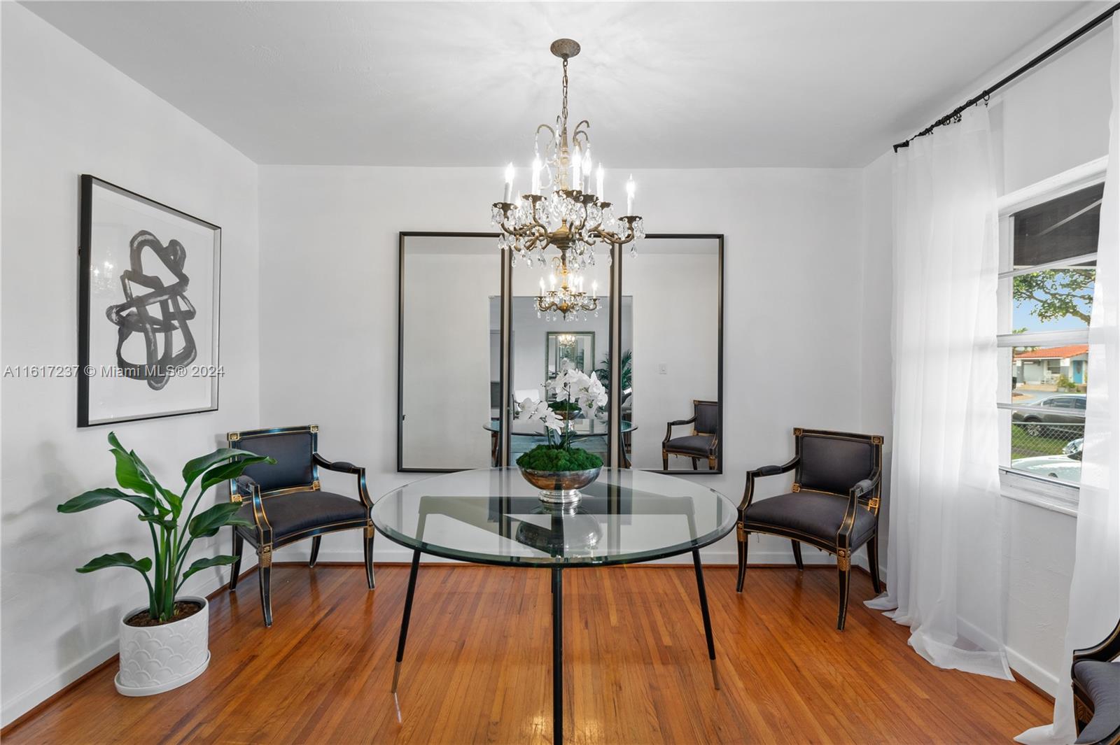 This beautiful and well maintained home, located on one of the quietest streets in hialeah, is back on the market with a price improvement! This centrally located home offers 3 bedrooms with 2 full bathrooms, living room, dining room, a true 1950s eat-in kitchen with banquet, ample Florida room, 1 car garage with overhead storage, and and additional utility/storage room. The current owners have preserved authentic midcentury details such as the original wood flooring and baseboards while enhancing the true South Florida nature of this property with an upgraded barrel tile roof and mature (50+ year old) fruit barring trees, to include mango and avocado. Includes, central heating and air, bluetooth smart lighting in all the bedrooms, accordion storm shutters, and has been freshly painted.