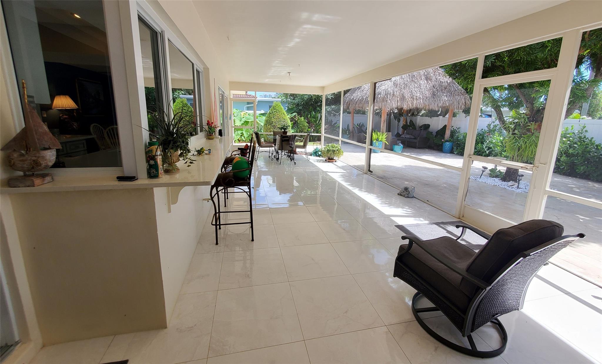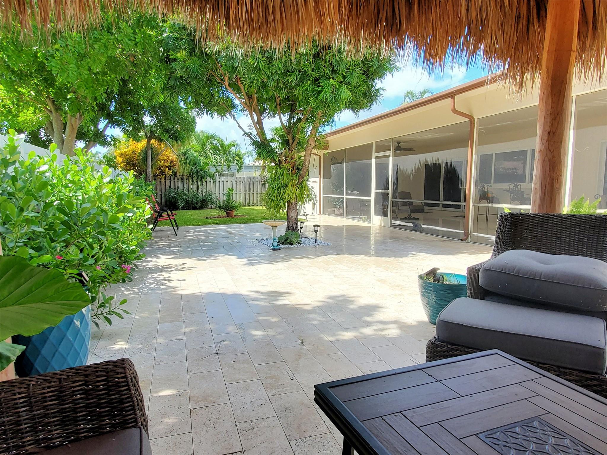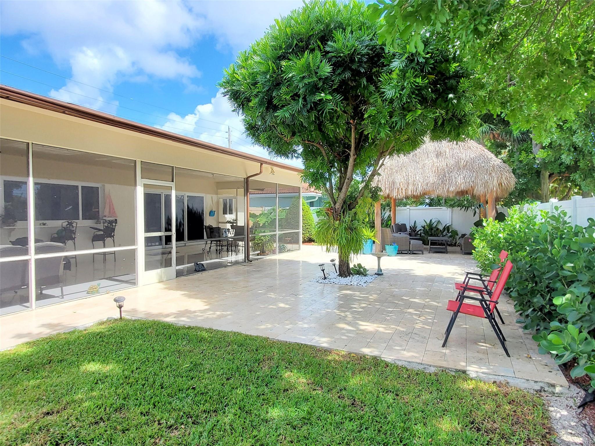 A South Florida Paradise Home With 2 Bedrooms, 2.5 Baths, 2 Car Garage with A/C & two extra 220 outlets, Large Family Room Could Easily Be Converted to A 3rd Bedroom. Updated Kitchen & Countertops - Formal Living & Dining Room - Eat-In Kitchen & Breakfast Bar, Tile Thru-out - Huge Covered Patio - N.E. Boca of Bel Marra, Walk to the Intracoastal. Large Yard with Tropical Landscaping & Tiki Hut, Full Hurricane Protection.