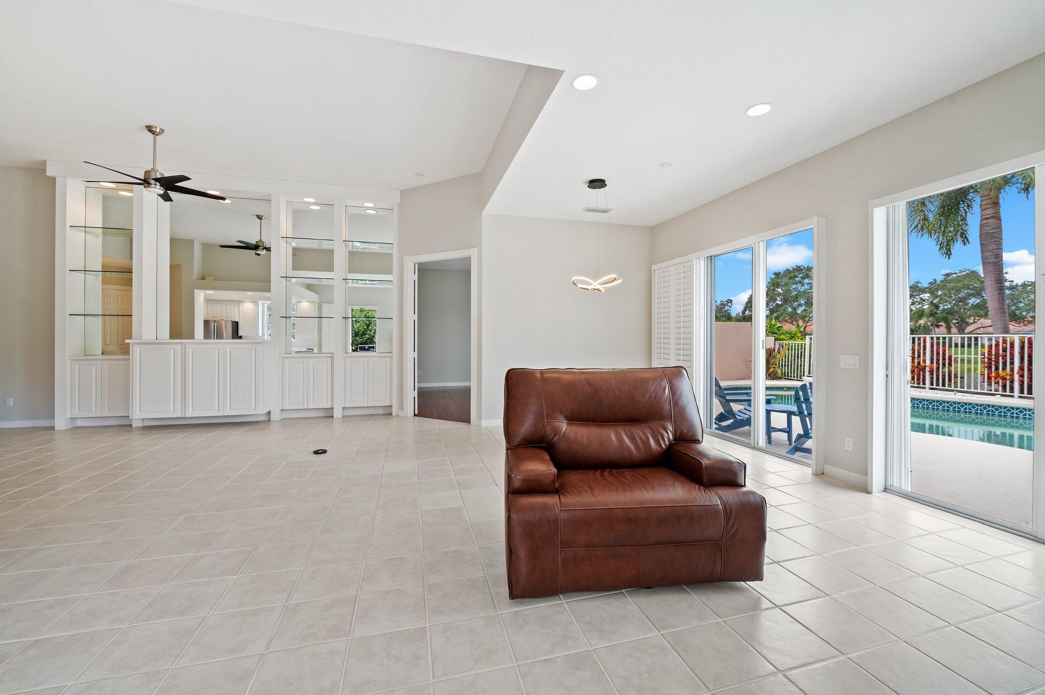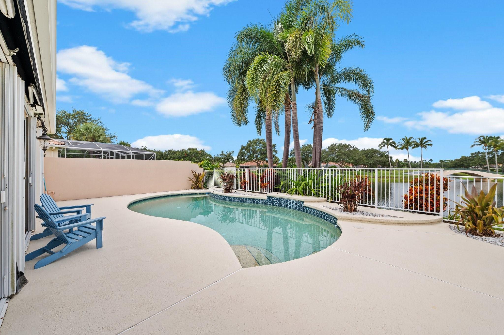 Amazing lake views from your private pool area! Beautifully appointed home featuring expanded Oakmont floorplan, the tile in the main living areas was professionally cleaned by Stanley Steamer. New refrigerator & stove, will make this kitchen a chef's dream. Elegant entrance, split bedrooms (4th room has no closet), ample storage space, plantation shutters,professionally cleaned, and sealed duct vents are just a few to mention! Private location, in the back of the community, mature landscaping including gardenia, hibiscus, magnolia& palm trees! The pool has a waterfall feature and the electric awning will provide plenty of shade when needed! Seller requires all buyers to be pre-qualified with their preferred lender; the preferred lender is giving a $5,000 lender credit toward closing costs