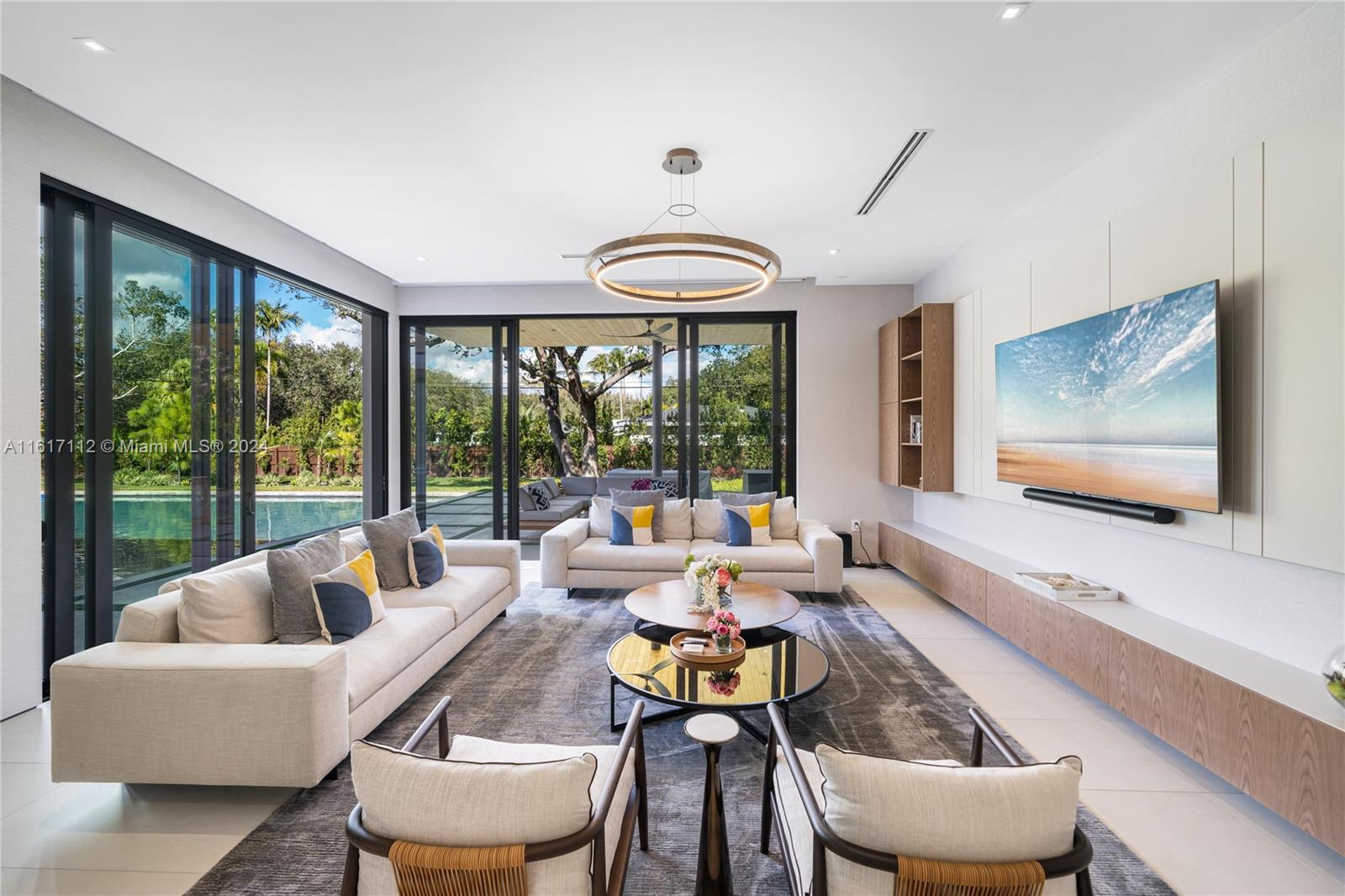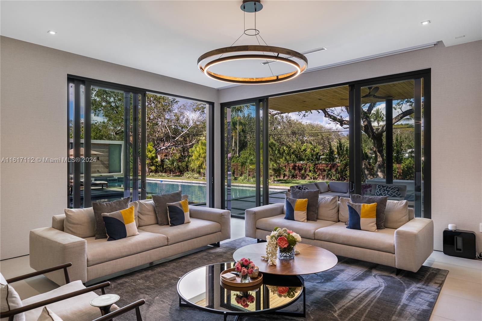 Beautiful Modern Construction in the Heart of Pinecrest. This spectacular home includes: 5 bedrooms, 5.5 bathrooms in the main house with a 1/1/ guest house, fully gated and sits on a 38,766 sqft lot. The main entrance greets you with an 11ft hurricane proof Mahogany pivot door and the throughout the home you have high ceilings ranging from 10 to 14 ft. Fully equipped with Italkraft kitchen cabinets, quartz counters and Miele, Wolf and Liebherr appliances. All bedrooms are fully ensuite and are completed with Mia Cucina closets.