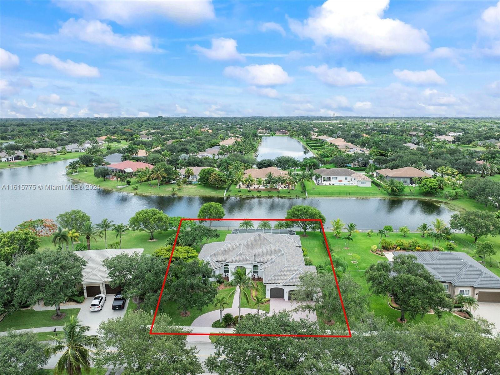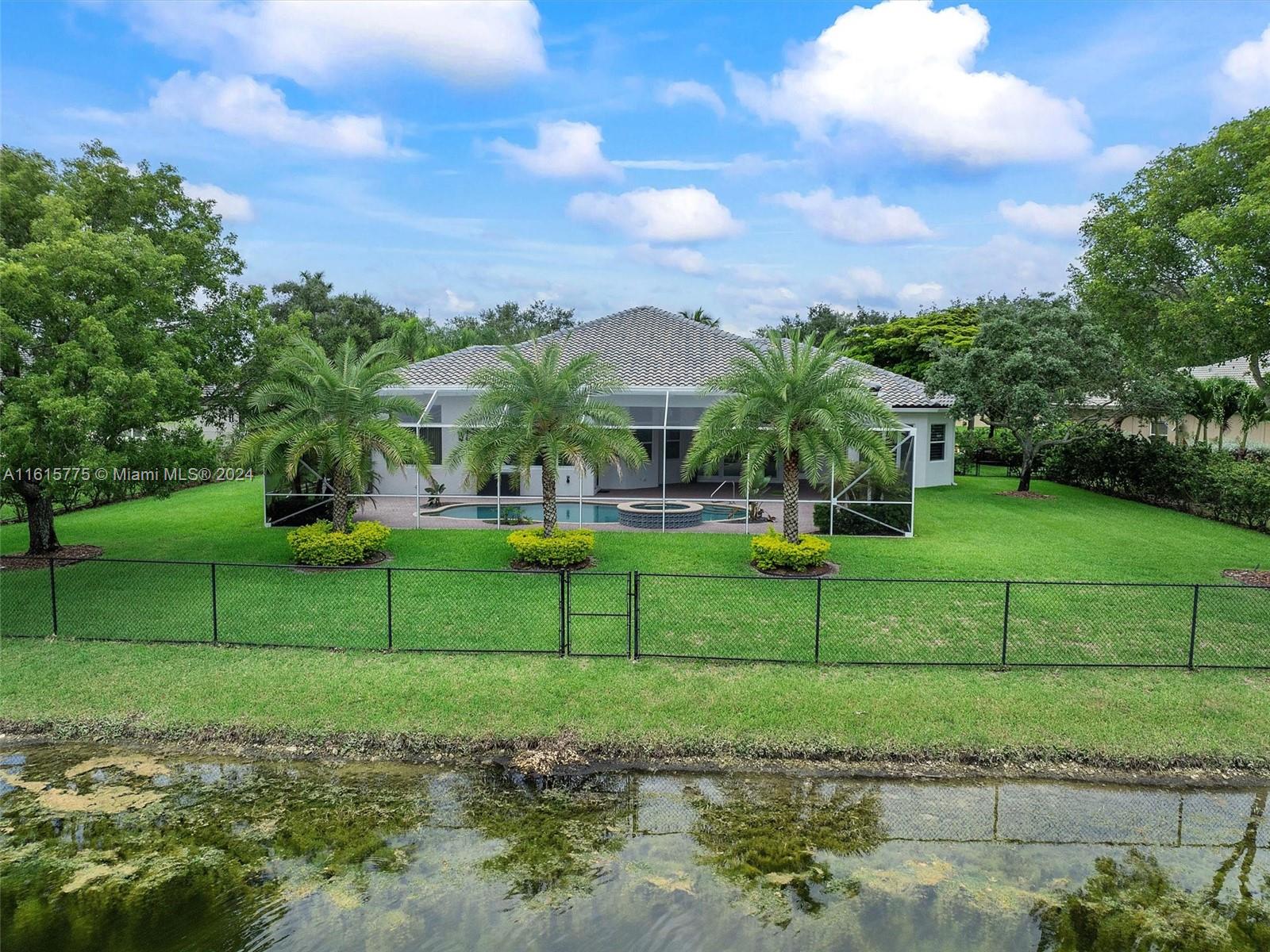 Stunning 1-story waterfront home in desirable gated community of Imagination Farms in Davie. The single-family with 5 beds/4 baths and pool, offers the perfect blend of contemporary urban living and timeless elegance. The moment you open the front door, you'll be captivated by the open floor plan, high ceilings and abundant natural light. Open kitchen with SS appliances, granite countertops & center island. Large family room and custom built-in bar with wine cooler, perfect space to entertain! Built-in closets. Tile flooring throughout living areas and carpet in bedrooms. Oversized lake front lot, screened patio with covered area and heated pool. 3-Car Garage. Impact windows & doors. ROOF & GUTTERS 2023, AC 2023, 24KW Generator. Top rated school district. Close to I75, shopping & dining.