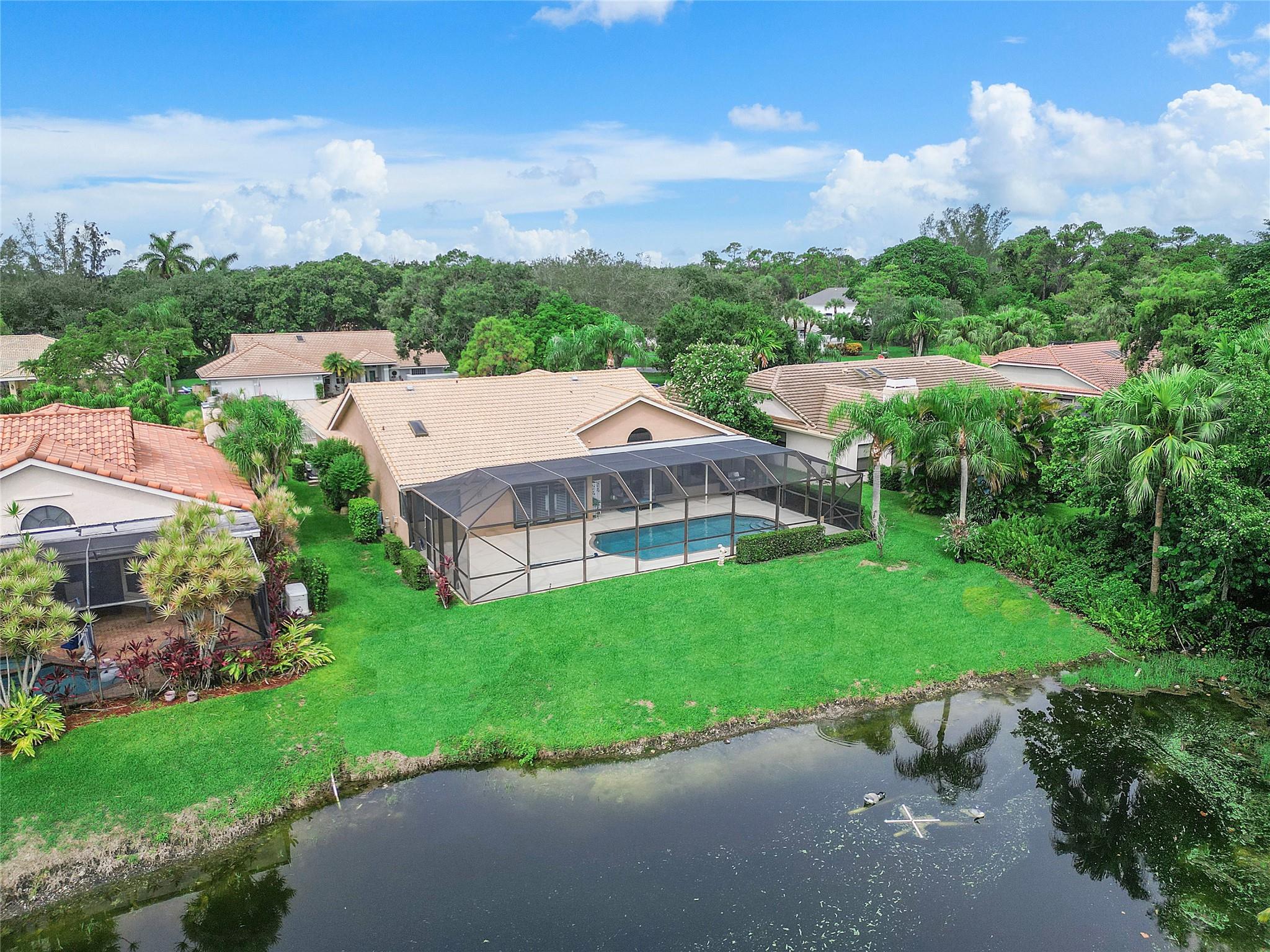Lovely & Bright 4/3 pool home on large lot w/ water views. Impact windows & doors, soaring ceilings, porcelain floors, 3-car garage, luxuriously updated kitchen boasts large island with under-counter fridge & fully renovated bathrooms- this home is spectacular! Enter through double doors & choose to step into your living room, formal dining, or office/4th bedroom. Continue past the wet-bar into the eat-in kitchen & family room with long-lake view from your screened pool. Stacked floor plan offers spacious primary w/large closet & tub, separate shower & private powder room. Adjacent hall offers 2 guests & laundry room. Gated, low-HOA community zoned for Parkland's best schools & convenient to every amenity- shopping, travel, & dining! Roof from 2007 -maintained beautifully.