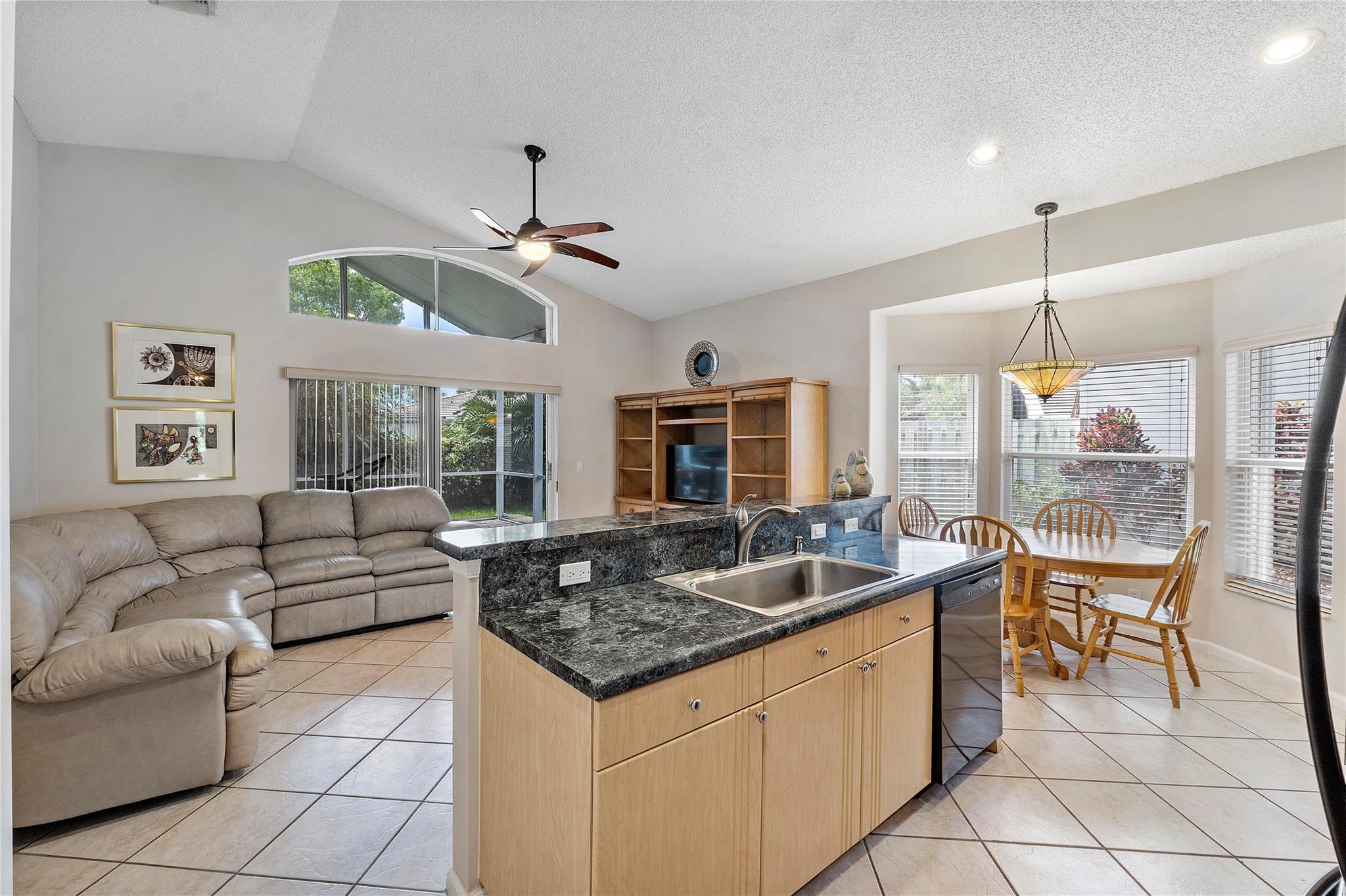 Home Sweet Home! This well-maintained three bedroom/two bathroom house is a perfect place to call home. The three-way split floor plan is a fantastic feature, providing privacy and separate spaces for different needs. The open-concept layout connects the living, dining, and kitchen areas, ideal for both intimate gatherings and entertaining guests. The kitchen has ample counter space and storage, pantry and an island with breakfast bar. Walk outside to the paver, screened lanai, giving a perfect spot to relax and enjoy some quiet time. You are minutes from the tennis courts and many other amenities. A/C 2021. Water Heater 2022. W/D Newer.