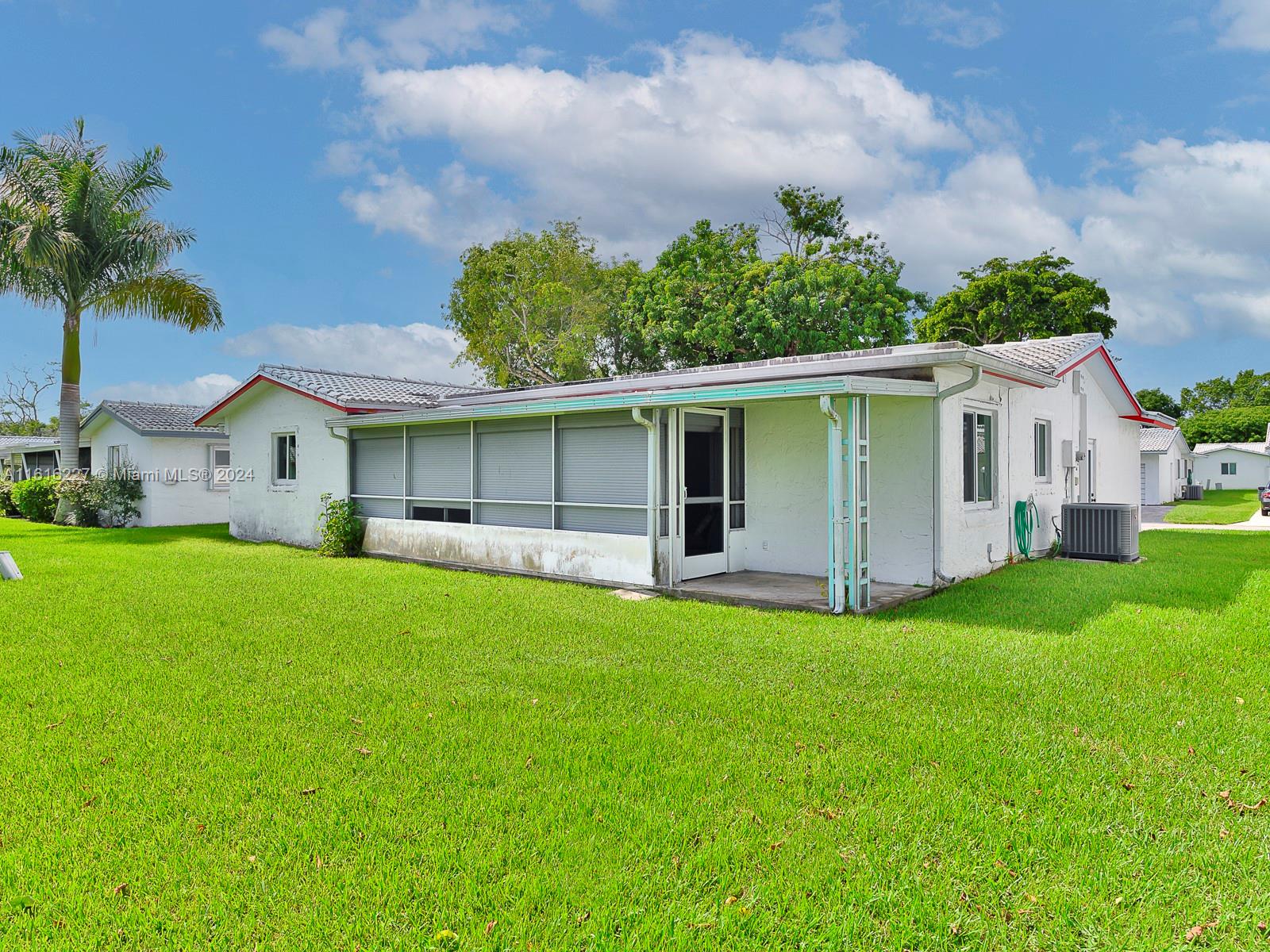 Lowest priced home in the complex and in move in condition! Discover tranquility in this meticulously maintained 2-bed, 2-bath home nestled within a serene 55+ community. A standout feature is its all-inclusive maintenance package covering roof, exterior painting, lawn care, internet, and cable—ensuring a hassle-free lifestyle. Recently updated in 2017 with impact resistant doors & windows, a new roof, plumbing, kitchen, bathrooms, and rewired throughout, this home offers modern comfort and peace of mind. Enjoy the convenience of nearby shopping and dining, all within reach of this charming abode. Plus, residents have access to a clubhouse with a pool and various activities, enhancing the community experience.